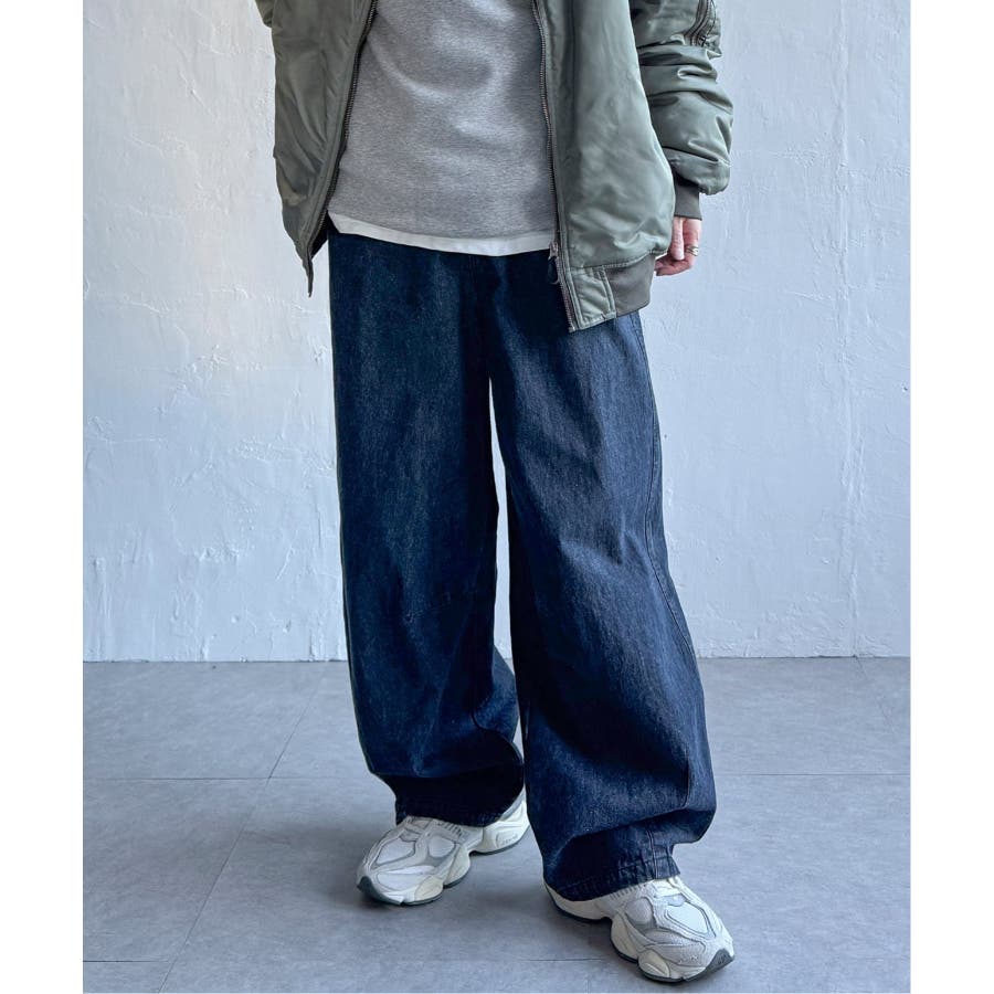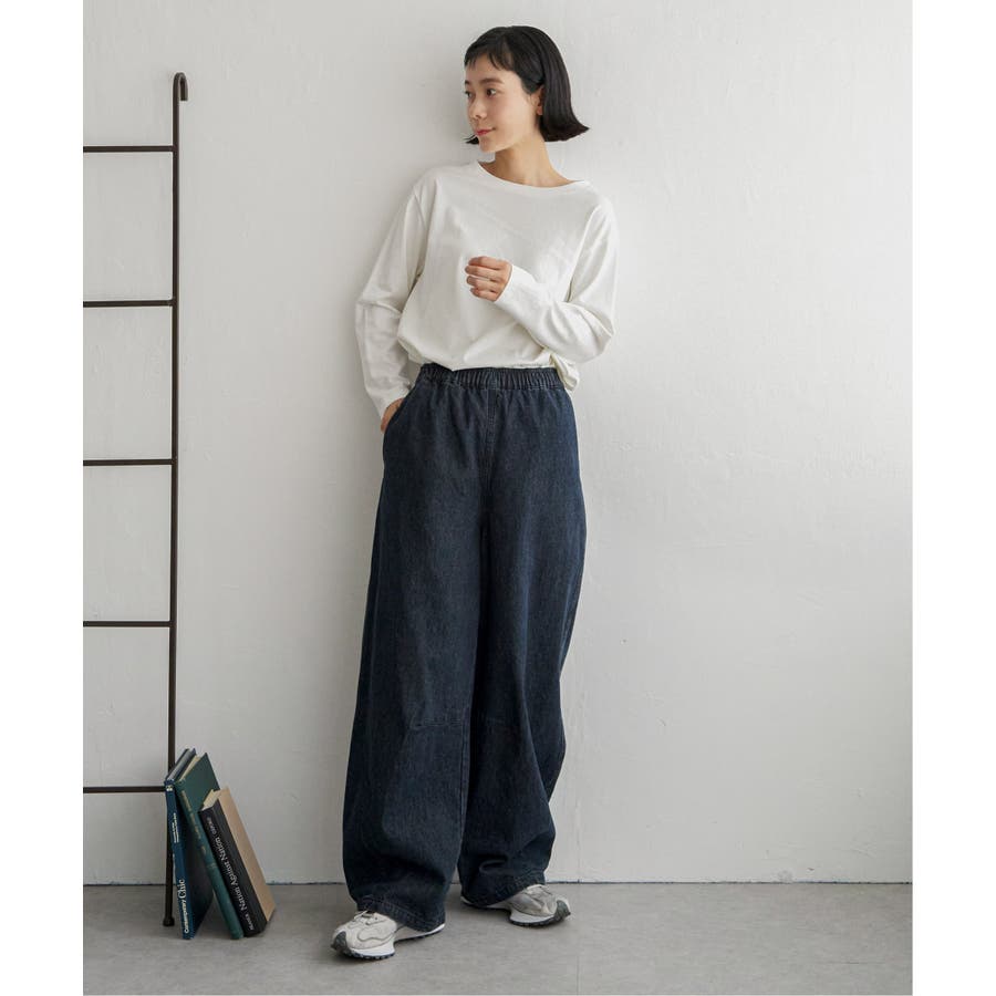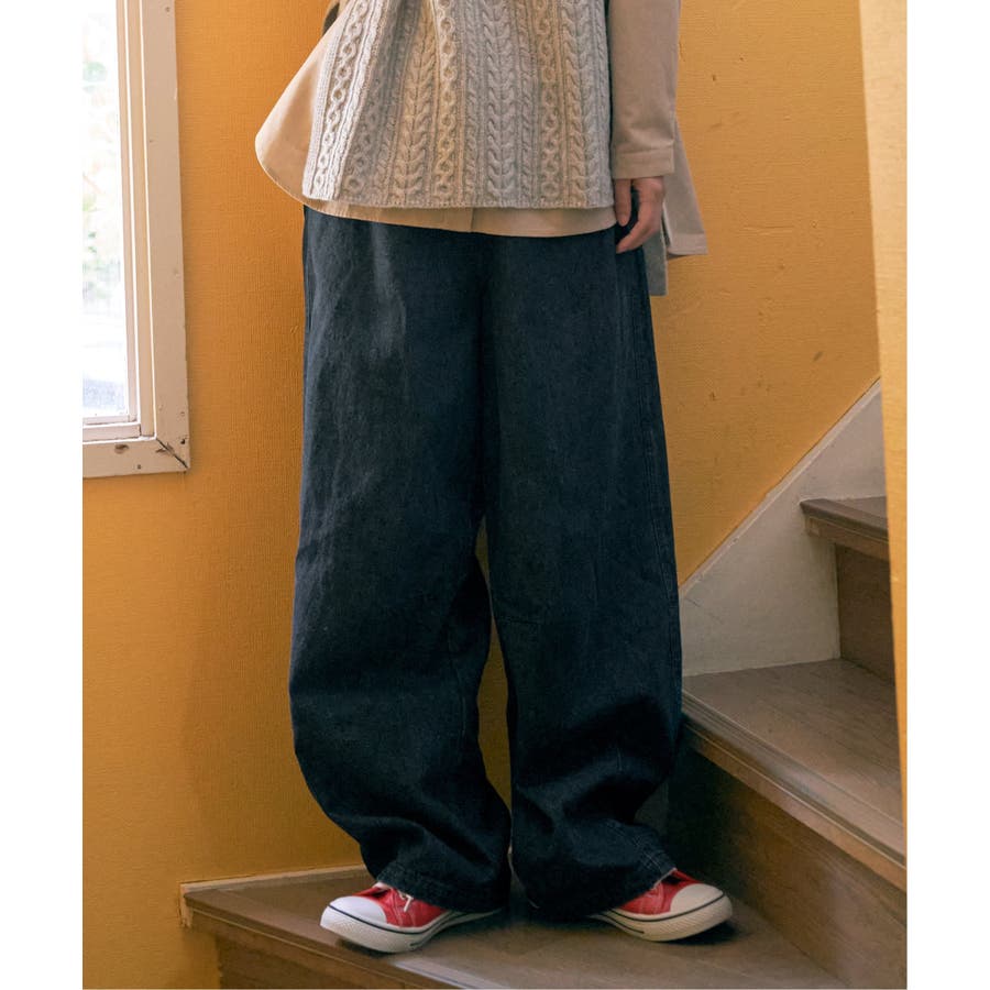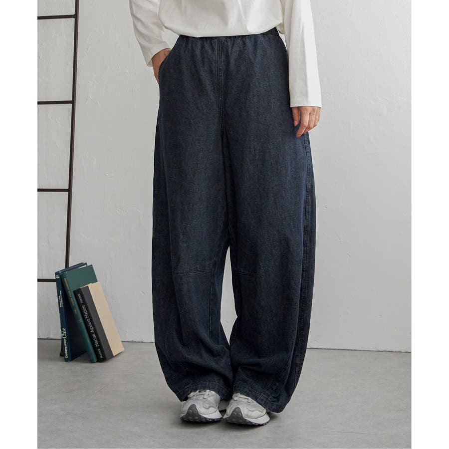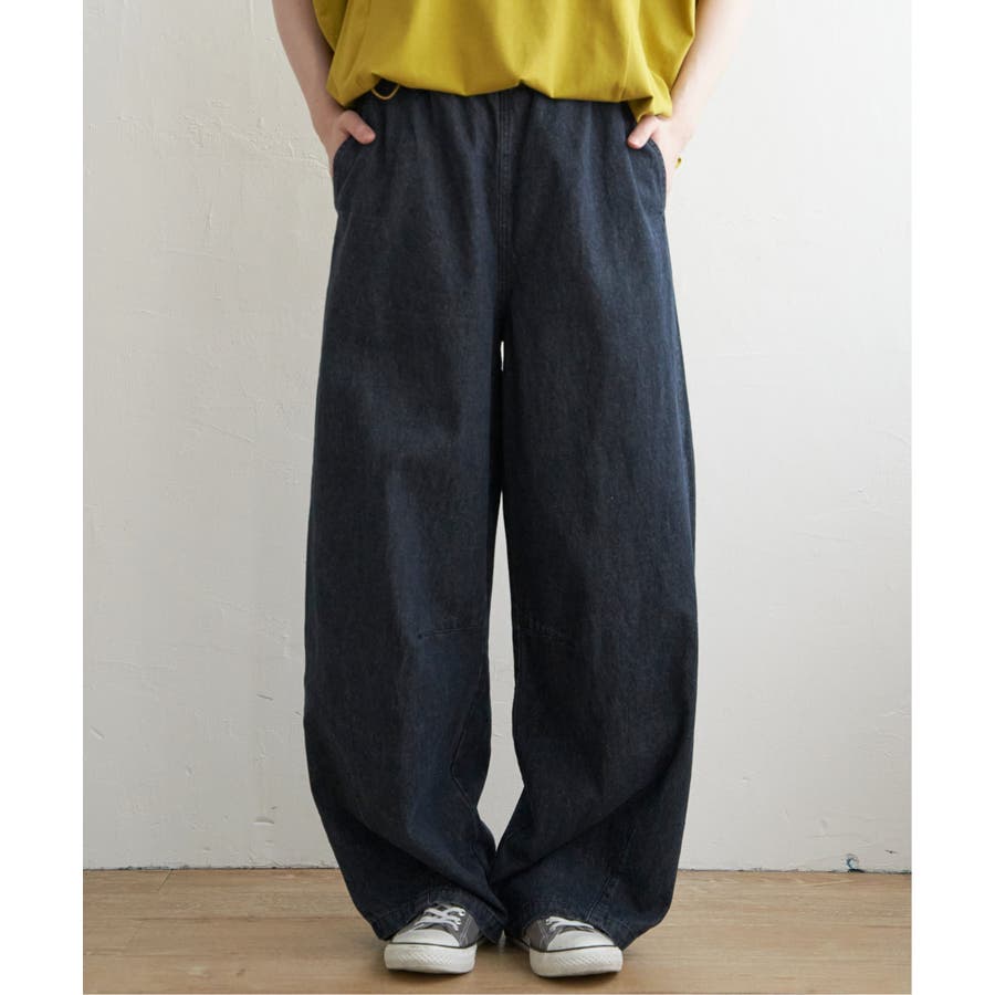 【ダークネイビー】デニムカーブパンツ
