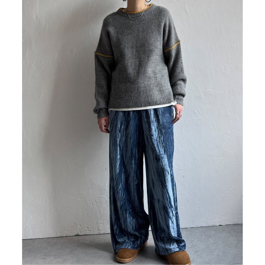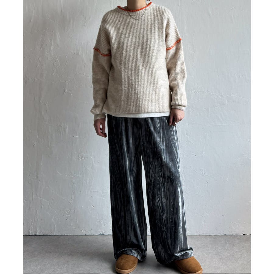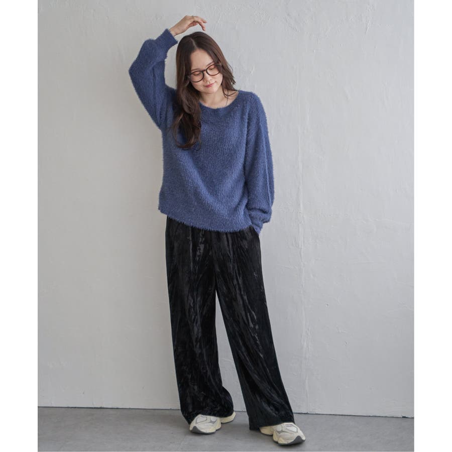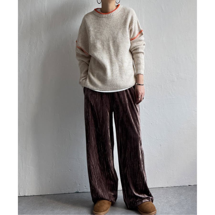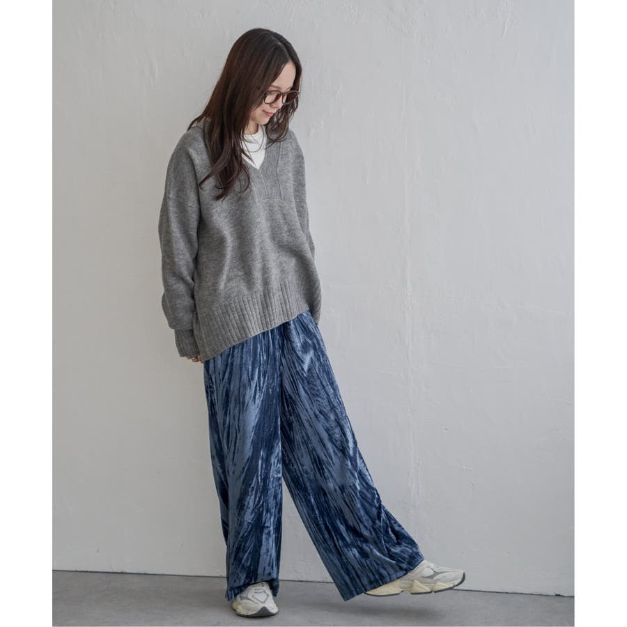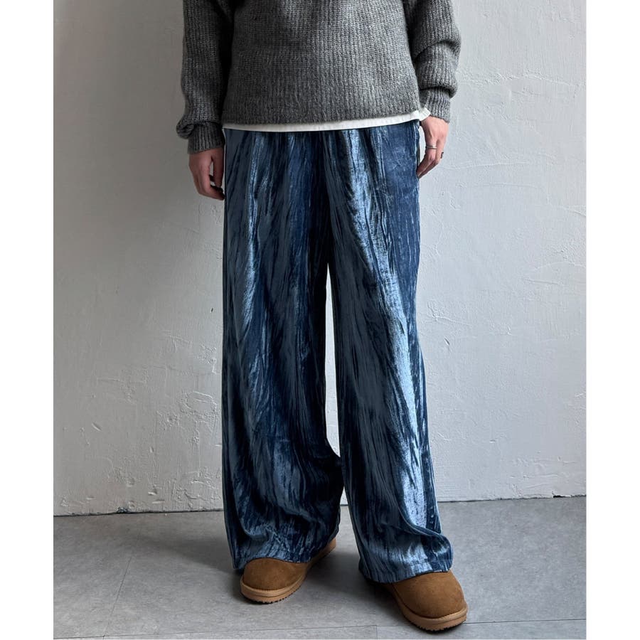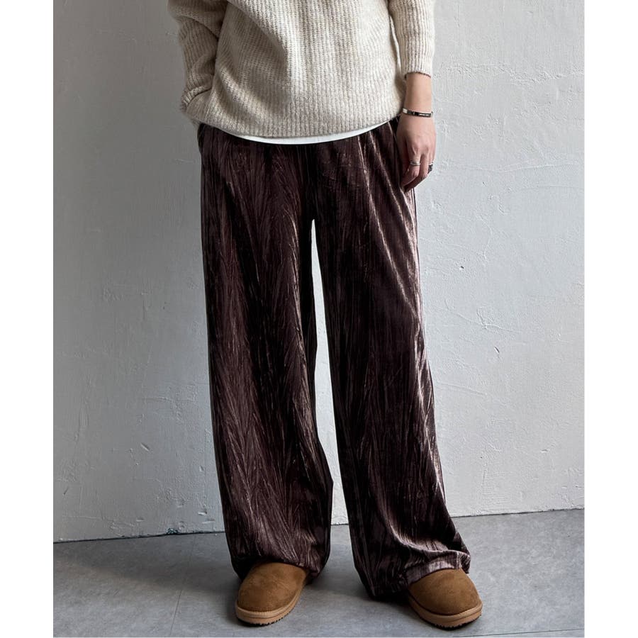 季節感とトレンド感のあるベロア素材のイージーパンツ。