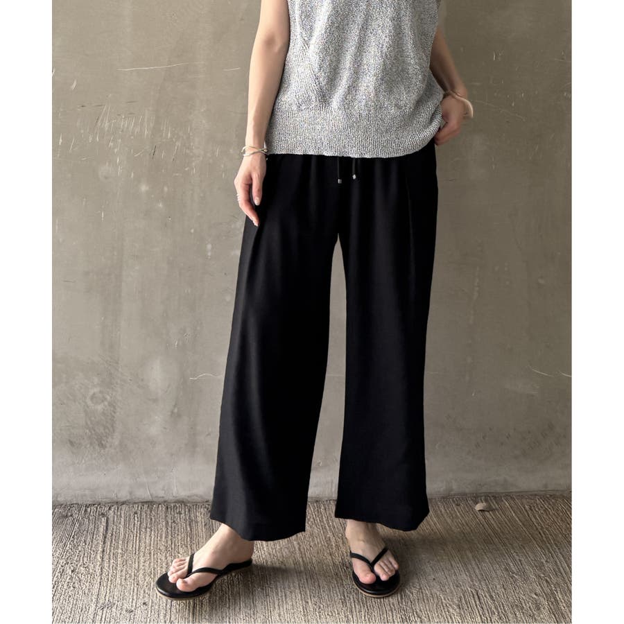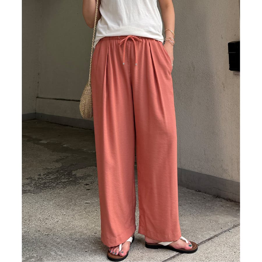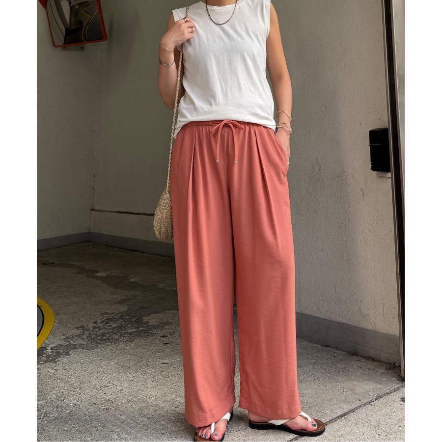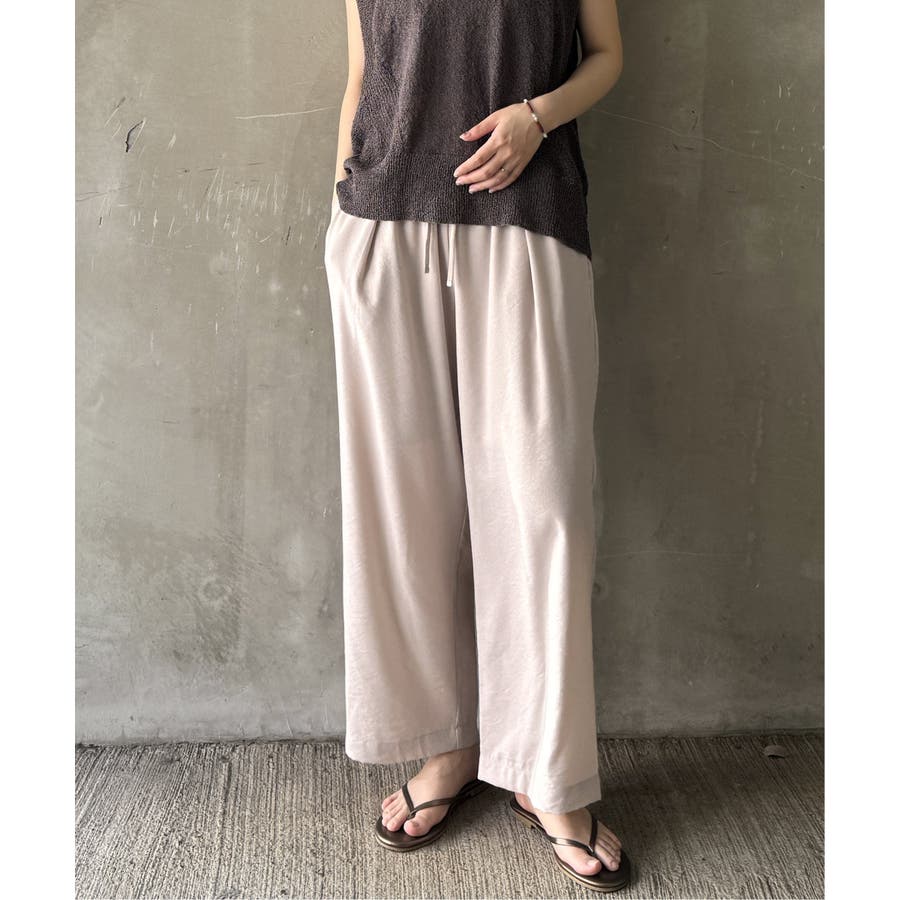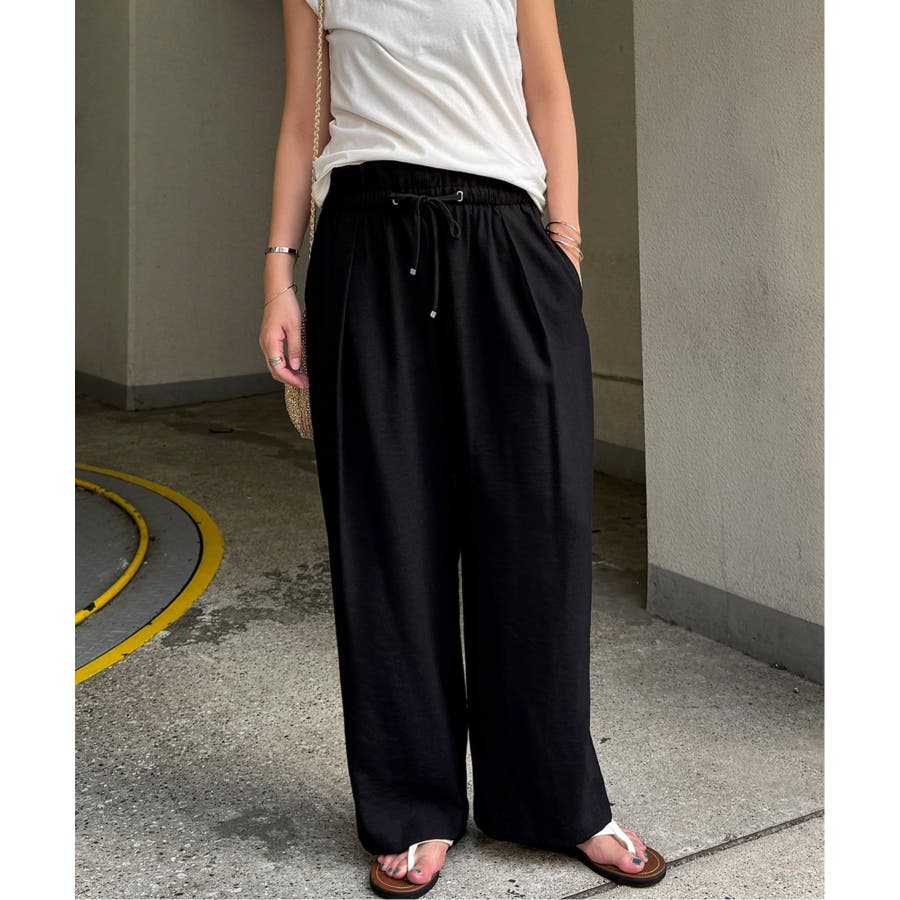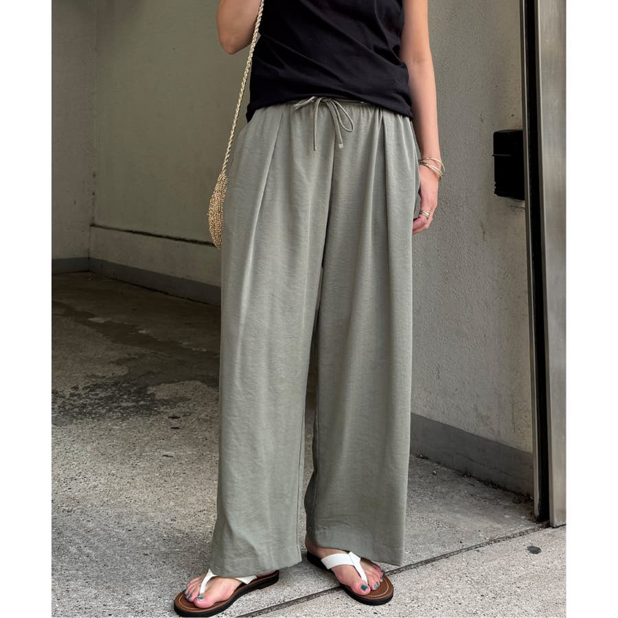 トップスインもサマになる、ウエストシャーリングデザインのワイドパンツ。