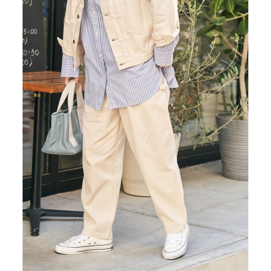 ウエストはぐるりとゴム仕様で、デイリーに気負わず履けるイージーな一本です。