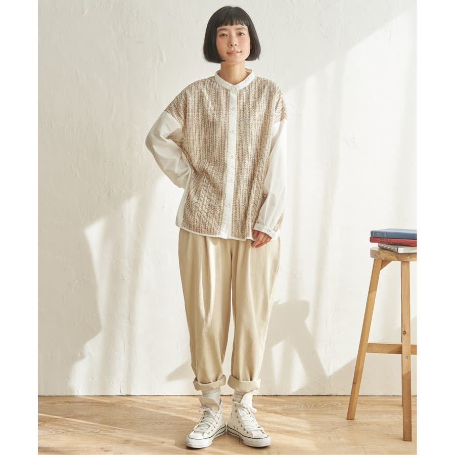 お尻まわりはゆったりで裾に向かってゆるやかに窄まる、LBC の“ゆる”テーパードシリーズの春素材。