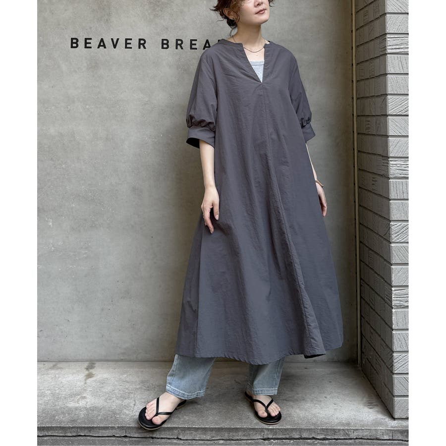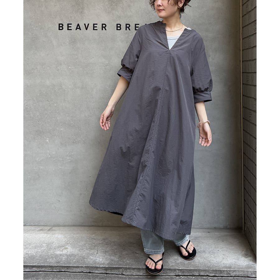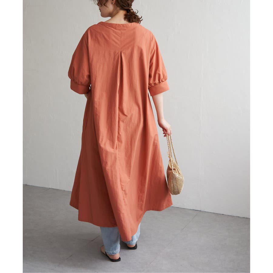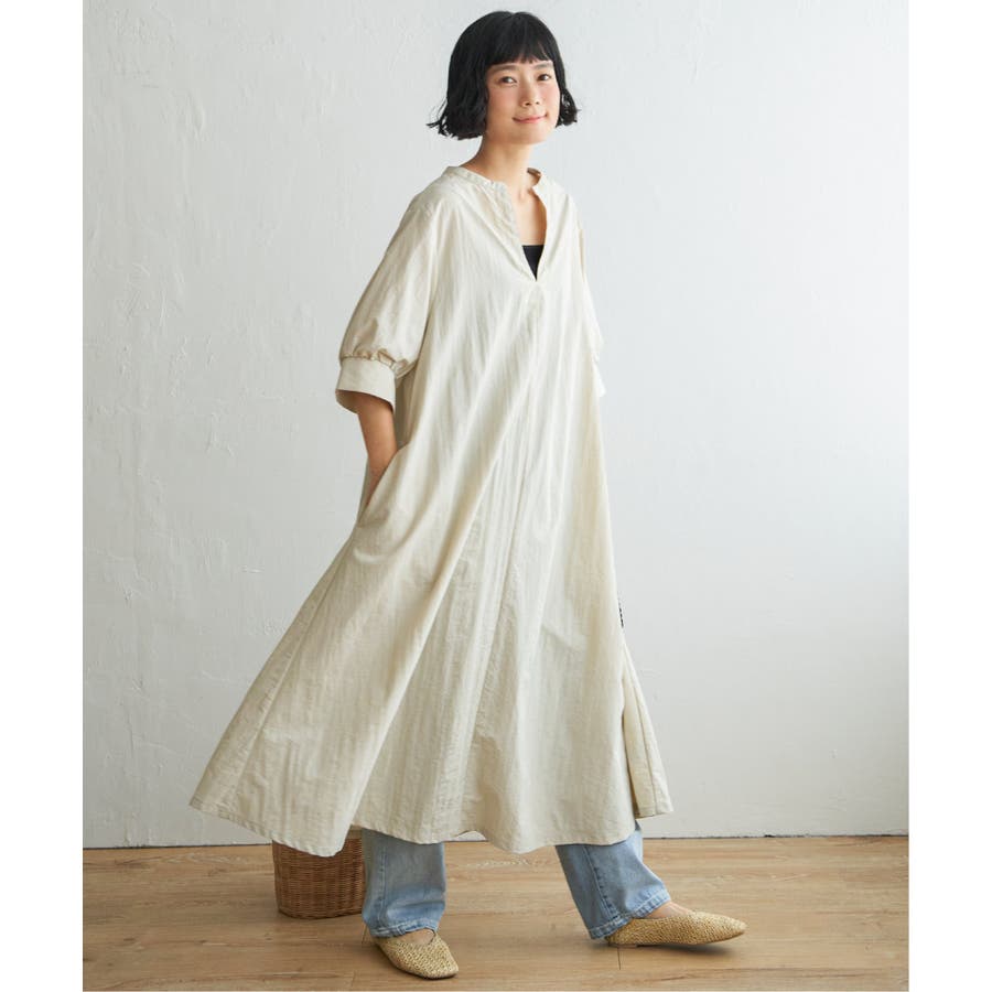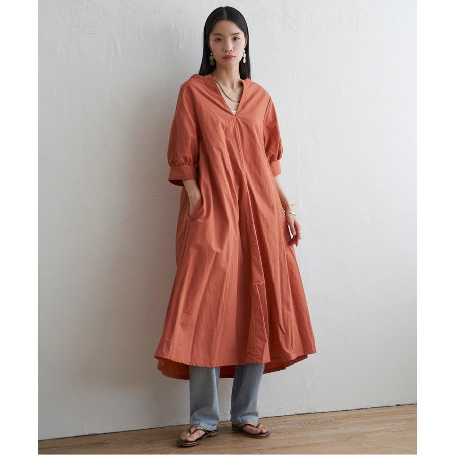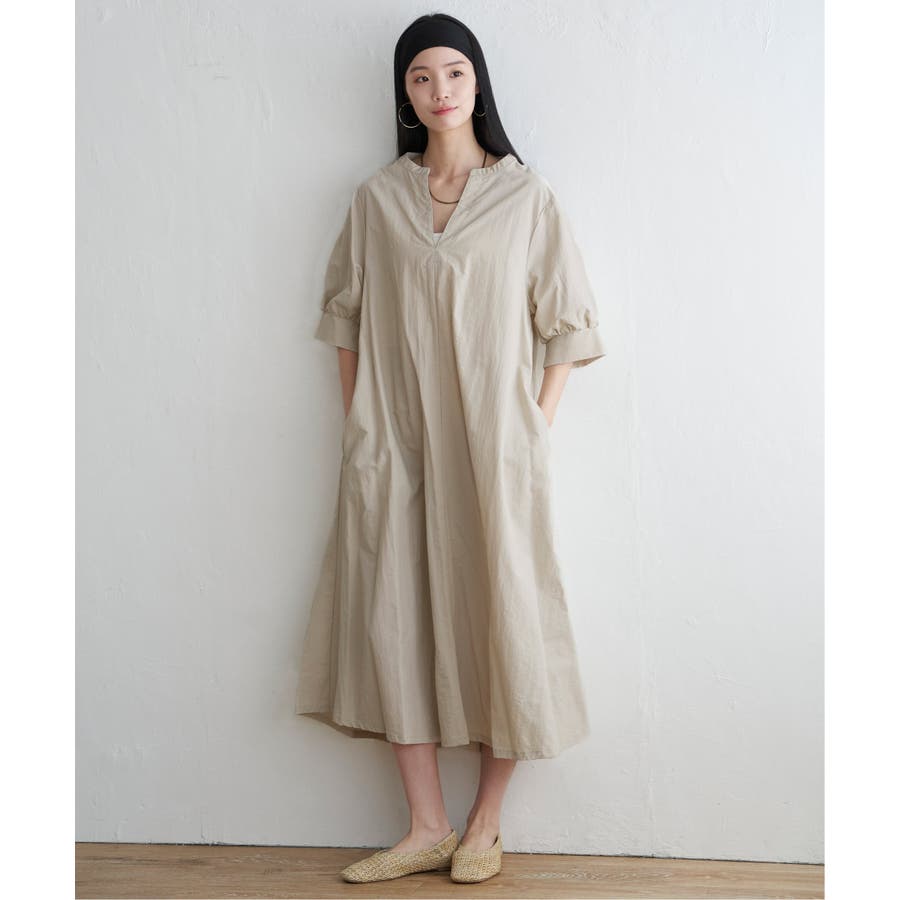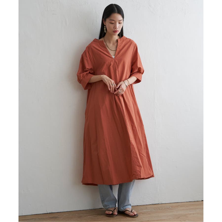 軽やかなナイロン素材が魅力のスキッパーロングワンピース。