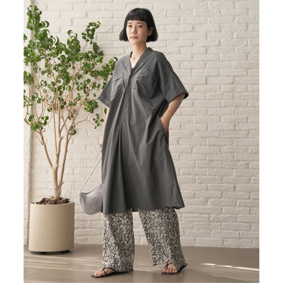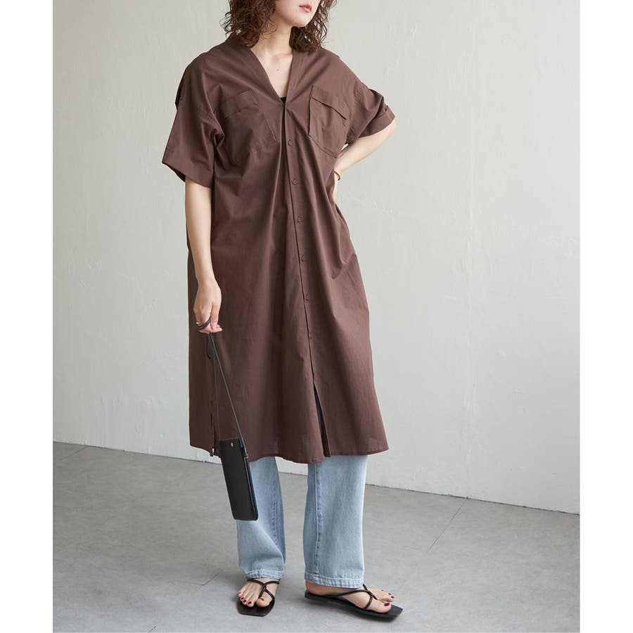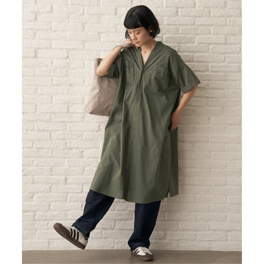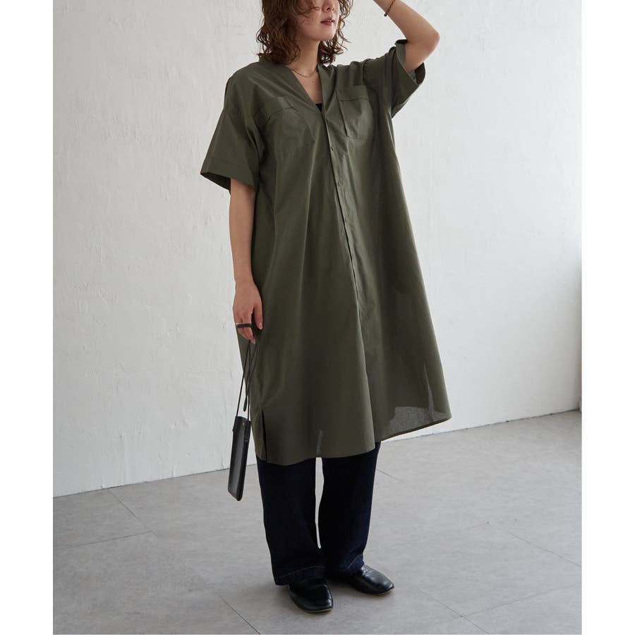 ワークシャツのエッセンスを取り入れたVネックシャツワンピース。