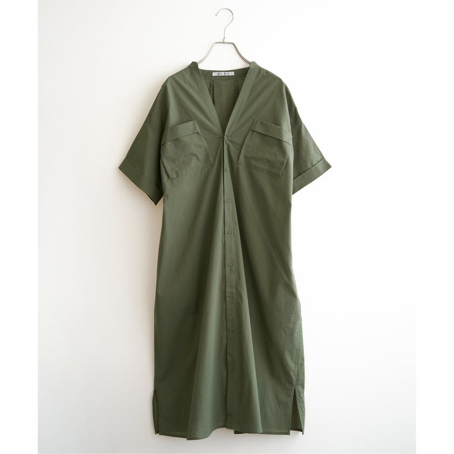 ダブルポケットVネックシャツワンピース