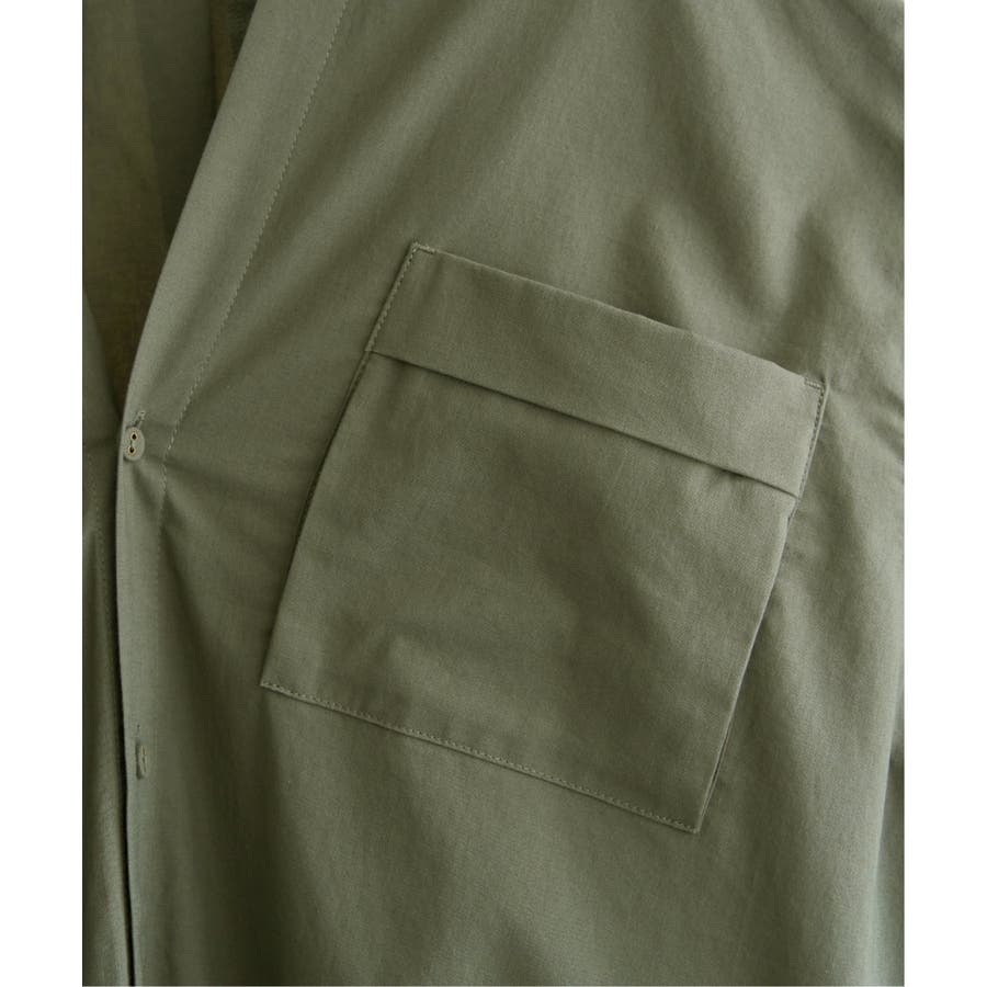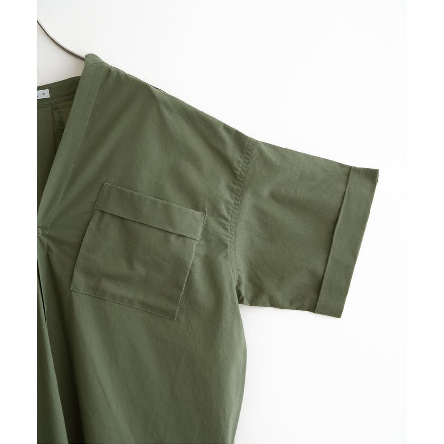 羽織りにも使えるワンピで、胸元のワークダブルポケットがポイント。