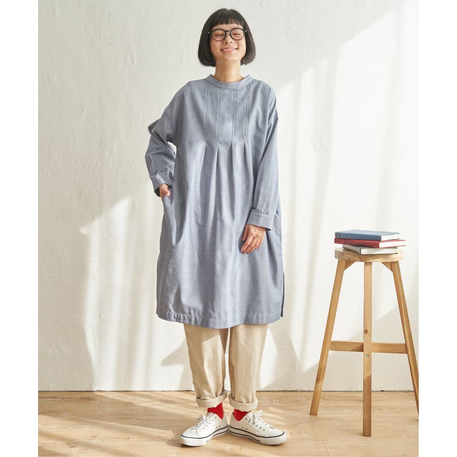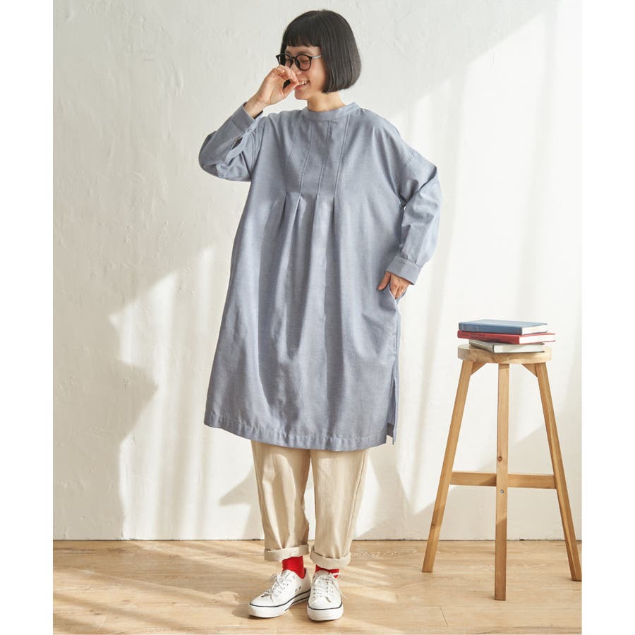 通年で着回せる綿混素材が魅力の3WAYタックワンピース。