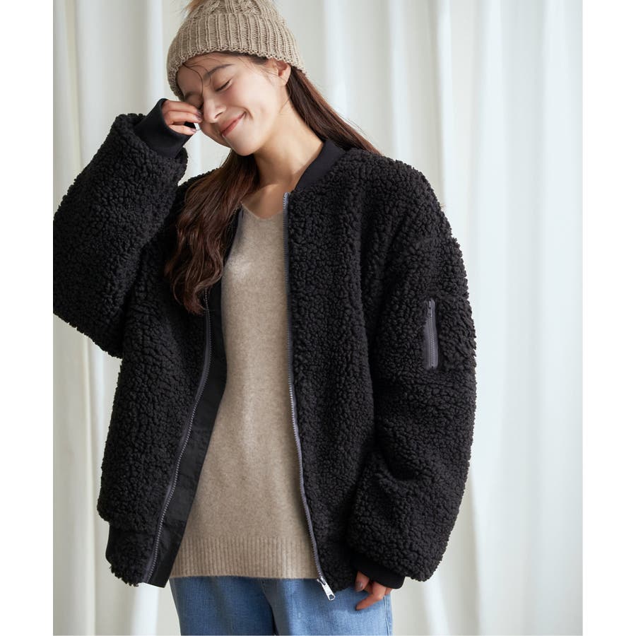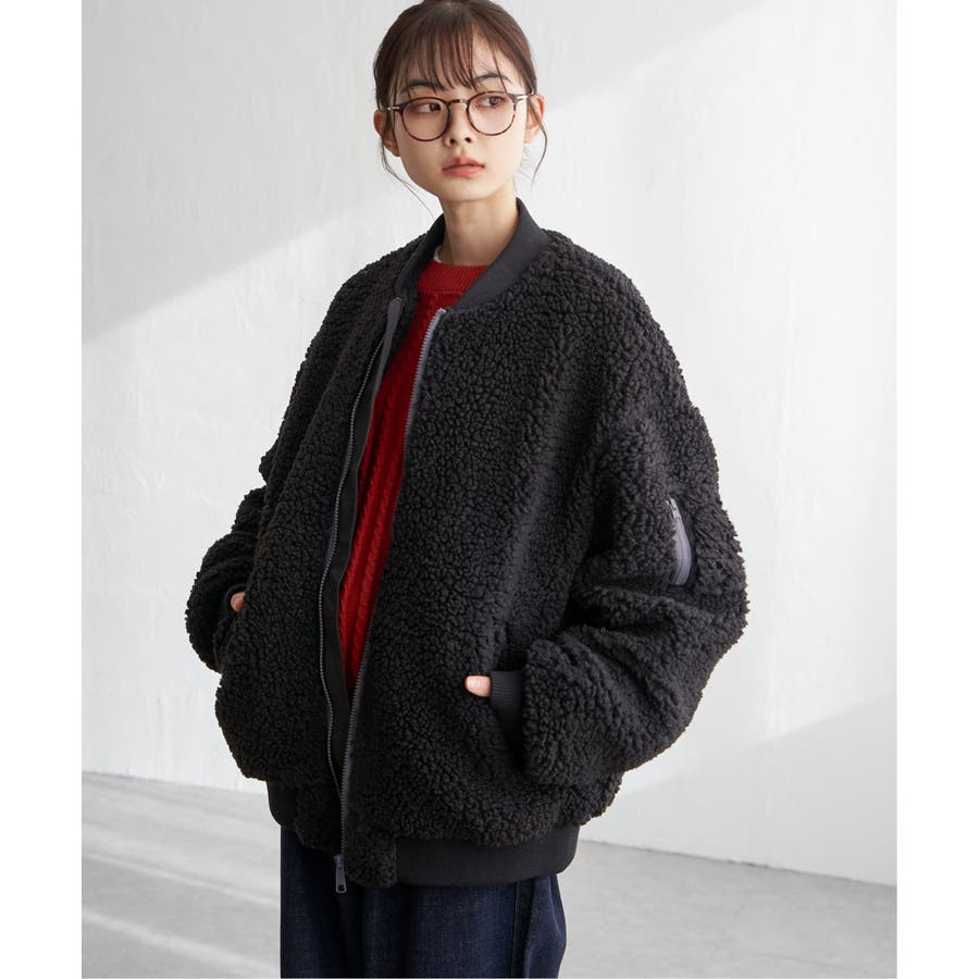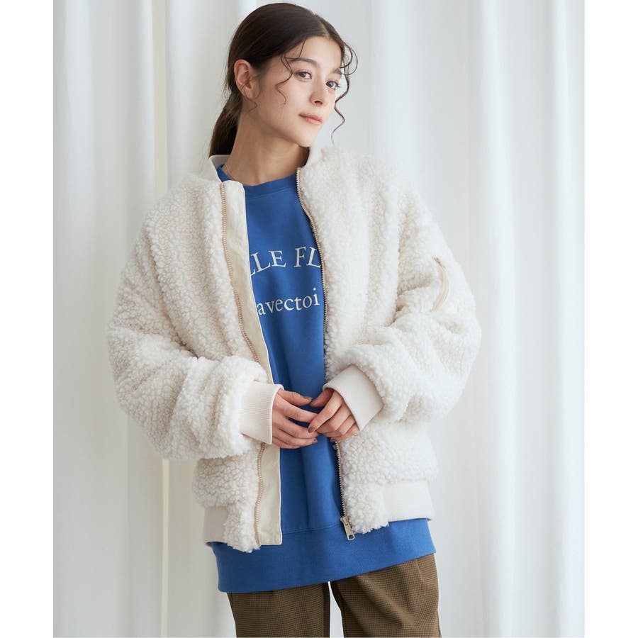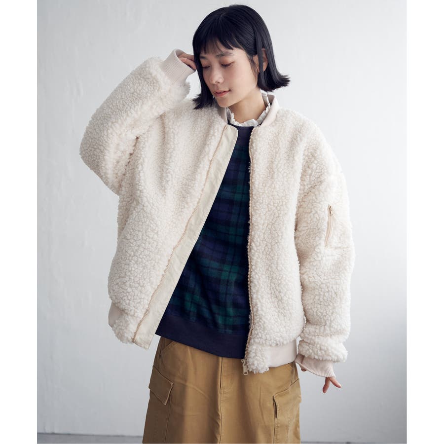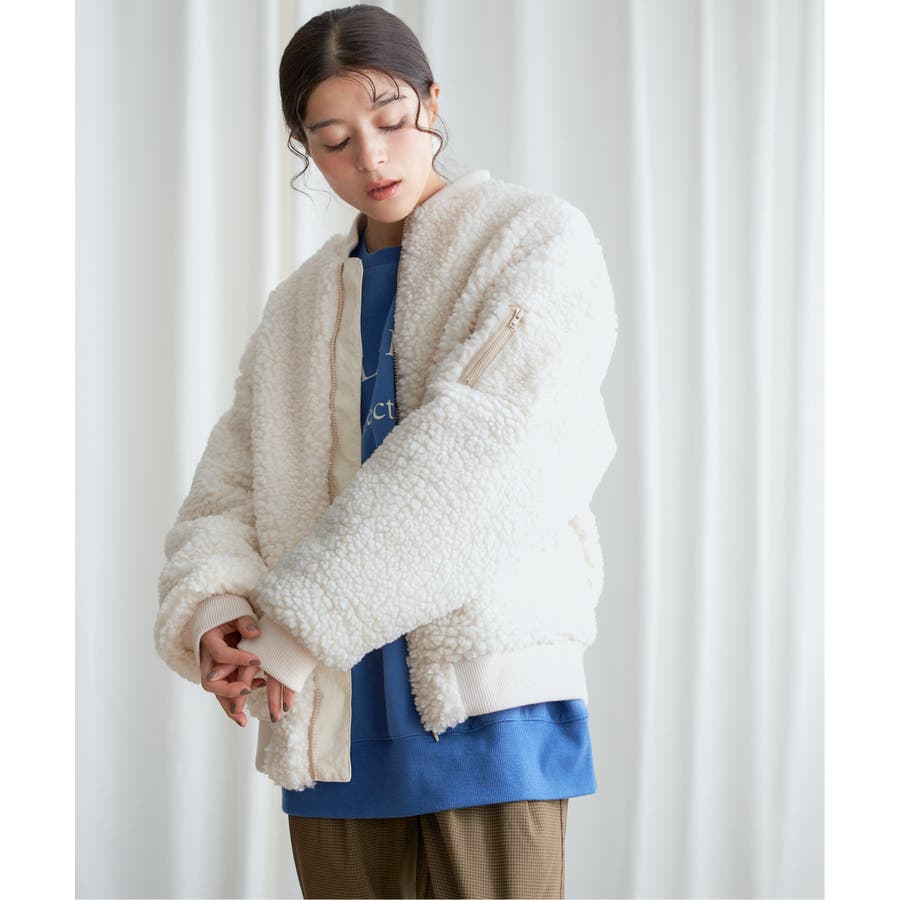 MA-1デザインに落とし込んだボアアウターは、ぬいぐるみのような可愛い素材ながら、付属がアクセントになった甘すぎず大人も着やすいアイテムです。