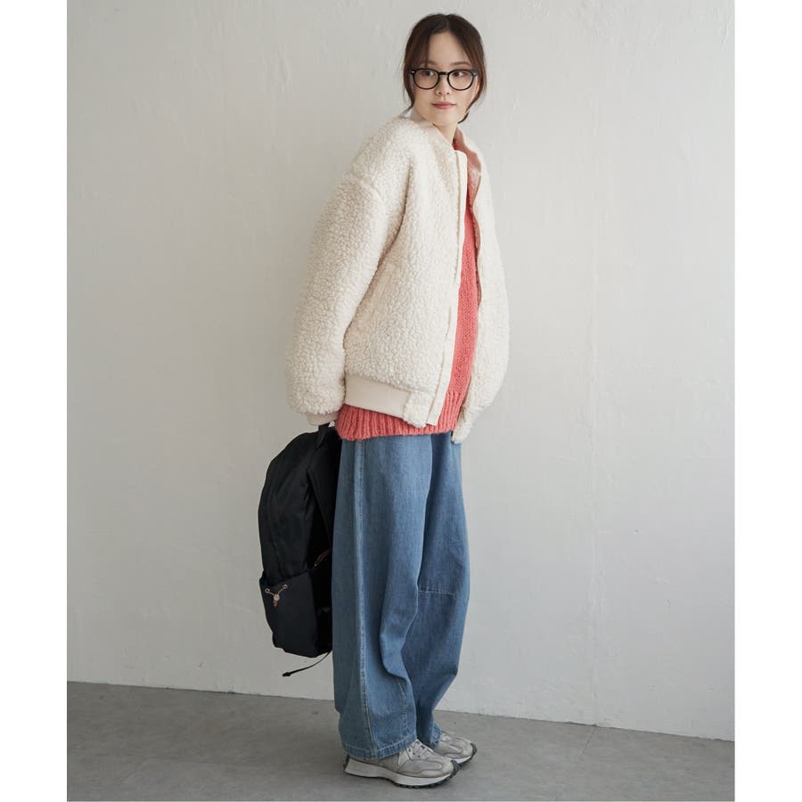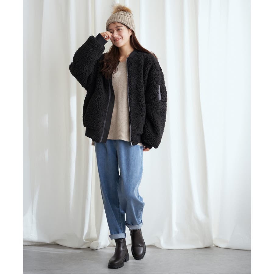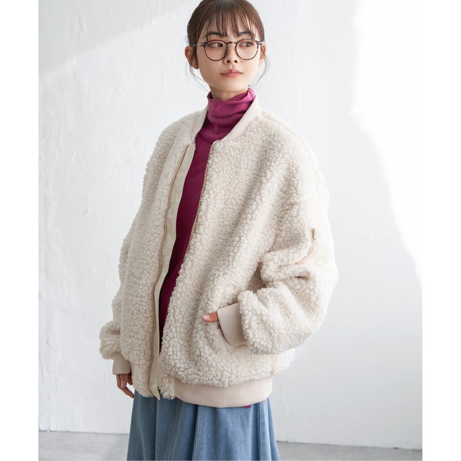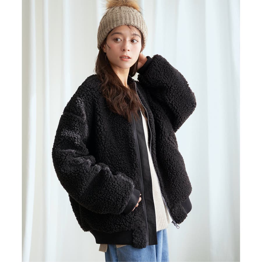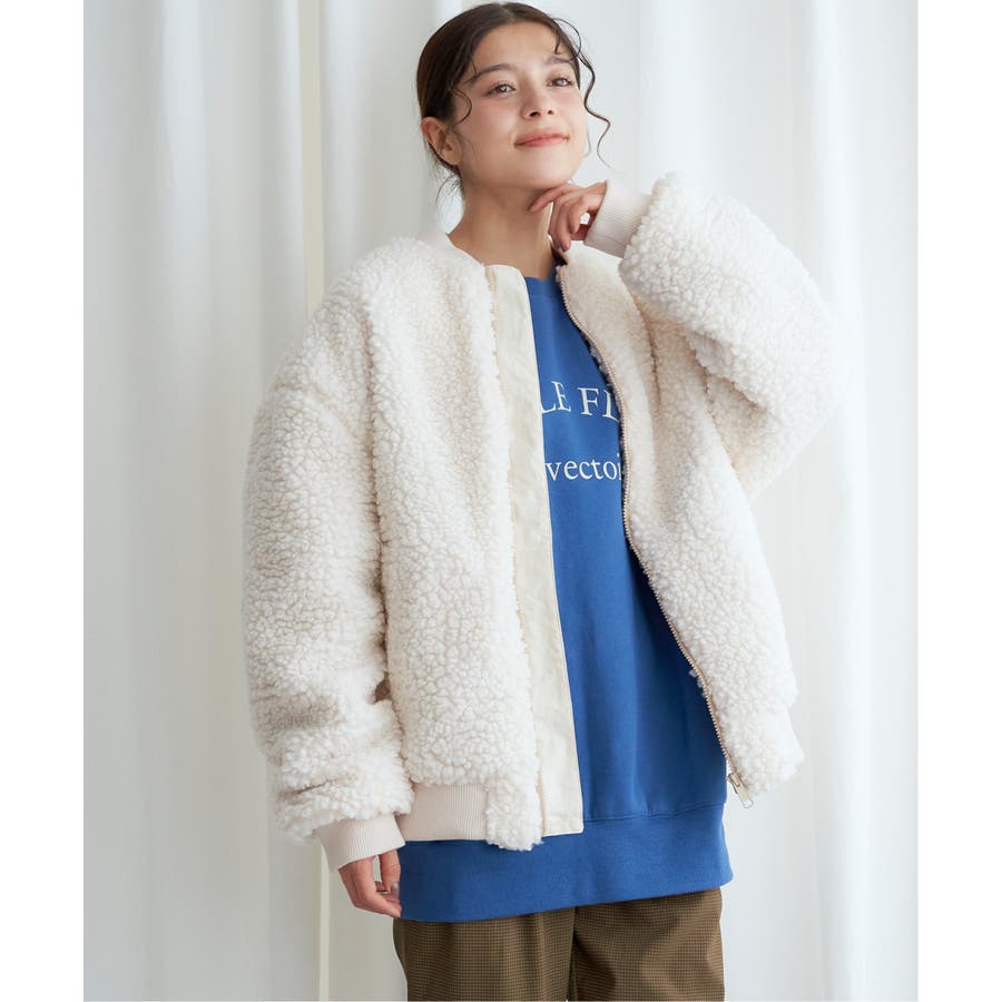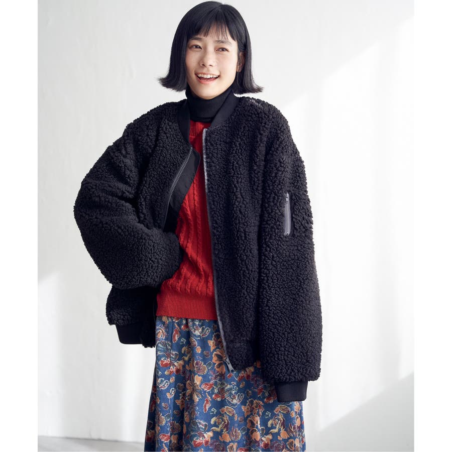 MA-1デザインに落とし込んだボアアウターは、ぬいぐるみのような可愛い素材ながら、付属がアクセントになった甘すぎず大人も着やすいアイテムです。