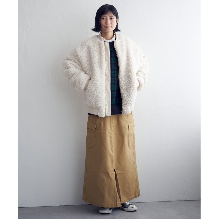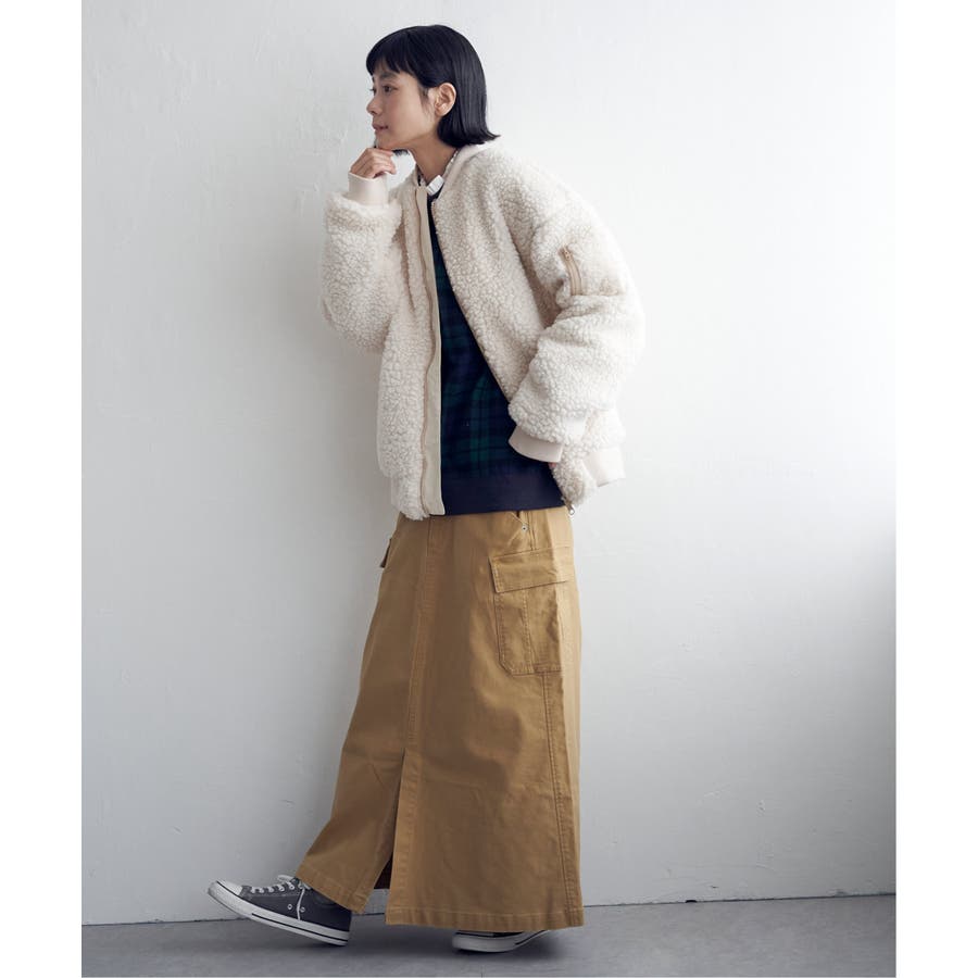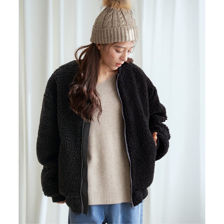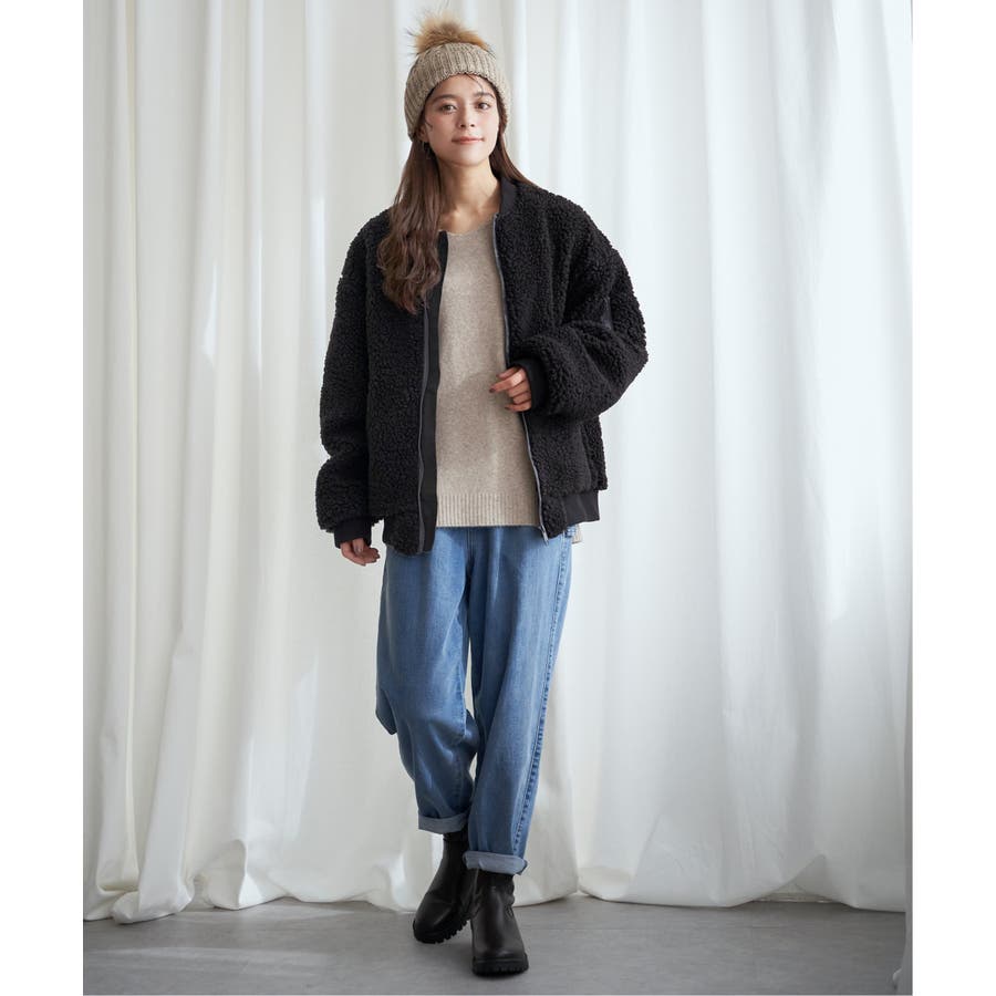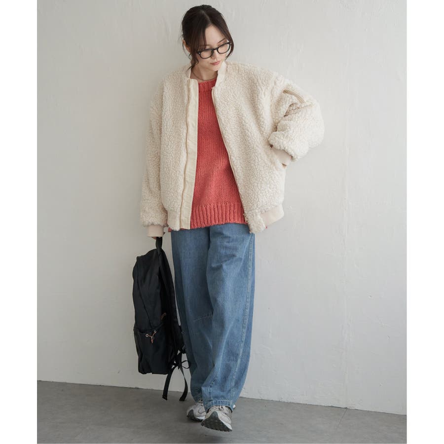 MA-1デザインに落とし込んだボアアウターは、ぬいぐるみのような可愛い素材ながら、付属がアクセントになった甘すぎず大人も着やすいアイテムです。