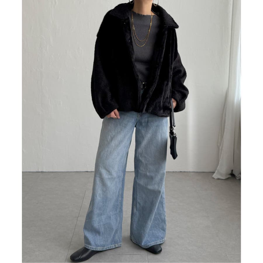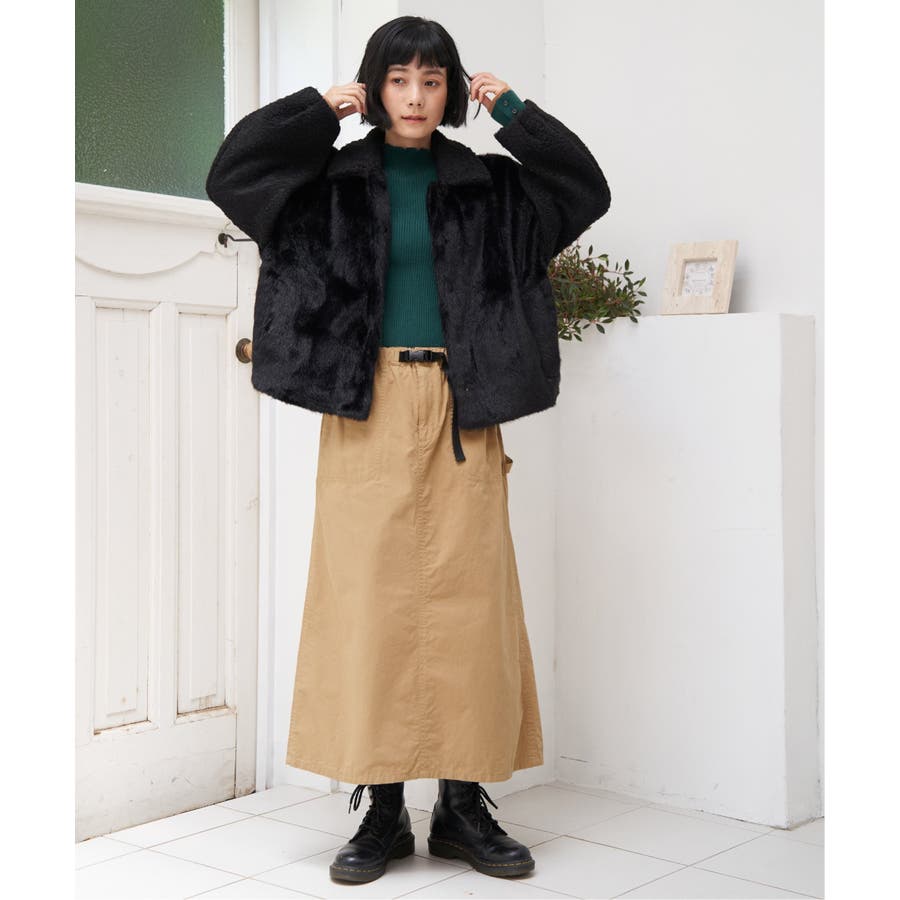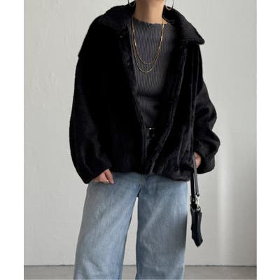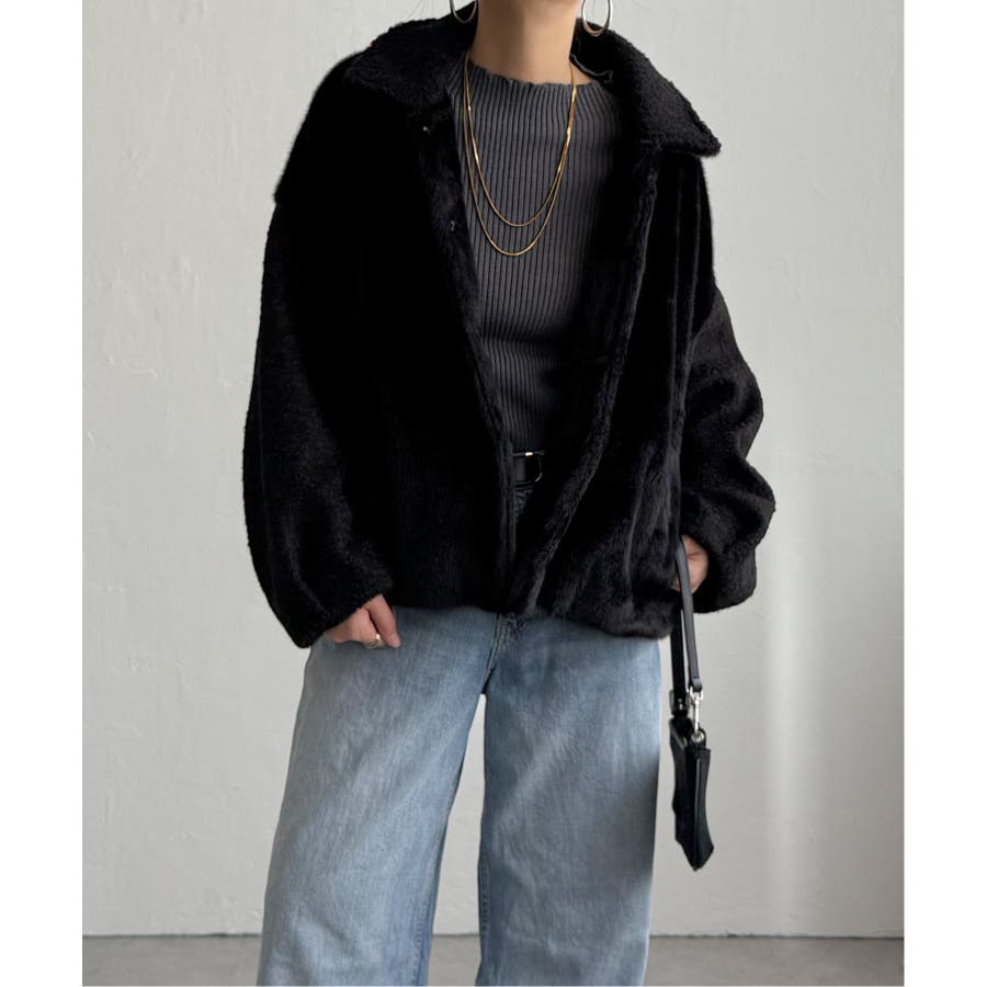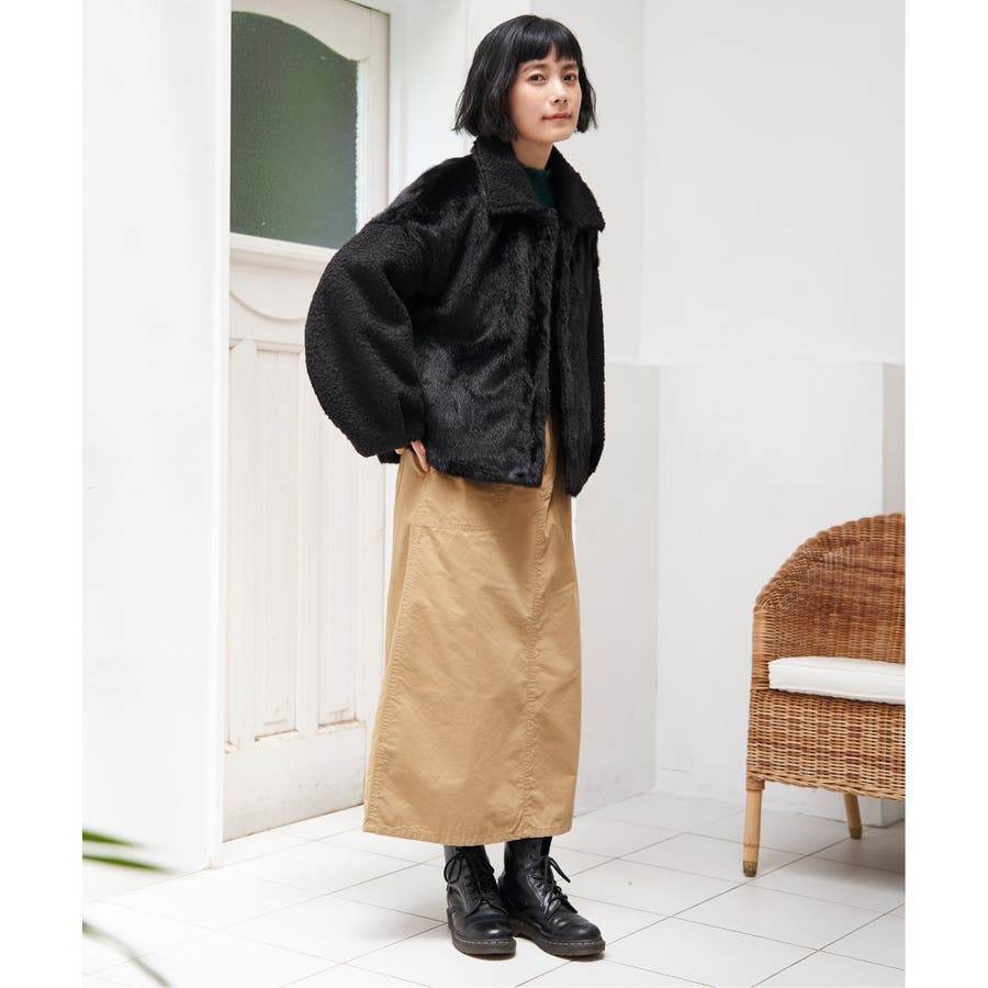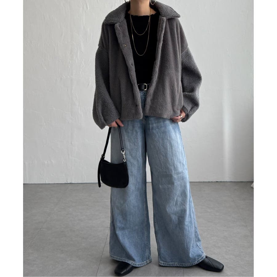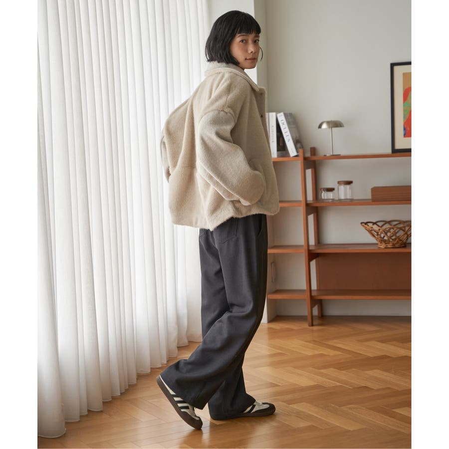 やや大きめの襟と袖で切り替えたボア使いがポイントのブルゾン。