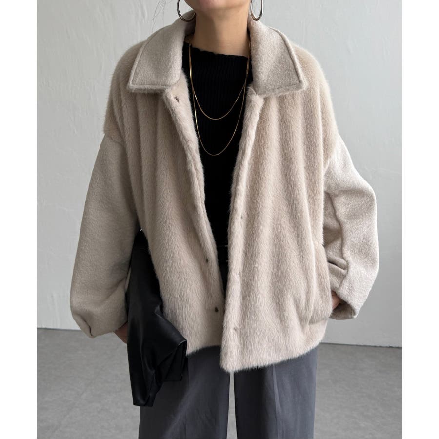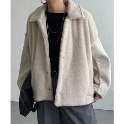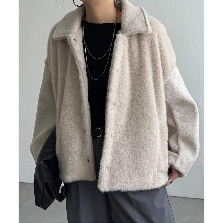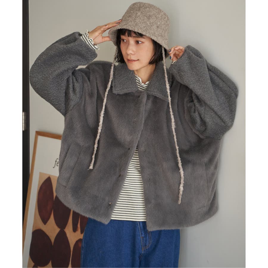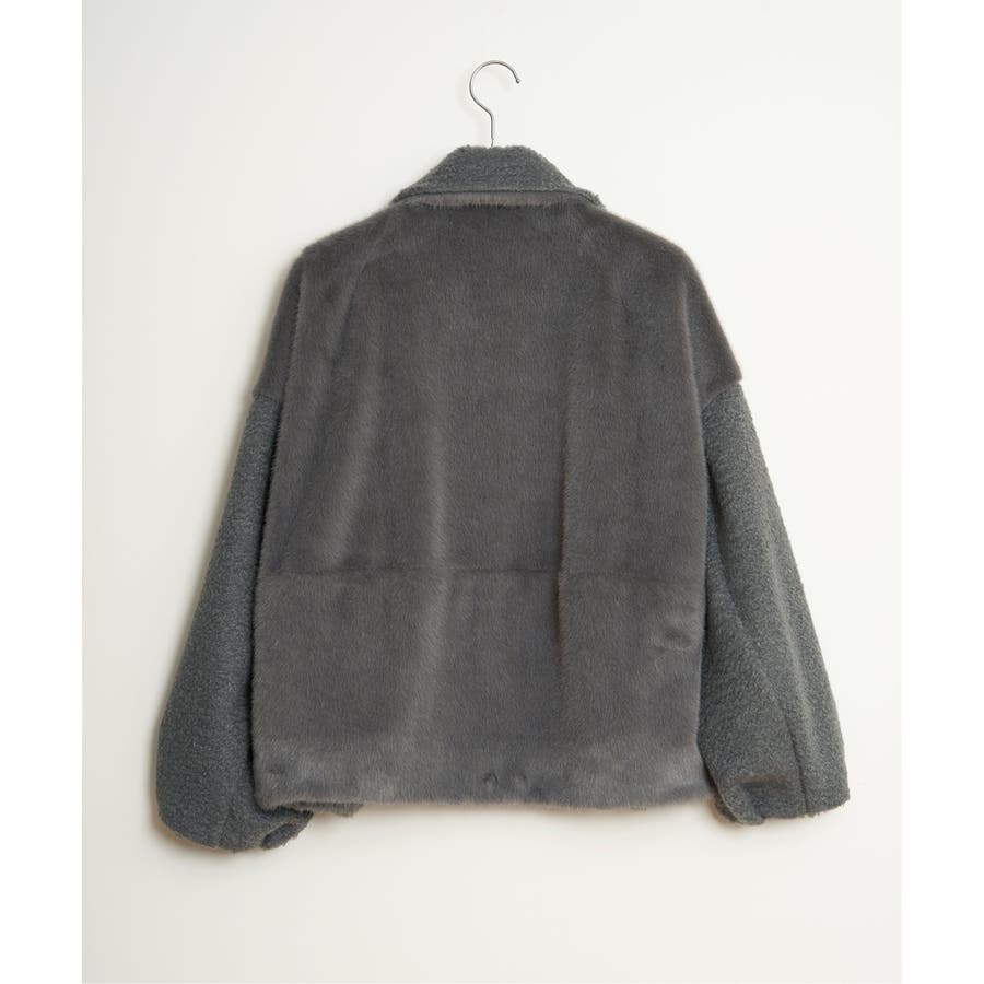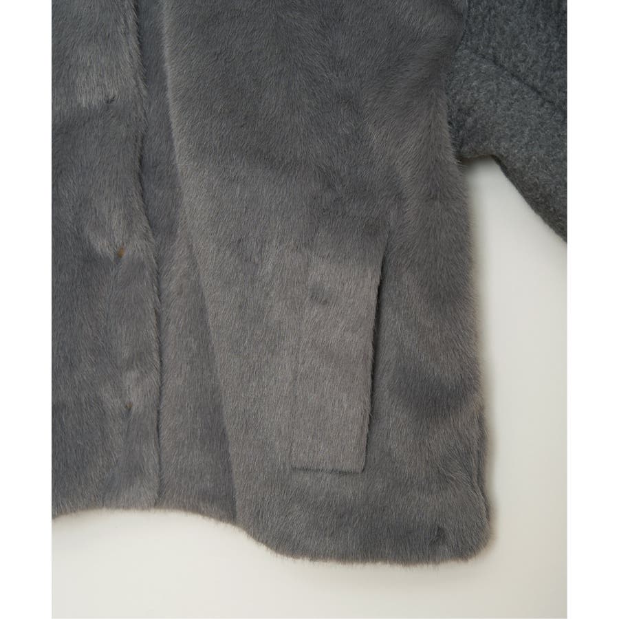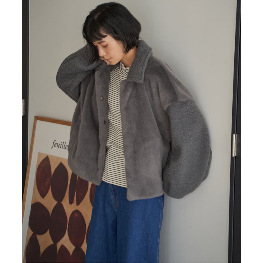 フェイクファーとボアを組み合わせた異素材ミックスのコクーンブルゾン。