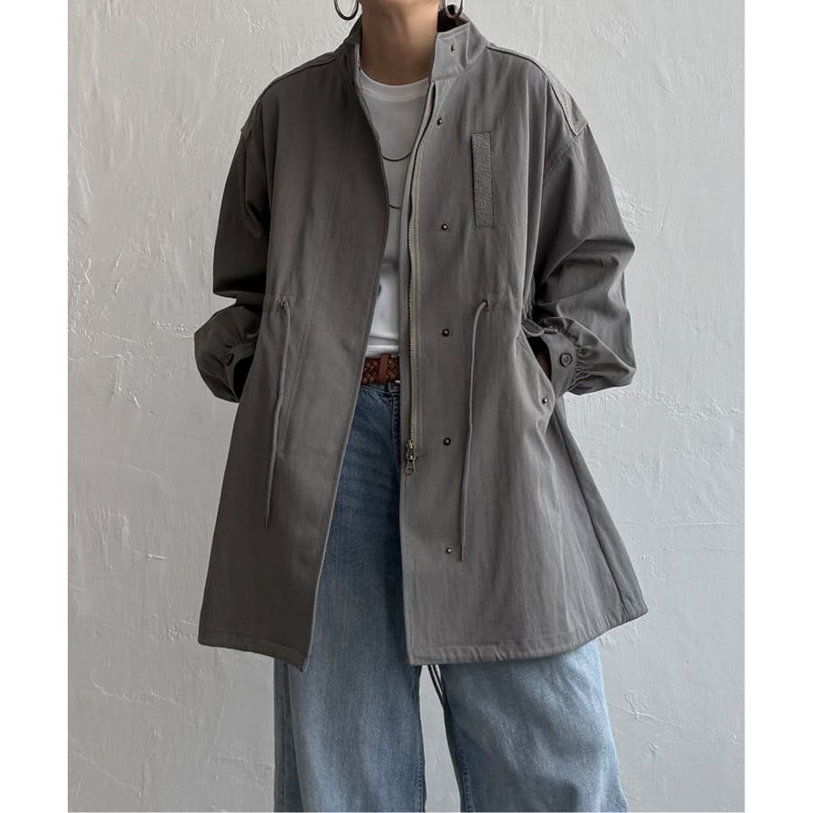 ミドル丈でゆったりシルエットのモッズコート。