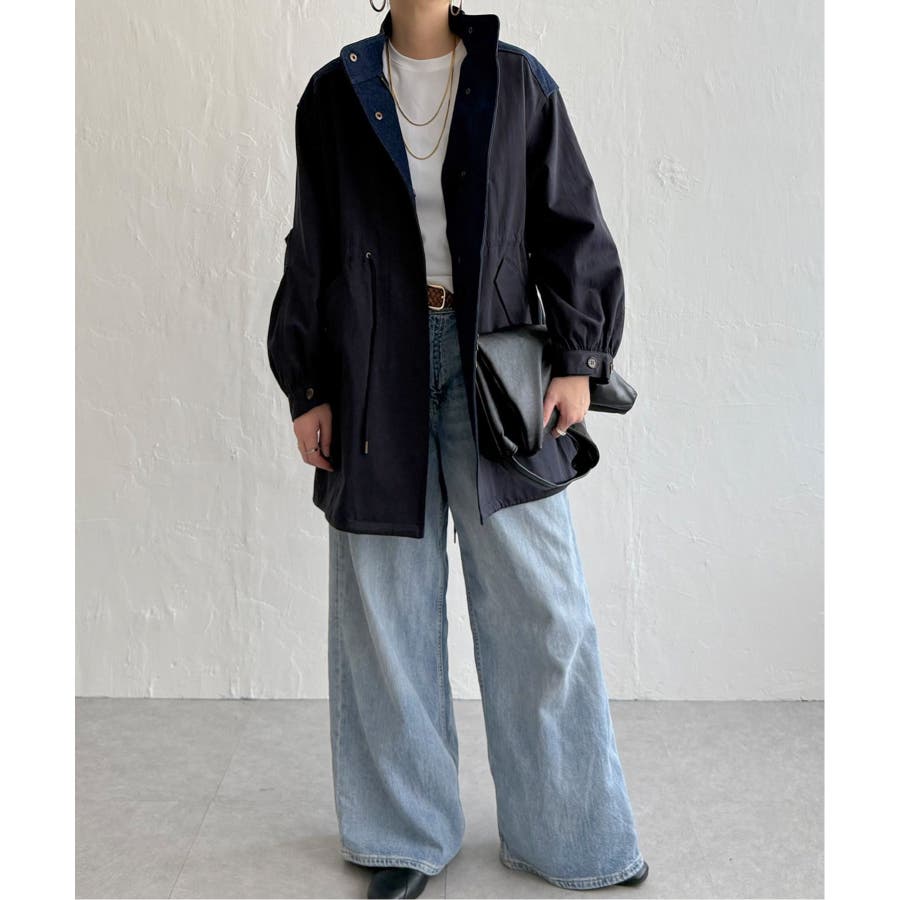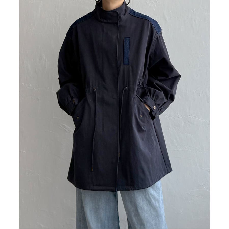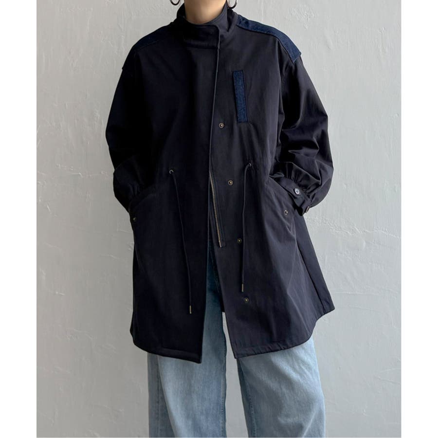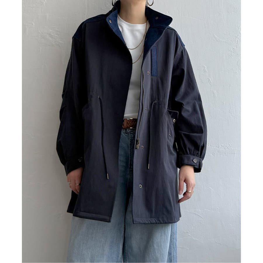 デニム切り替えモッズコート