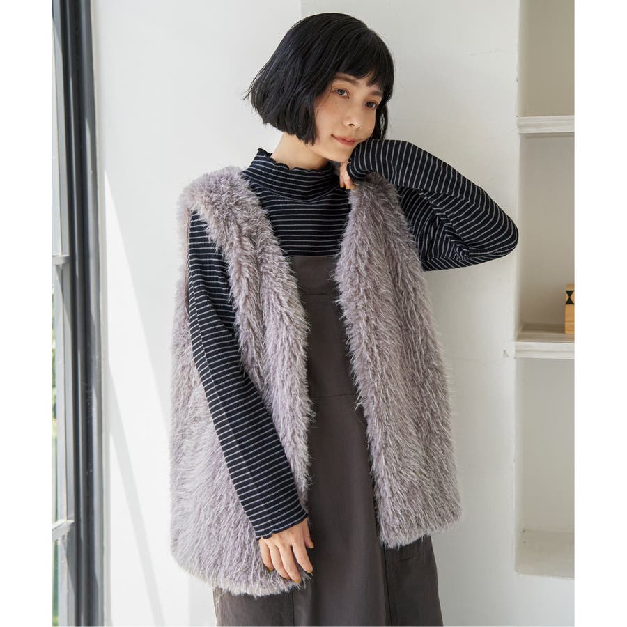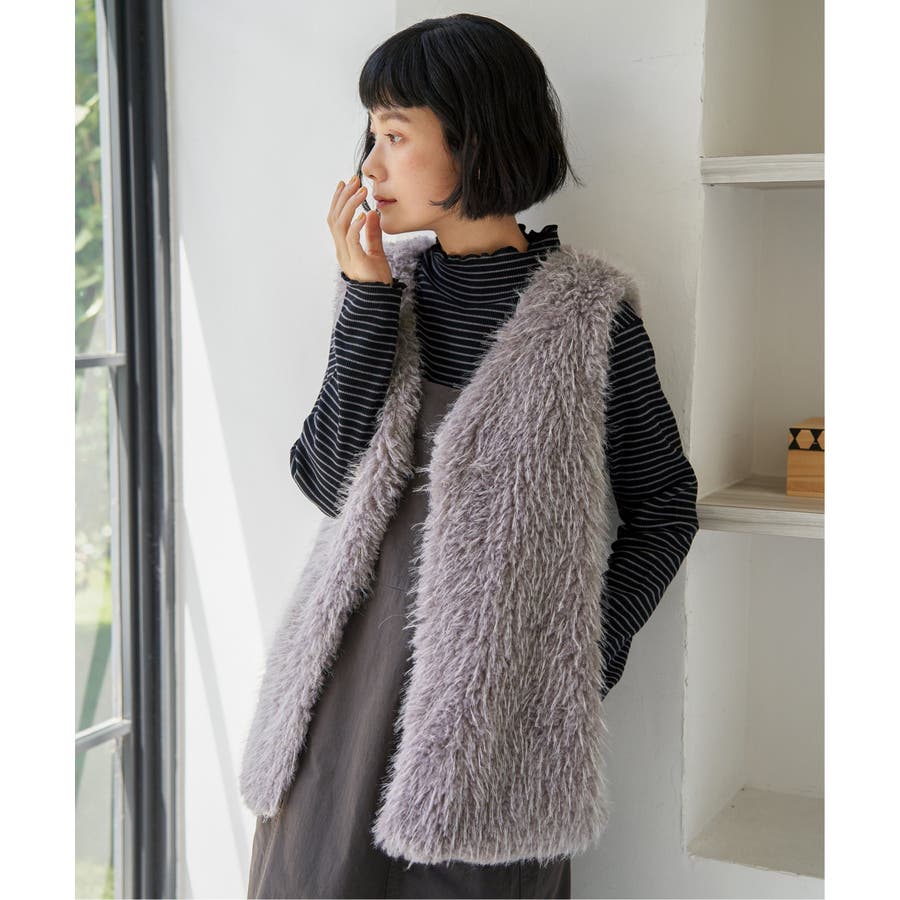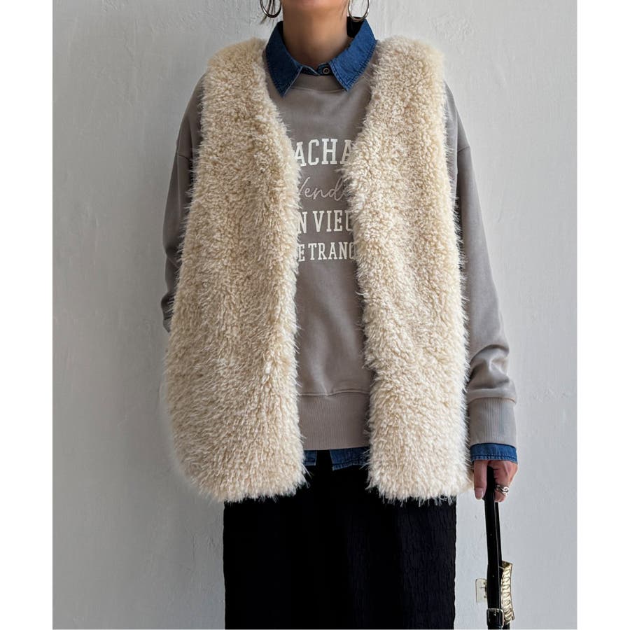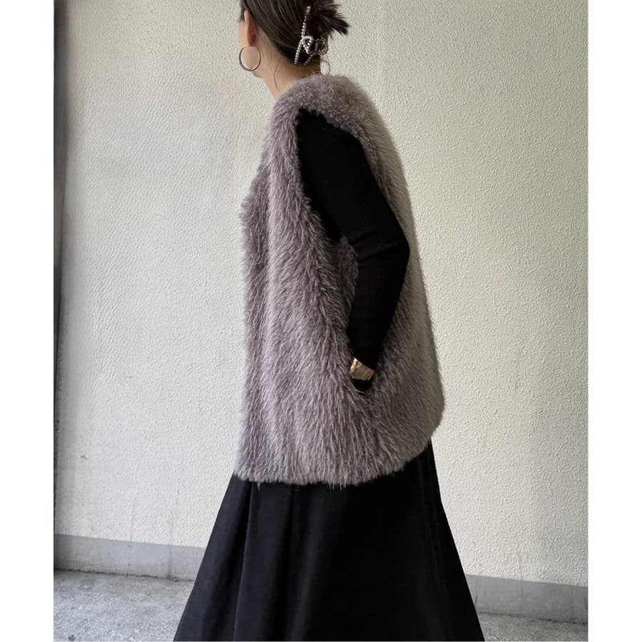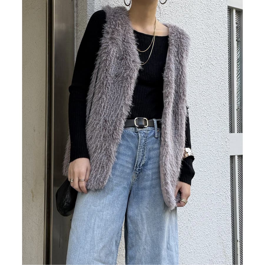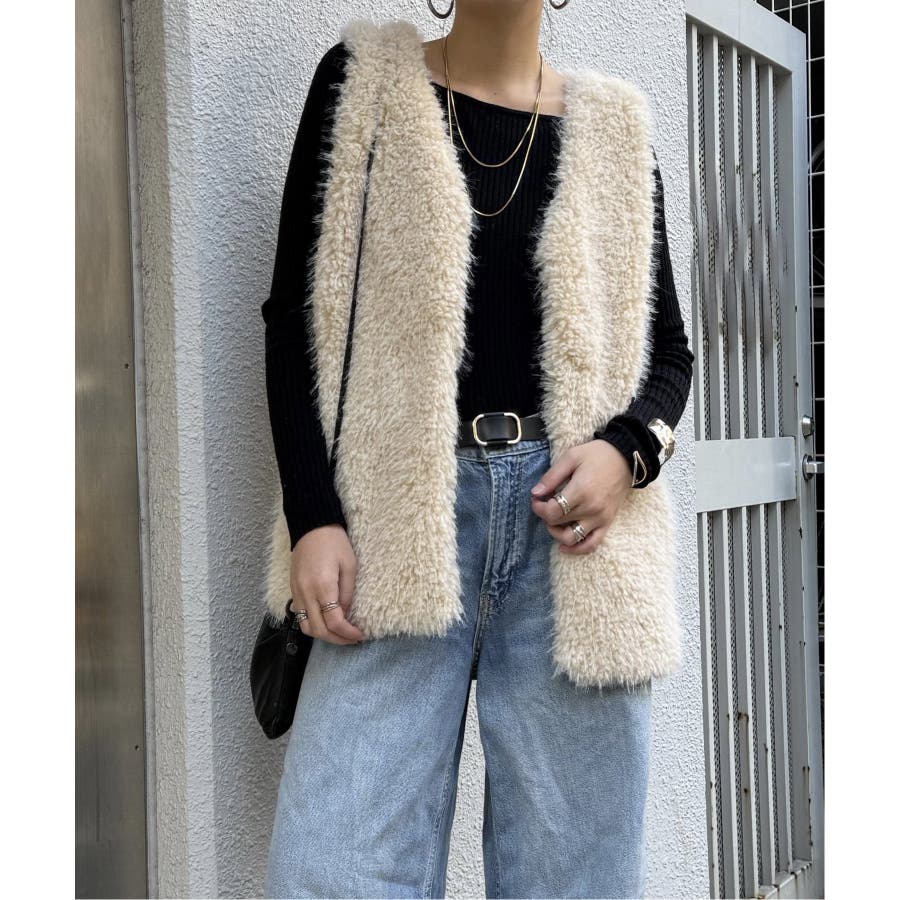 毛足の長めのフェイクファーが、存在感たっぷりのベスト。