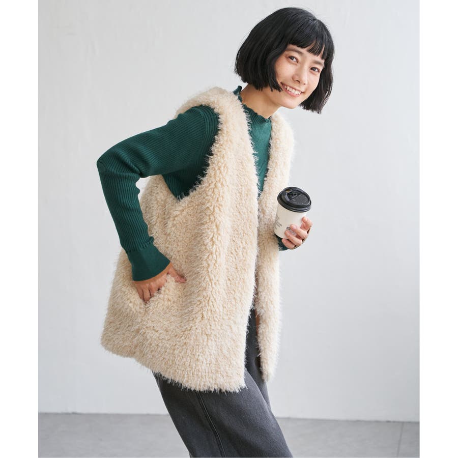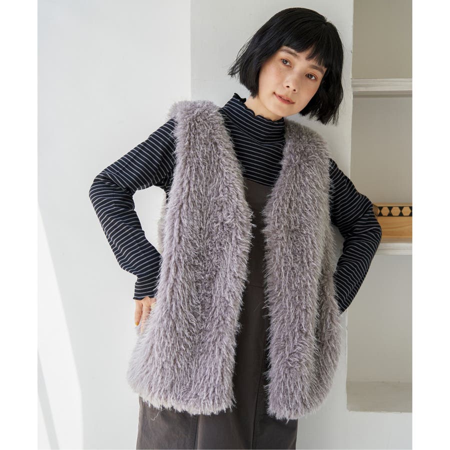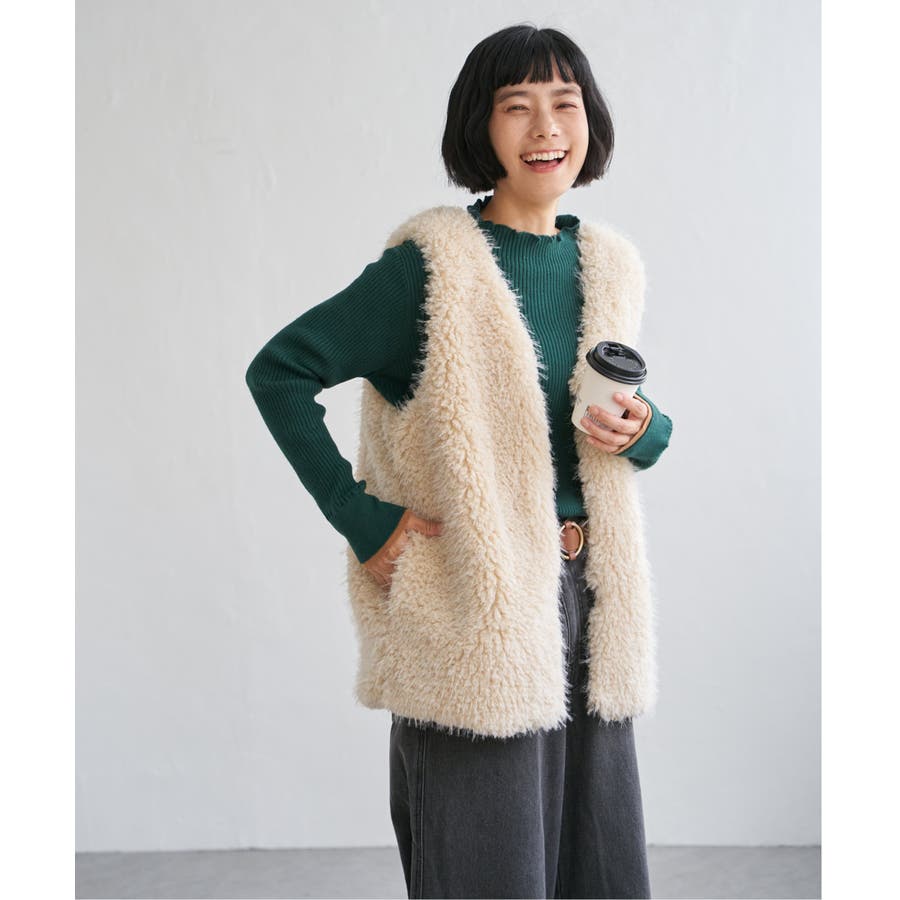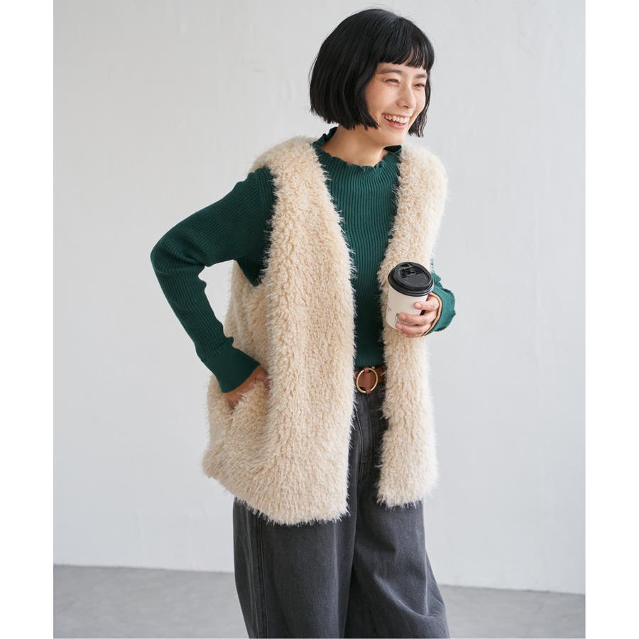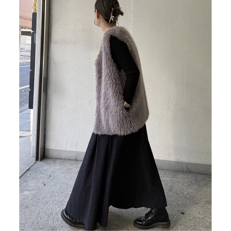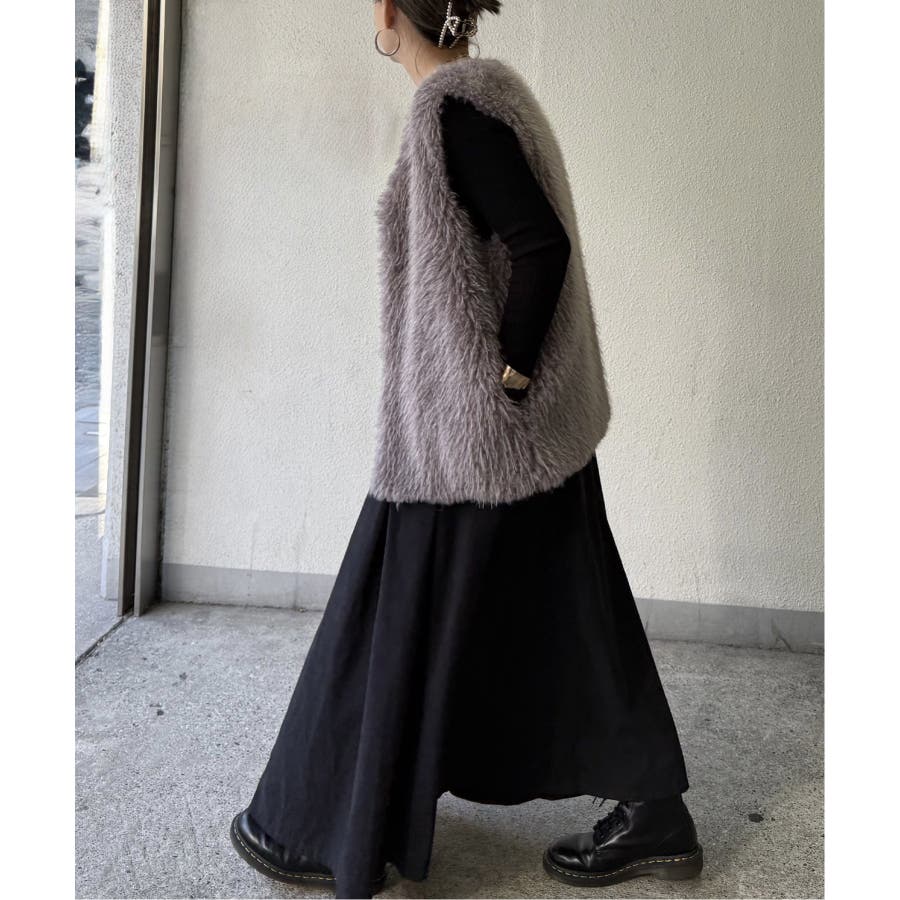 毛足の長めのフェイクファーが、存在感たっぷりのベスト。