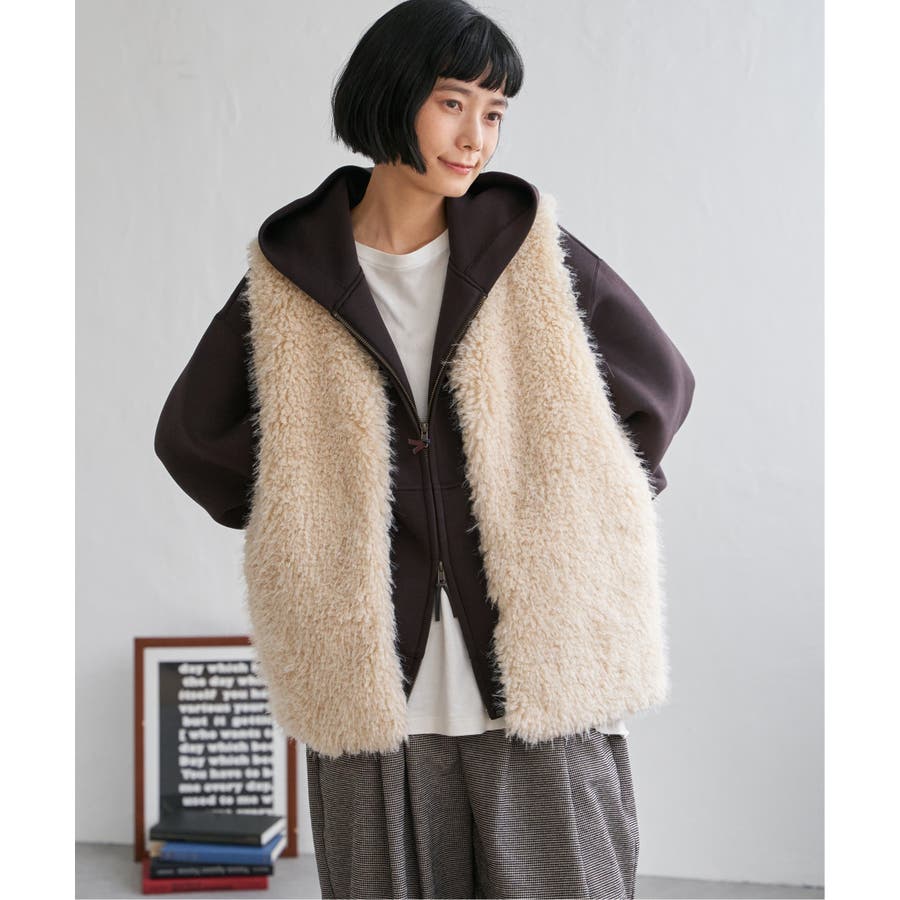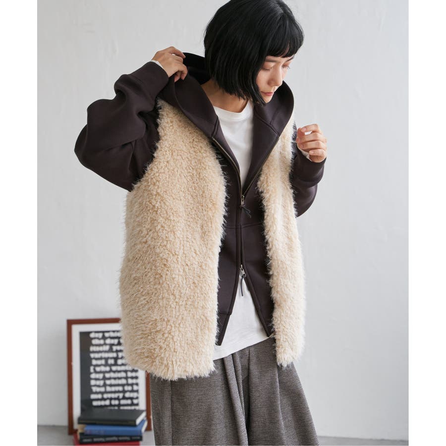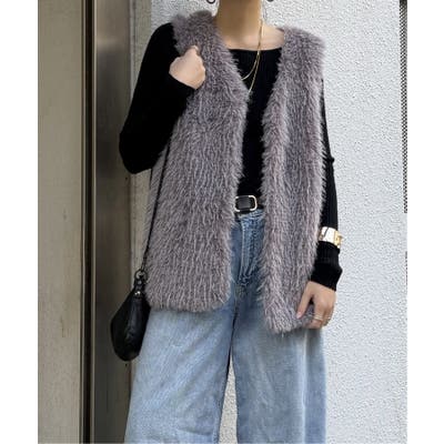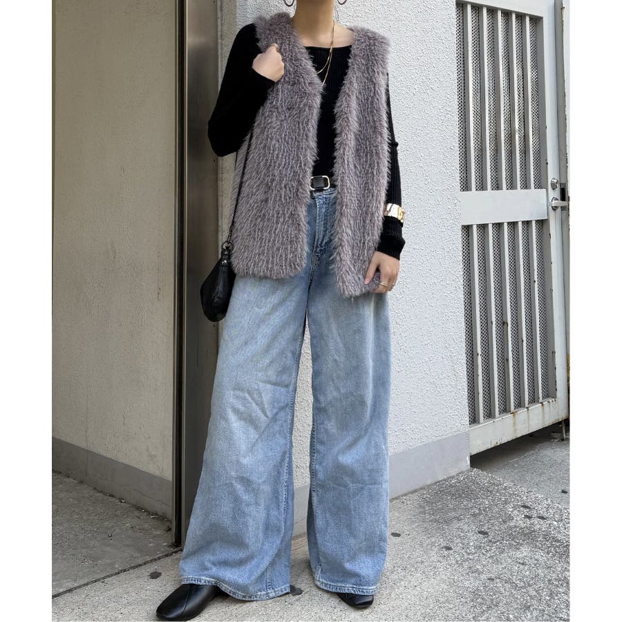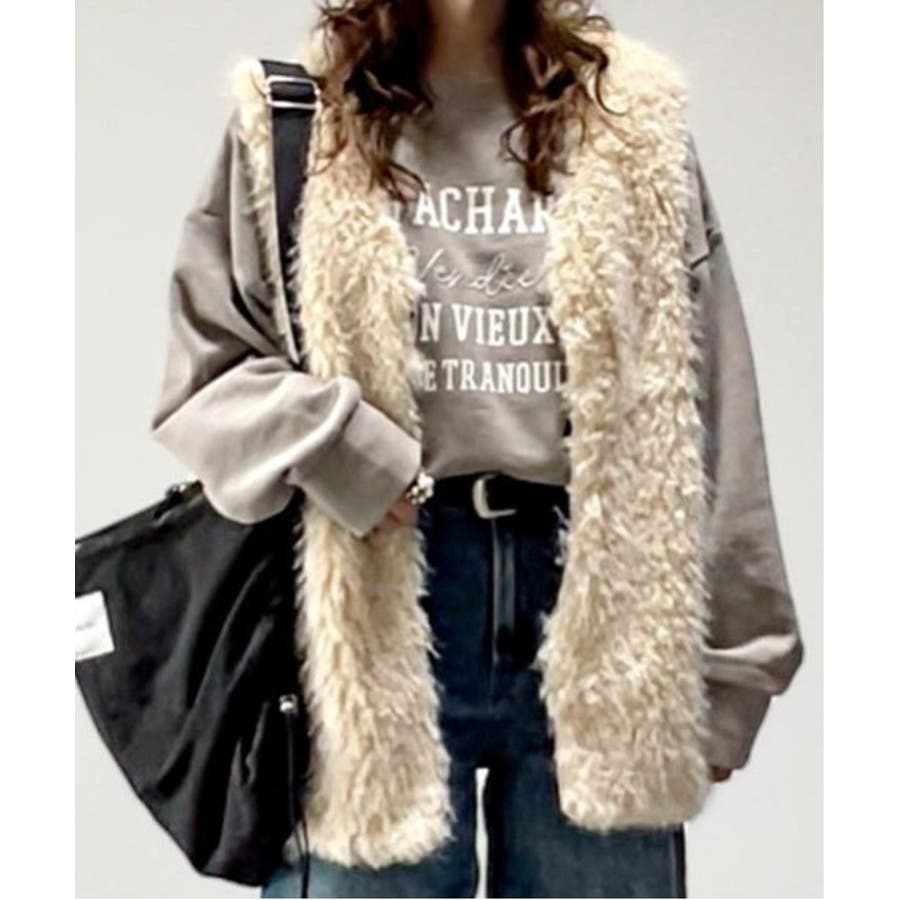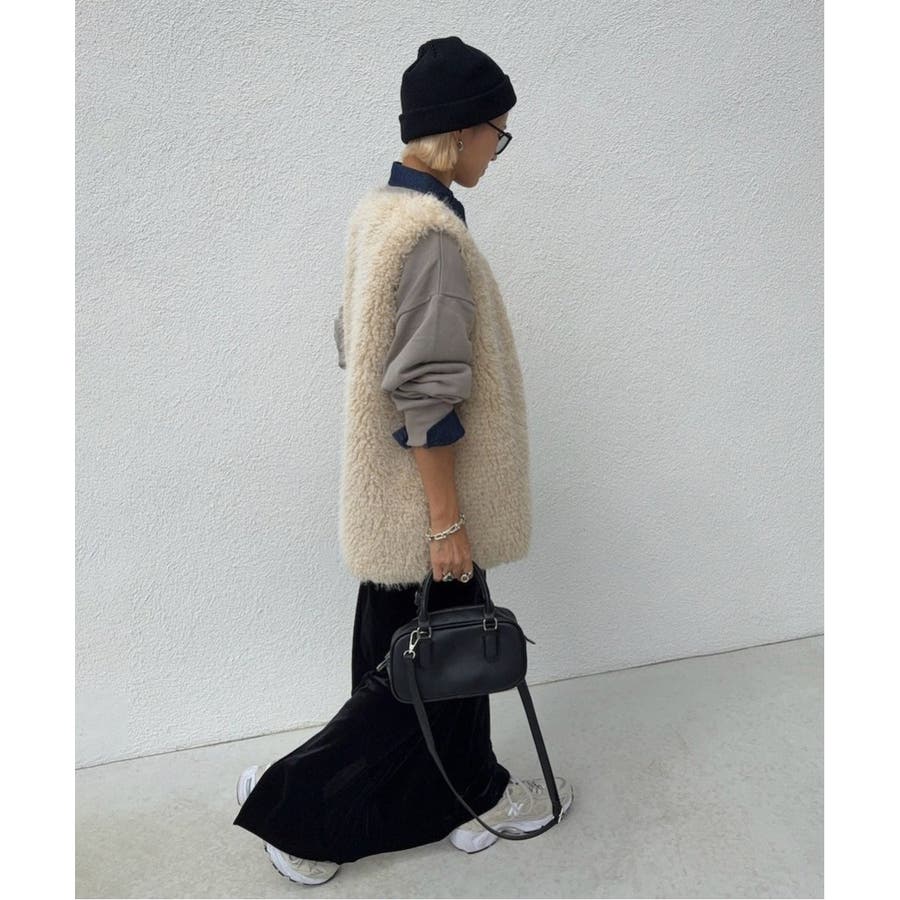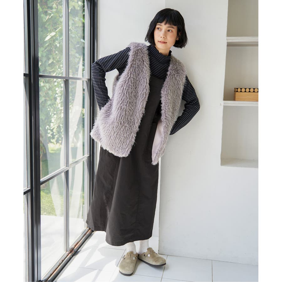 毛足の長めのフェイクファーが、存在感たっぷりのベスト。