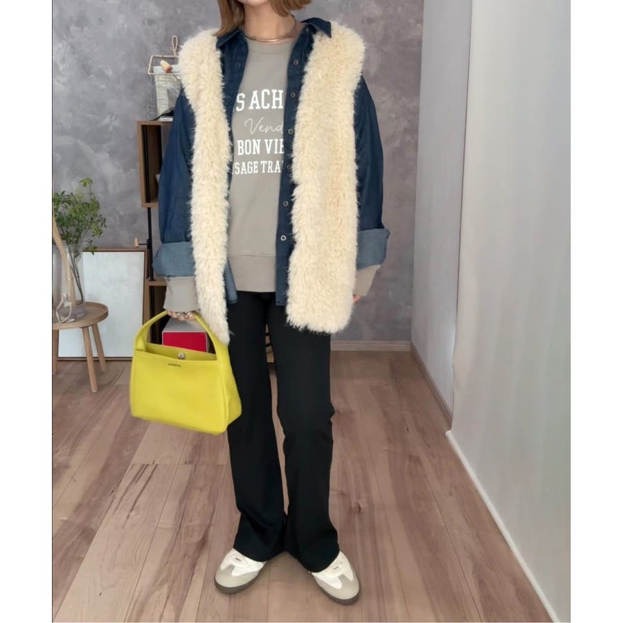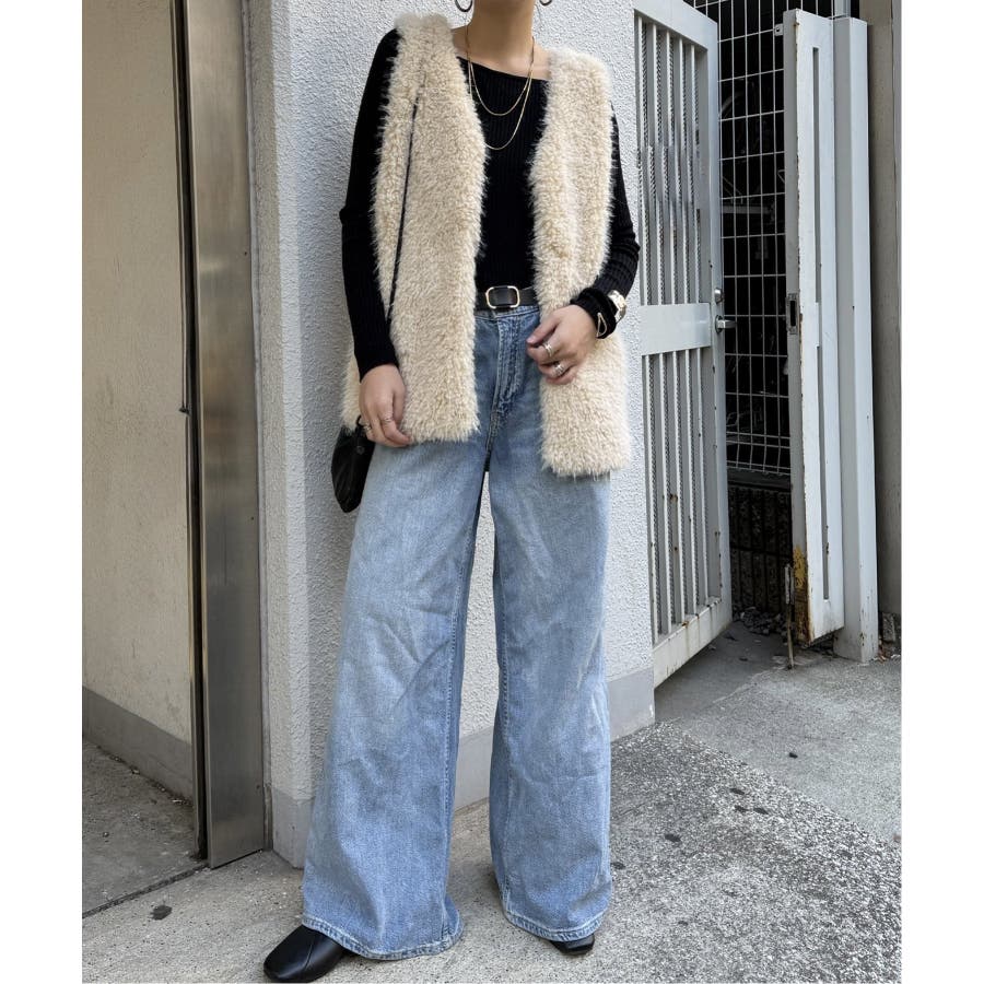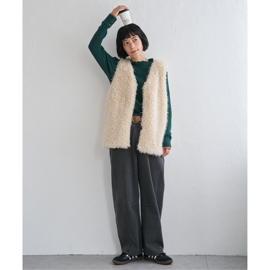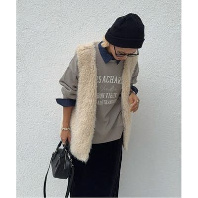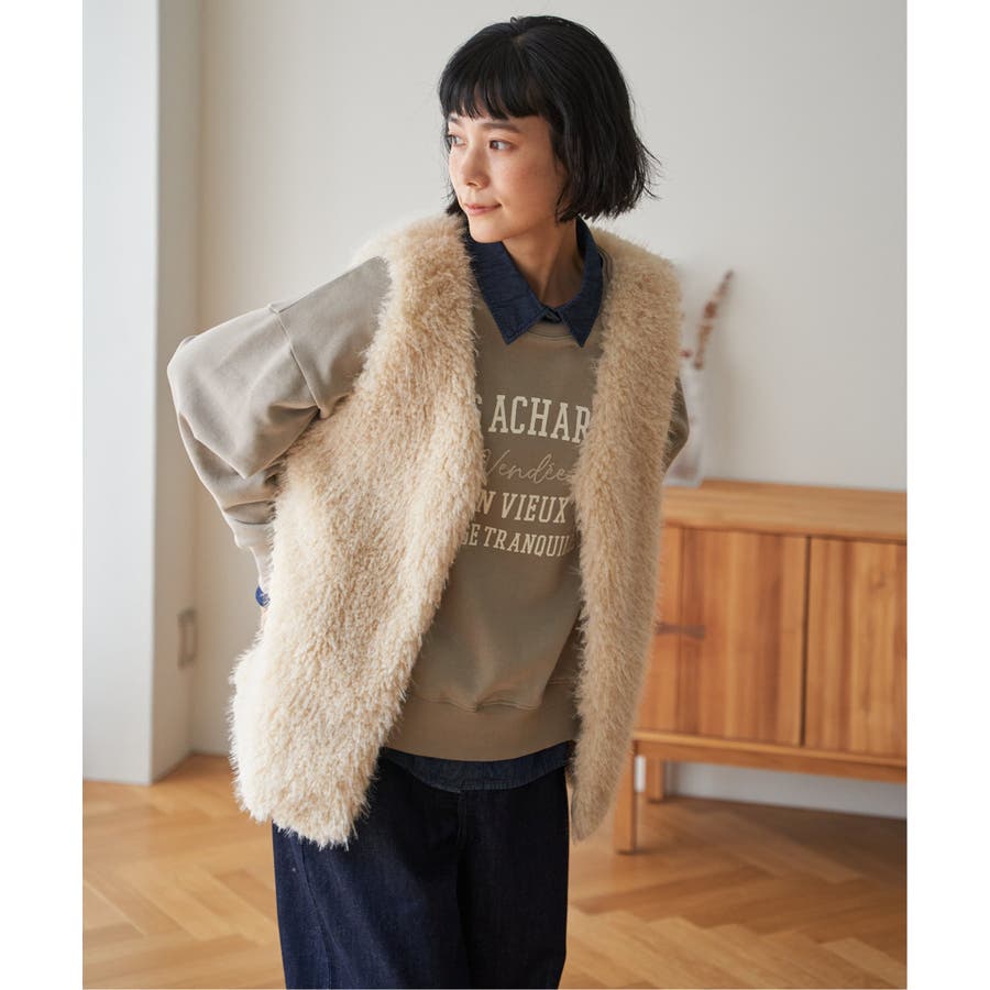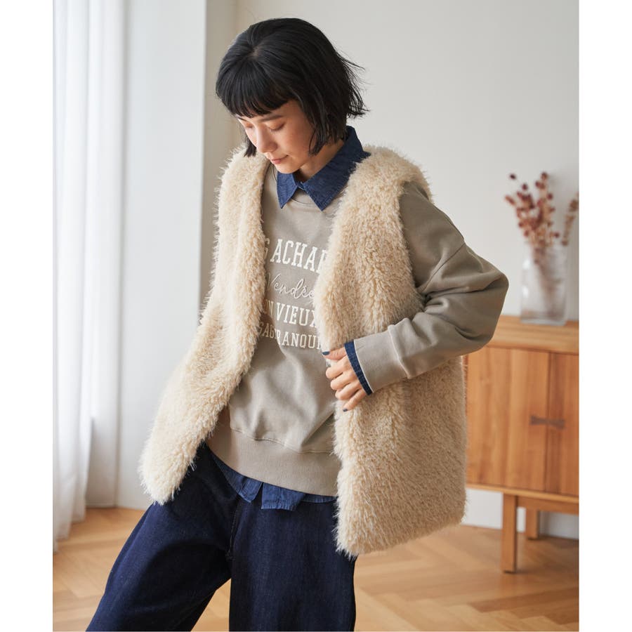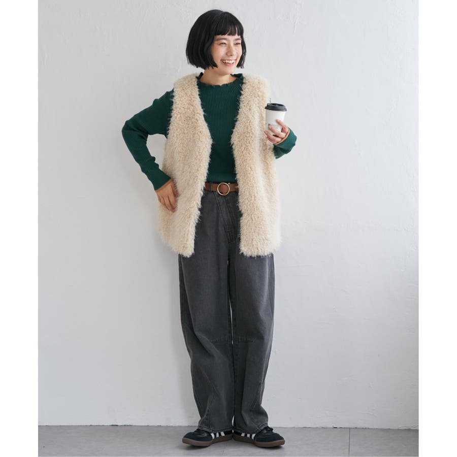 毛足の長めのフェイクファーが、存在感たっぷりのベスト。
