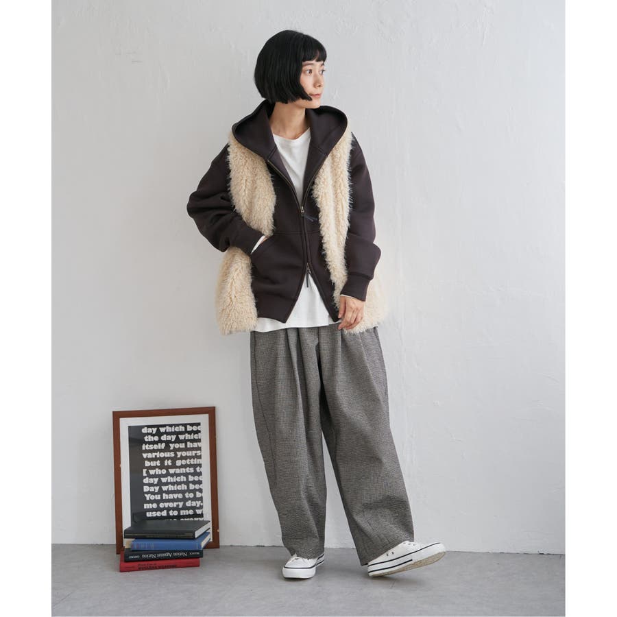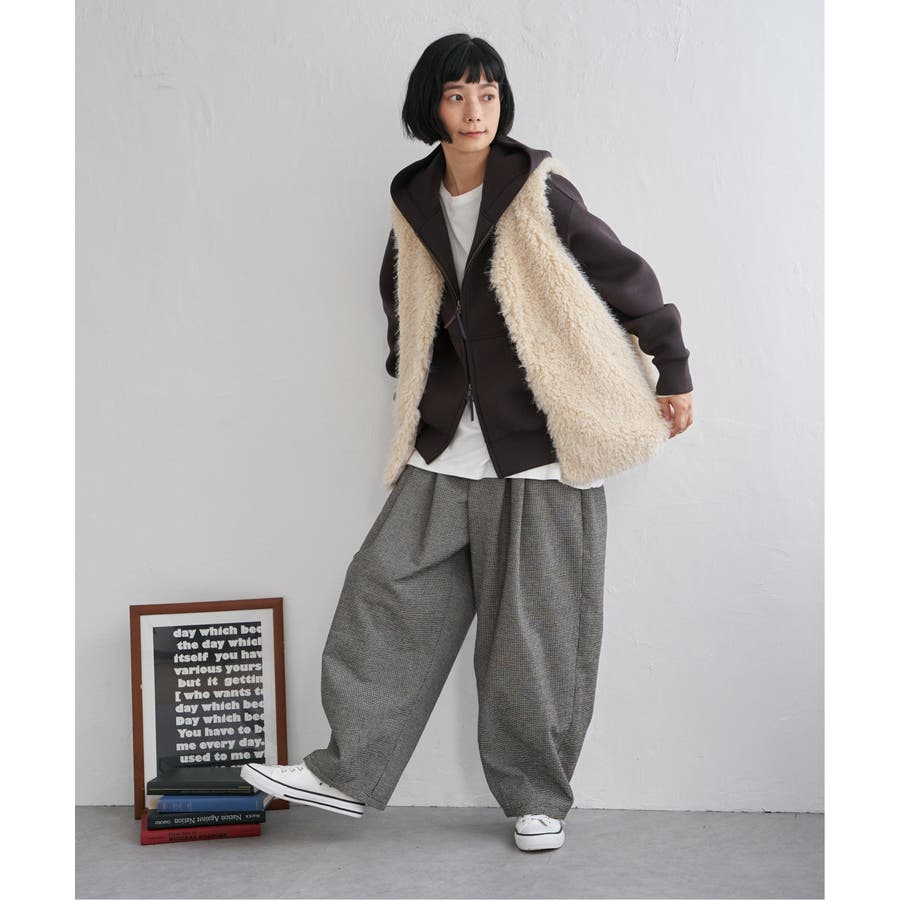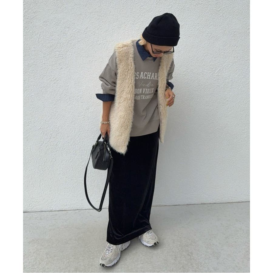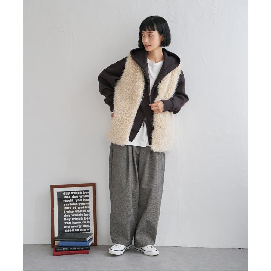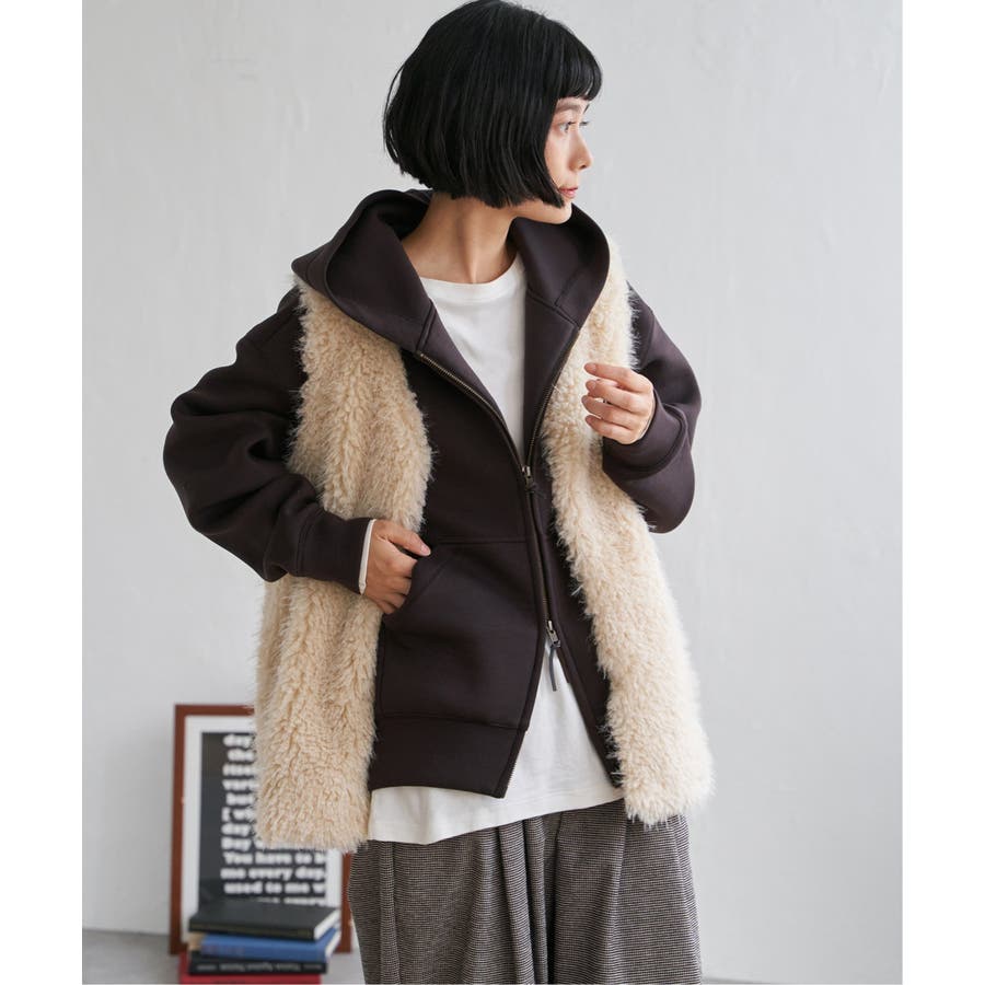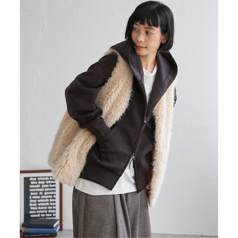 毛足の長めのフェイクファーが、存在感たっぷりのベスト。