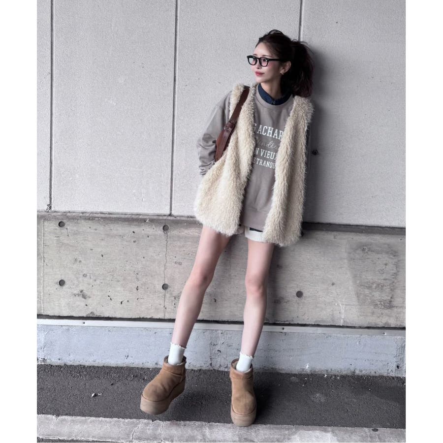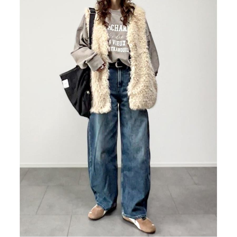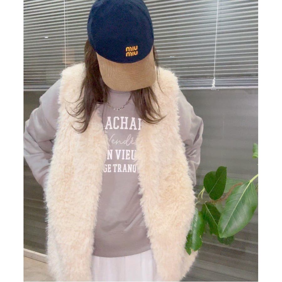 気温対応のできる軽いフェイクファーベストは今後活躍するアイテム間違いなし。!