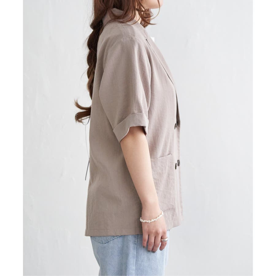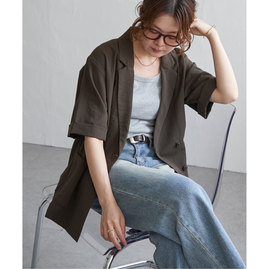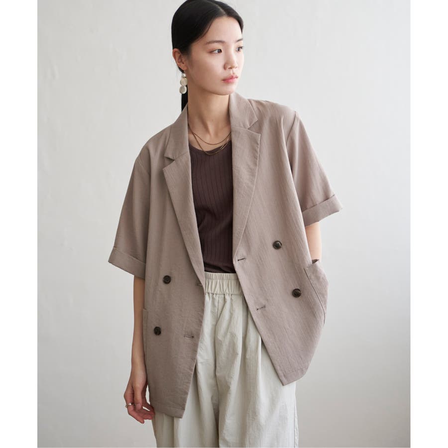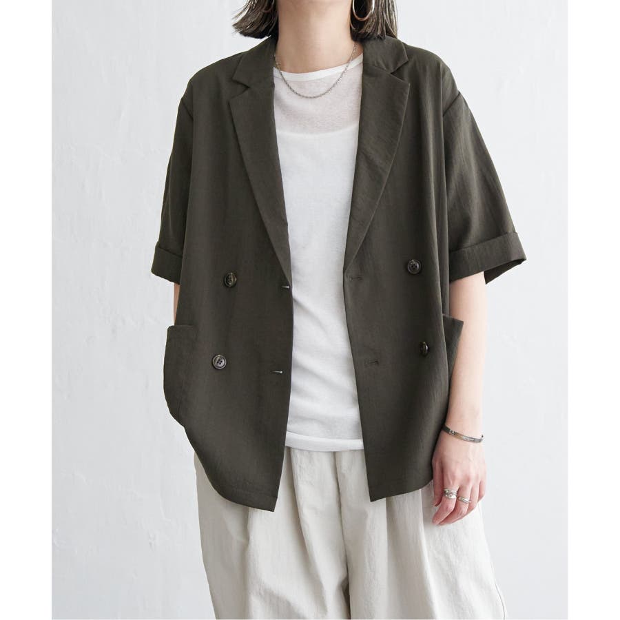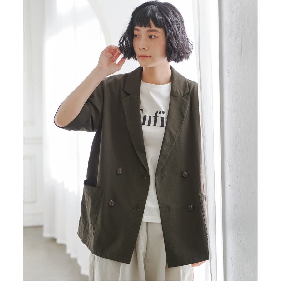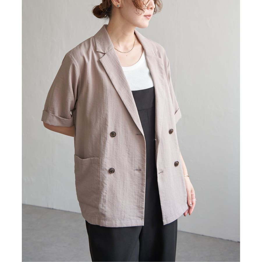 リネンのような風合いを持ちながら、シワになりにくくお手入れが簡単なハーフジャケット。