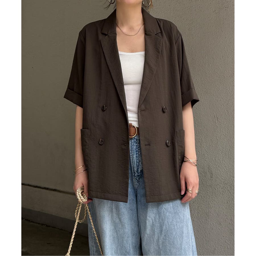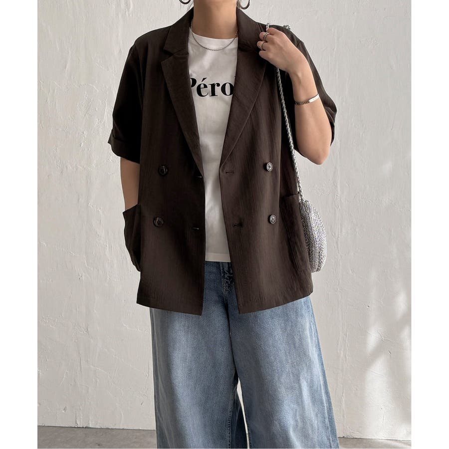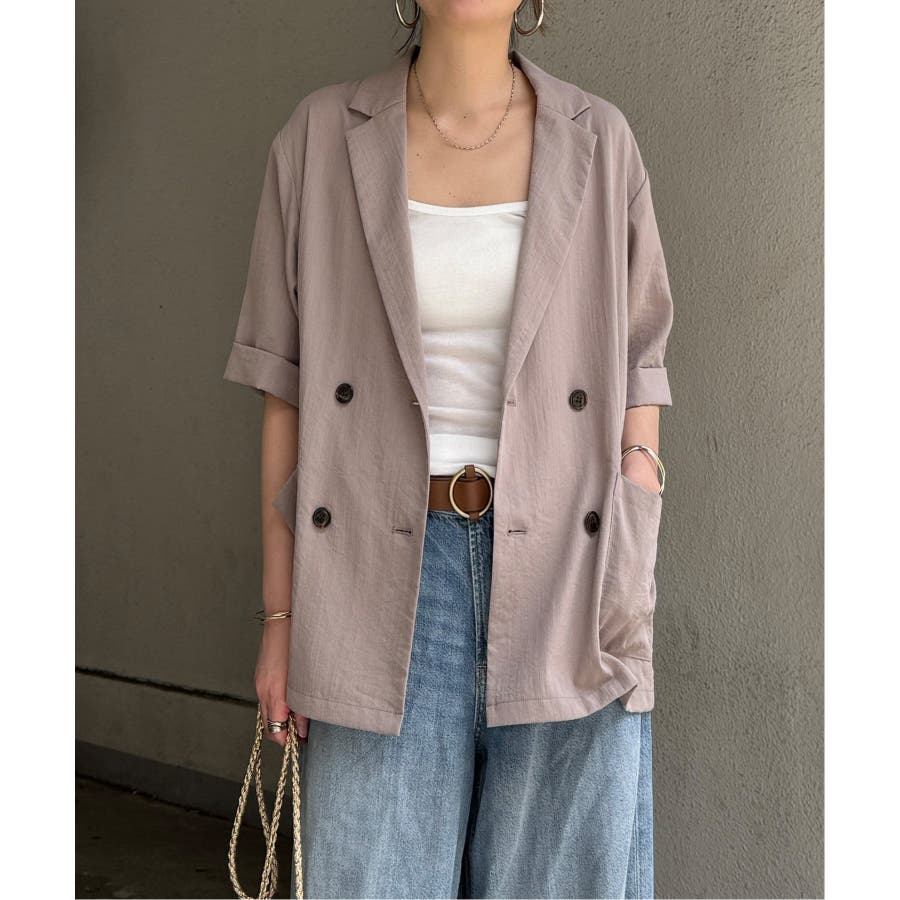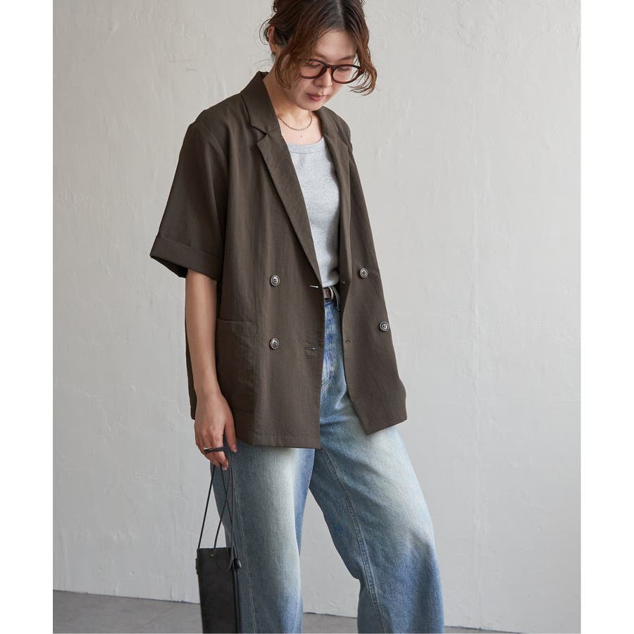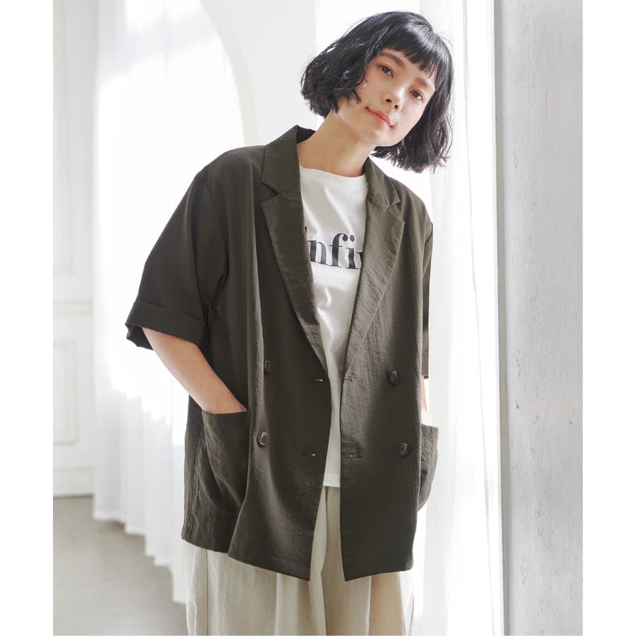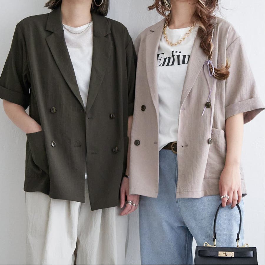 リネンのような風合いを持ちながら、シワになりにくくお手入れが簡単なハーフジャケット。