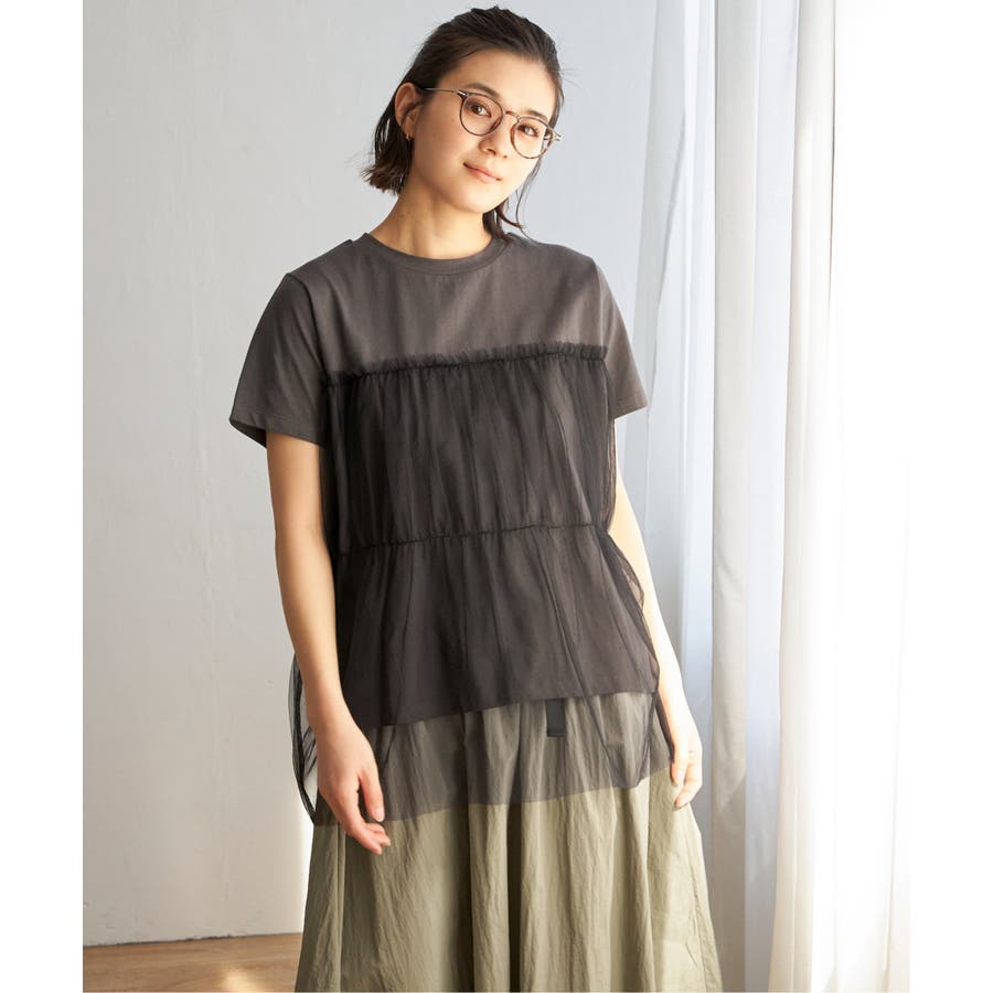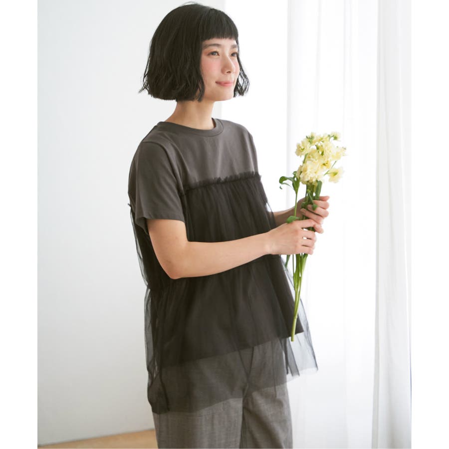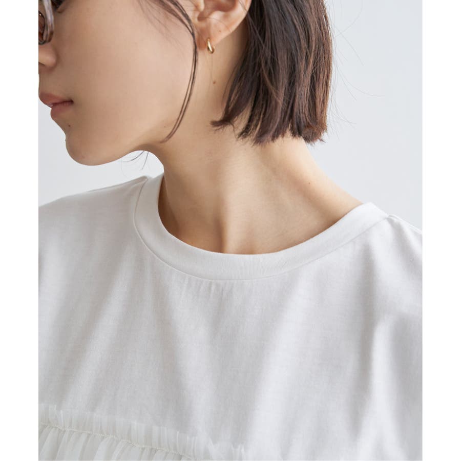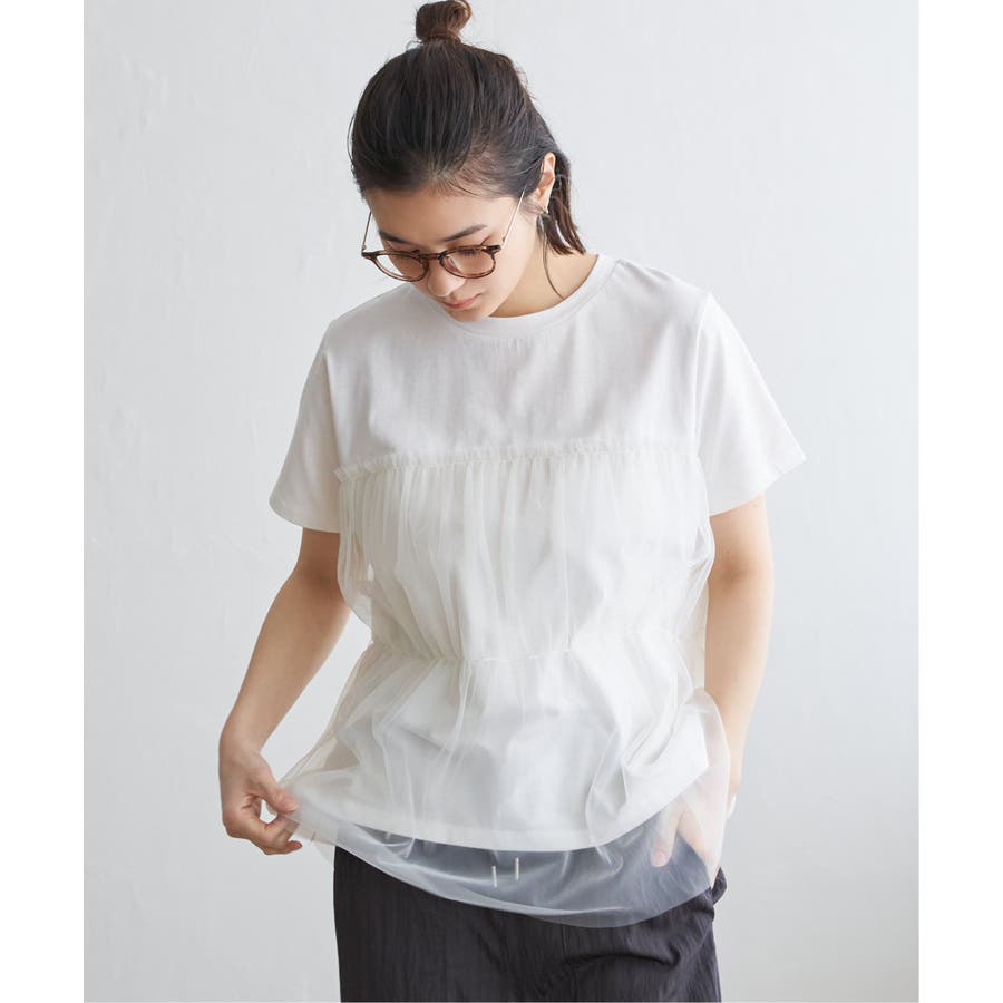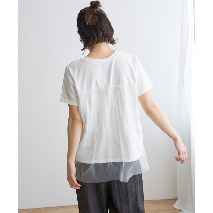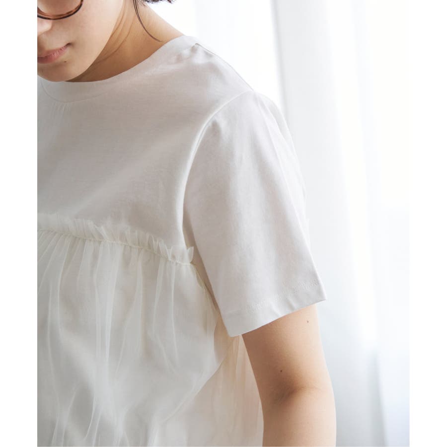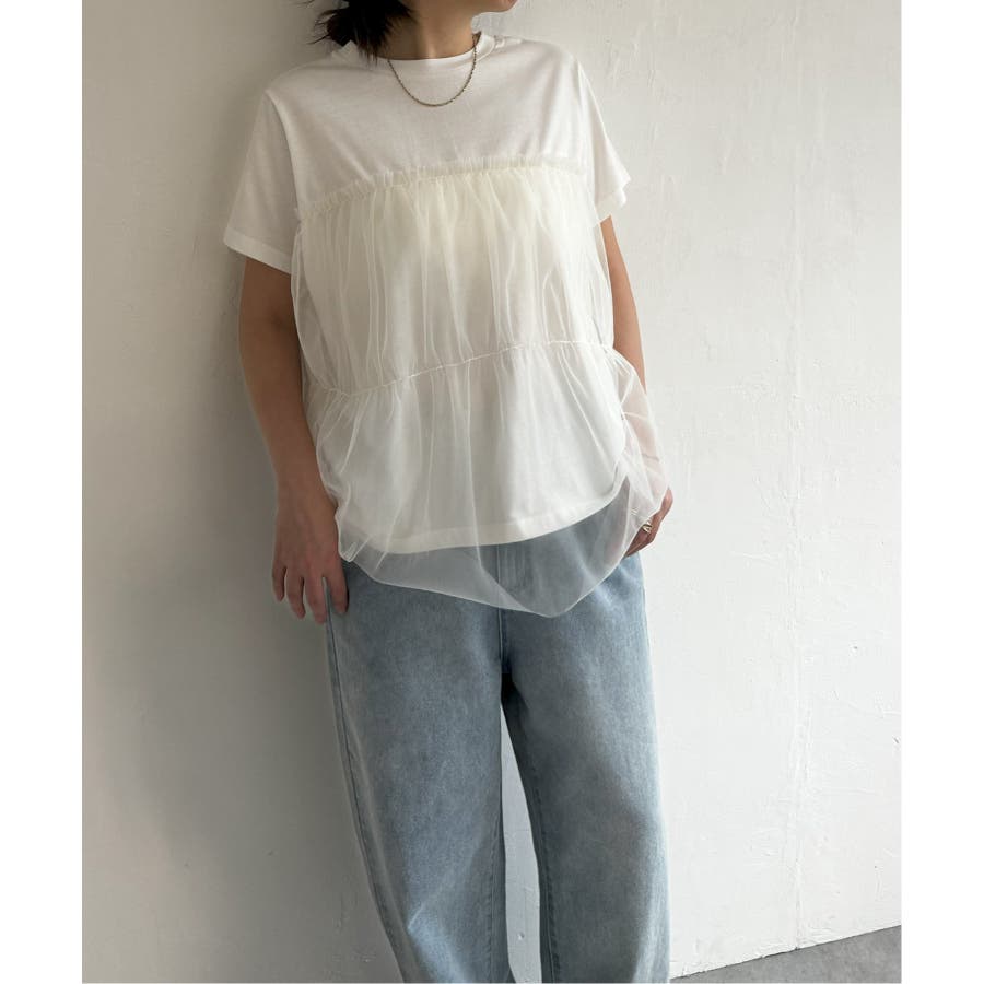 胸元でチュールをレイヤードしたTシャツです。
