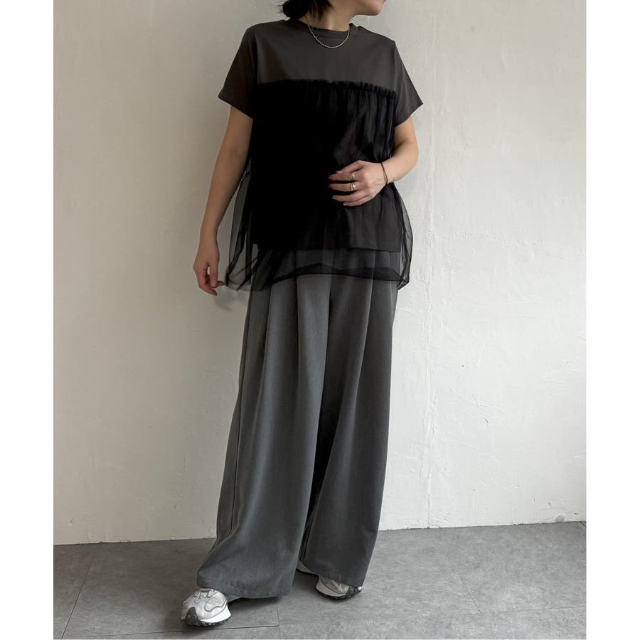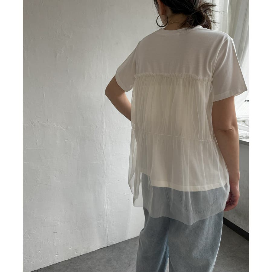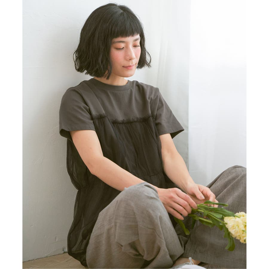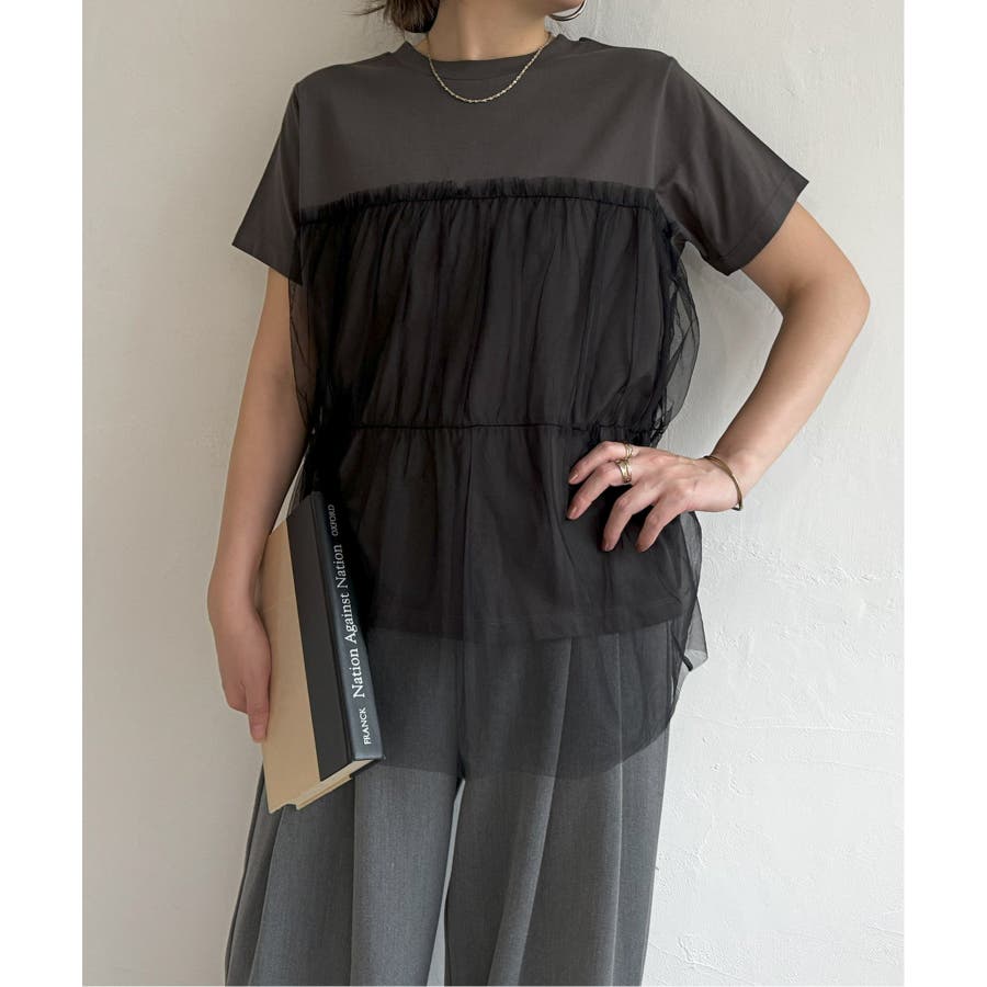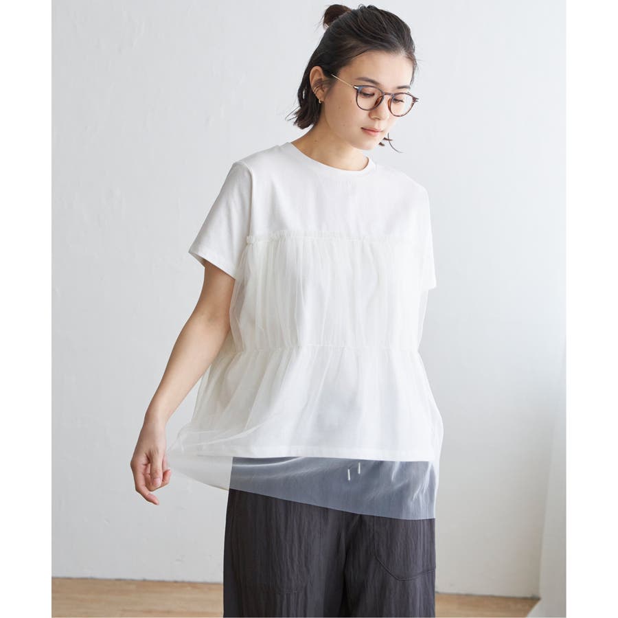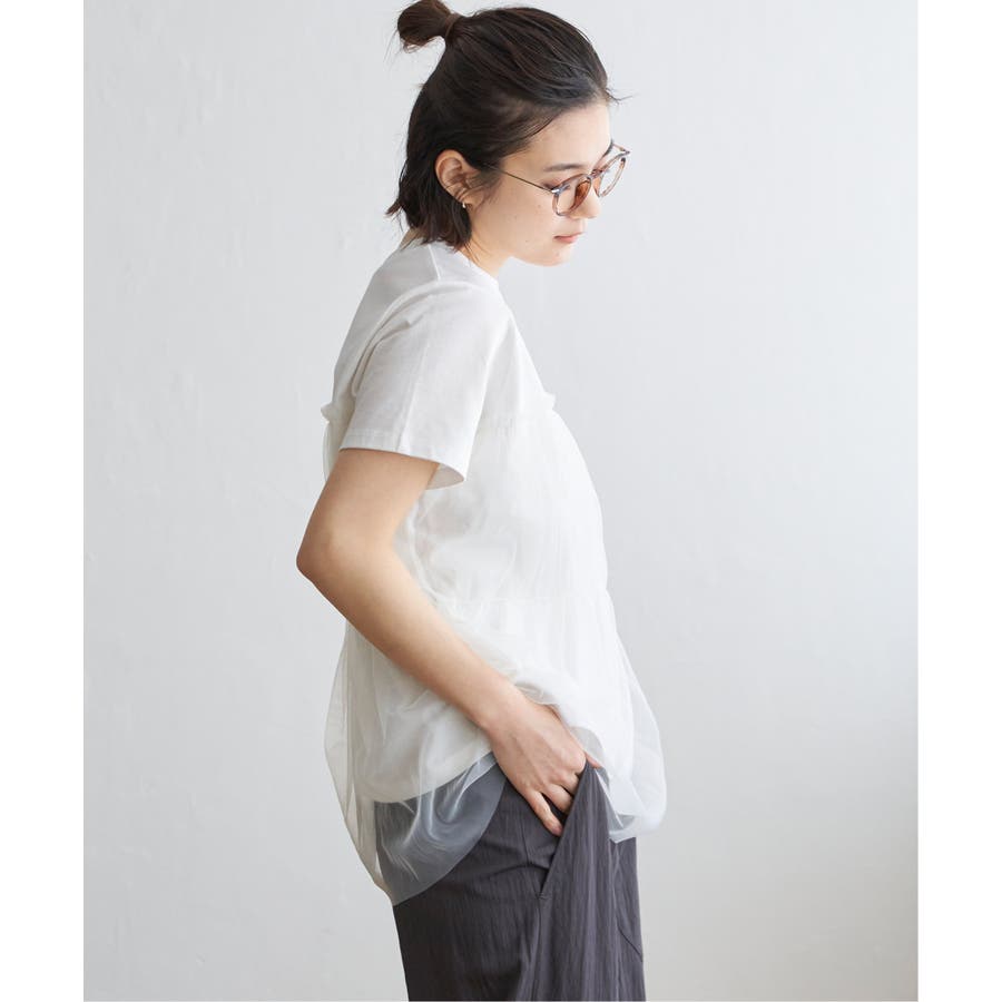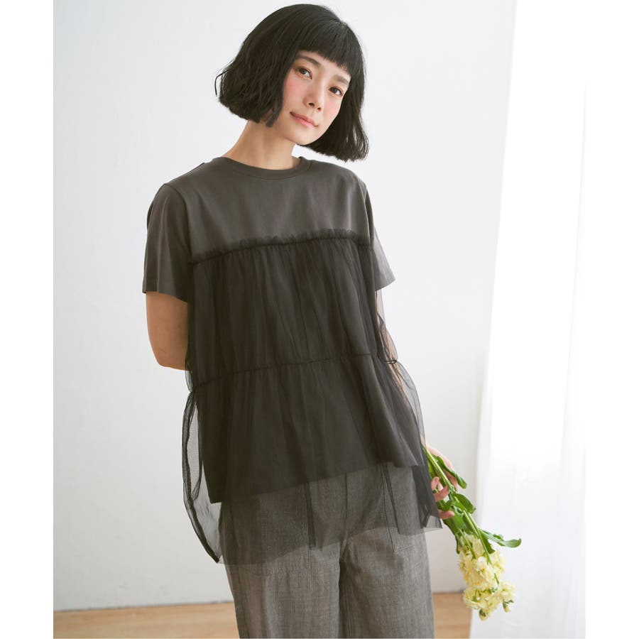 胸元でチュールをレイヤードしたTシャツです。
