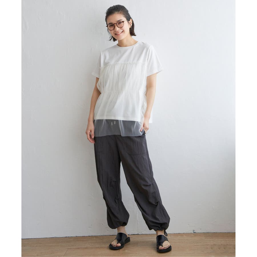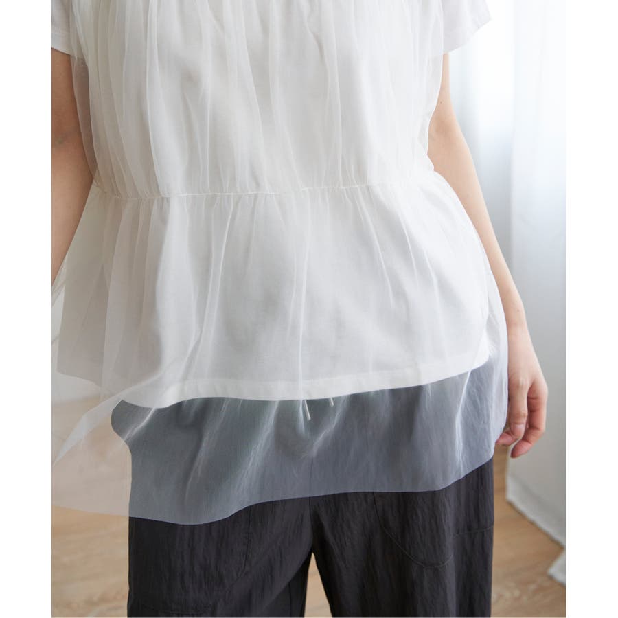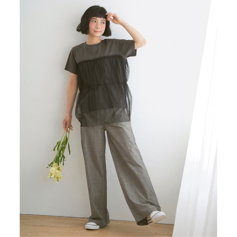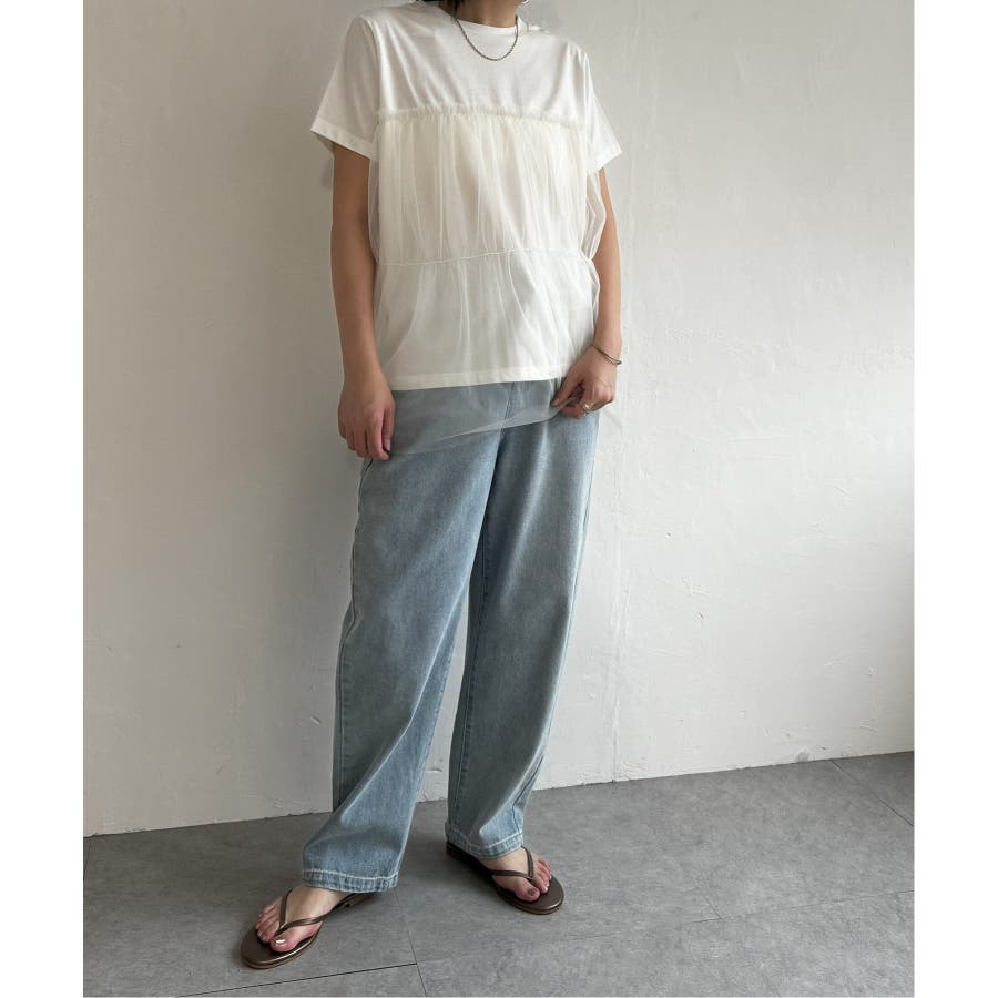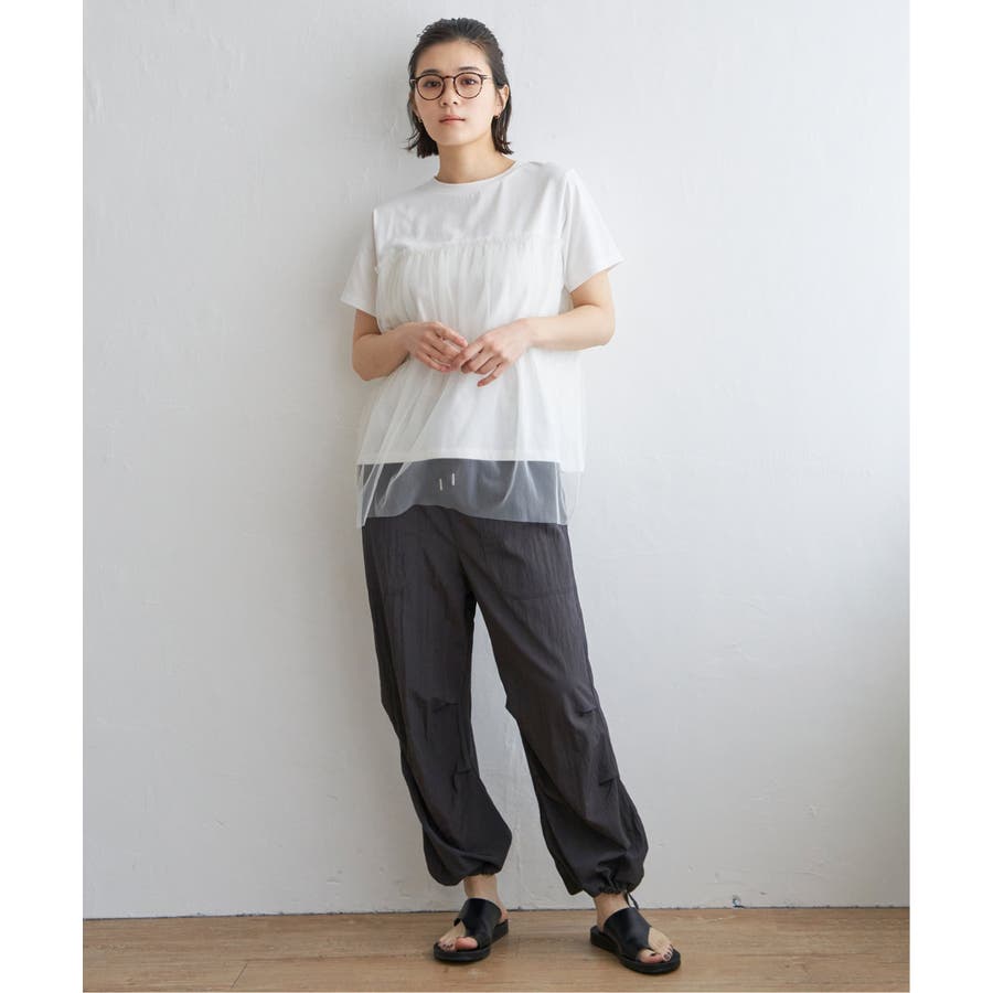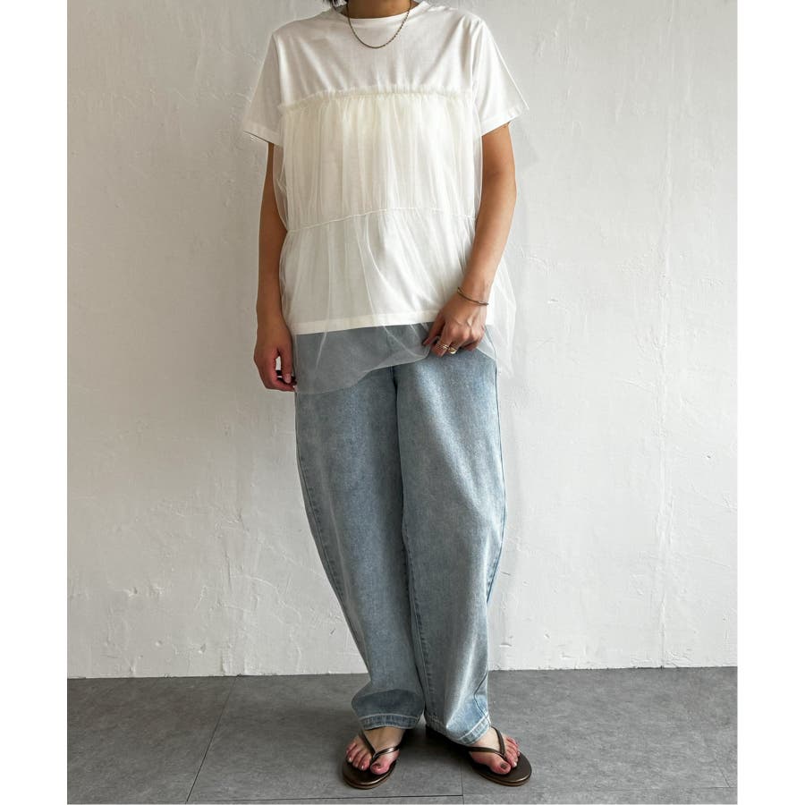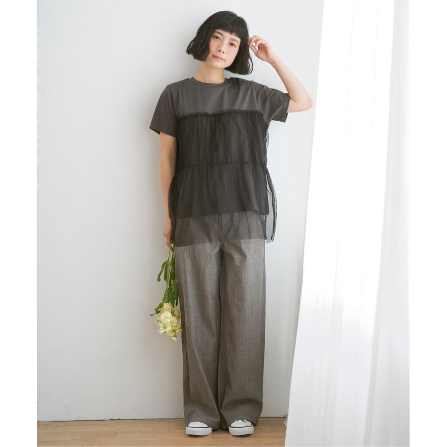 胸元でチュールをレイヤードしたTシャツです。