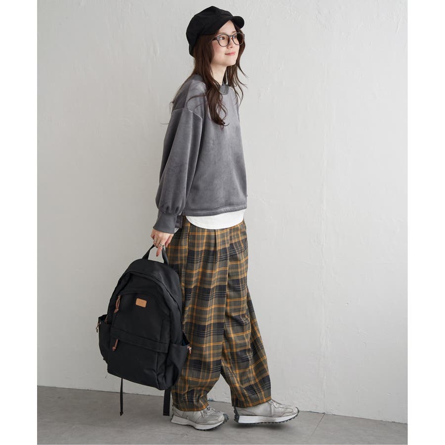表はコーデュロイのような縦柄と起毛感のあるベロア、裏もなめらかな両面起毛素材。