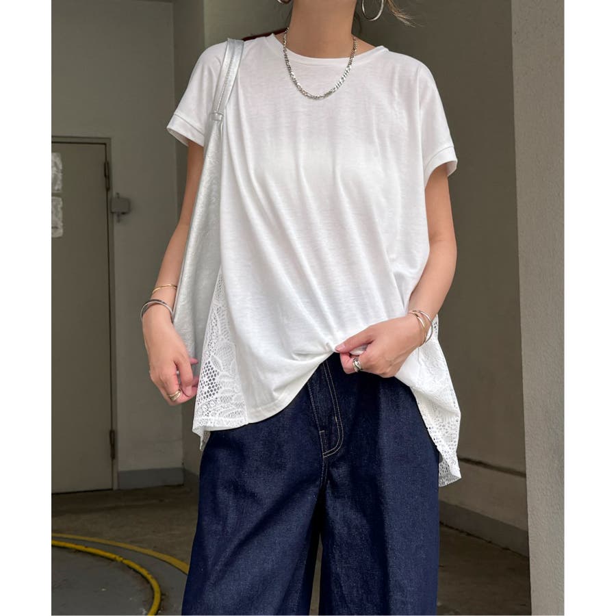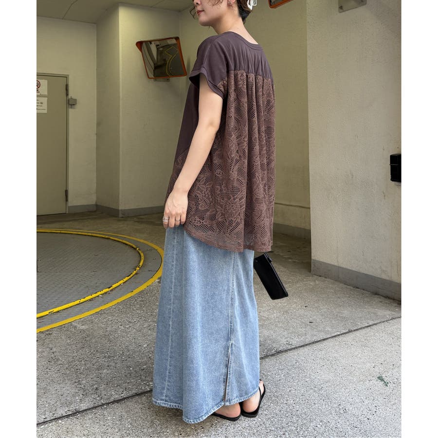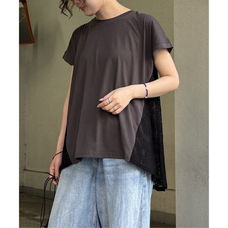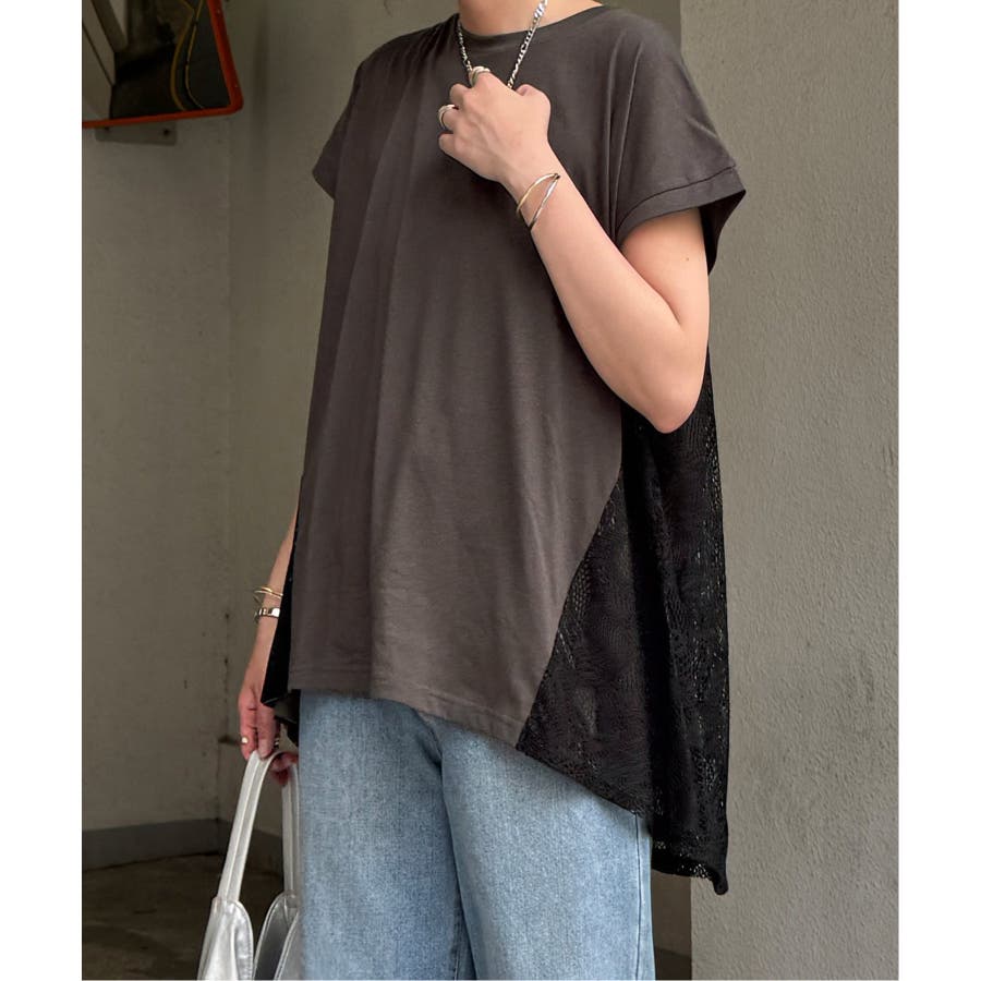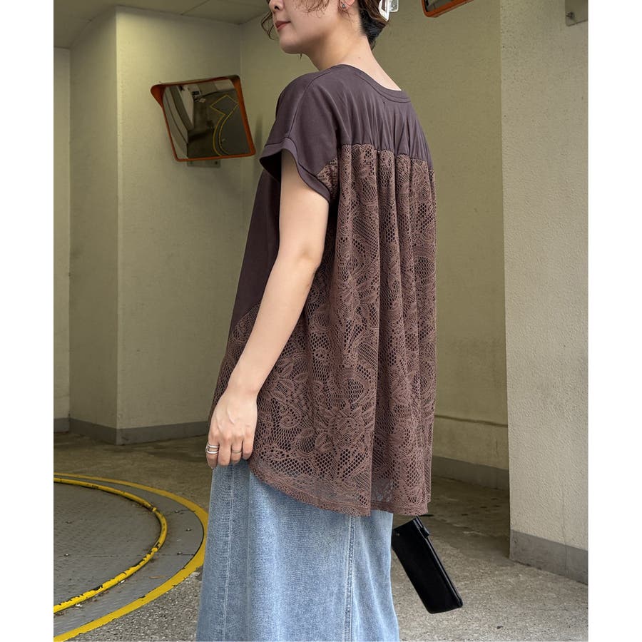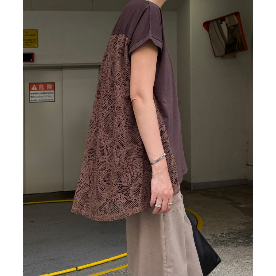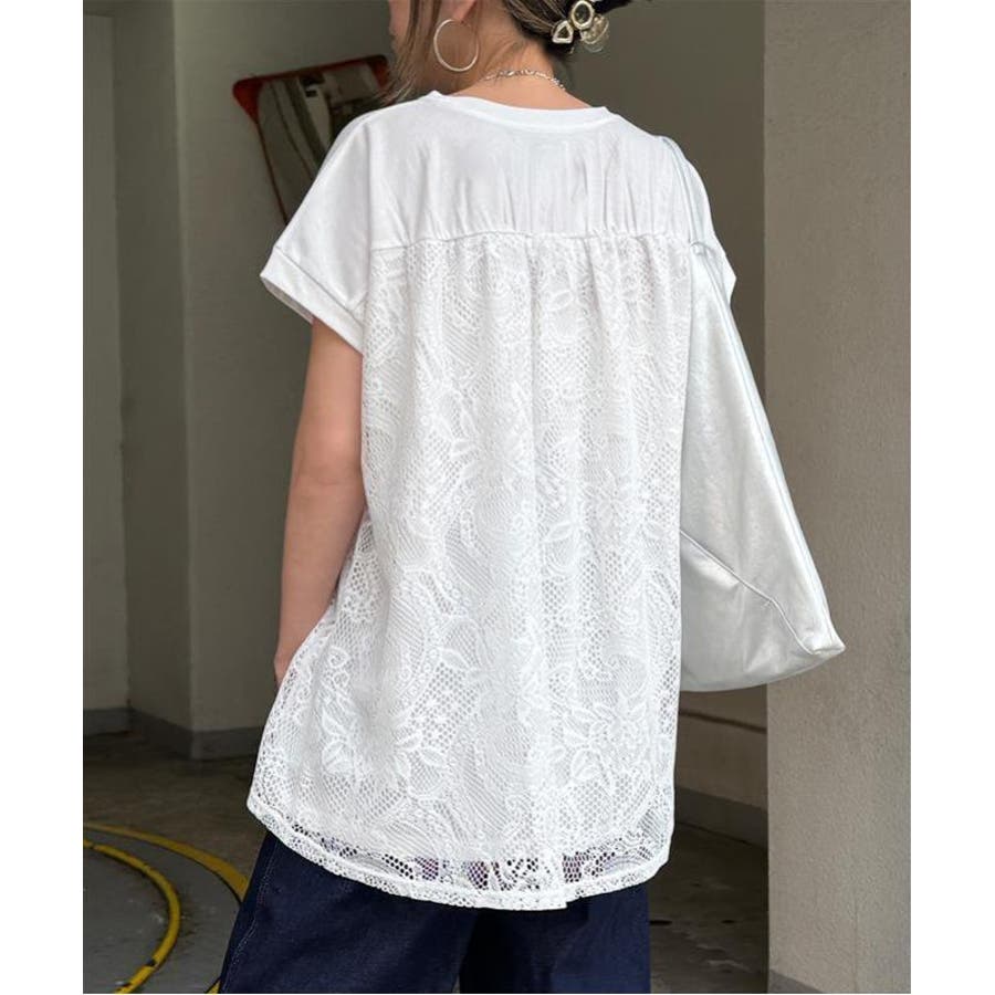 トレンドのレースをバックスタイルにレイヤードで使用したプルオーバー。