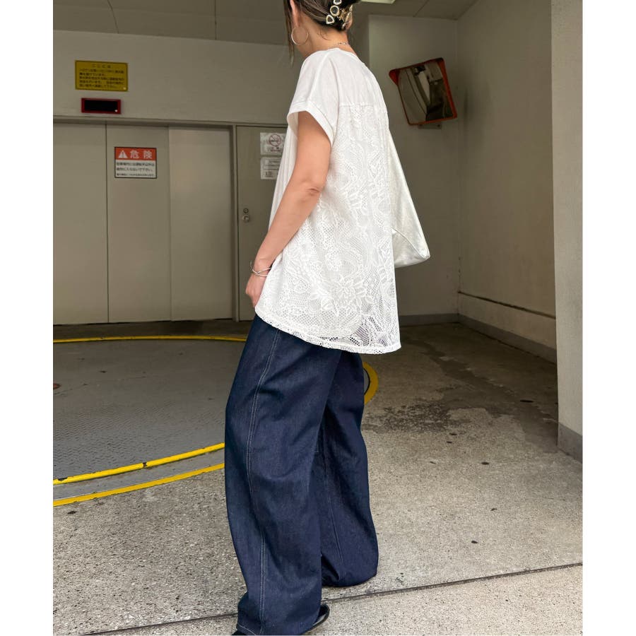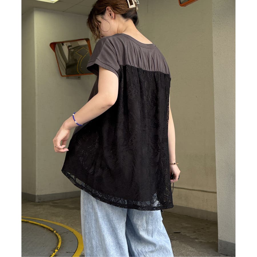 さりげなく背中で魅せる、レースレイヤードのプルオーバー。