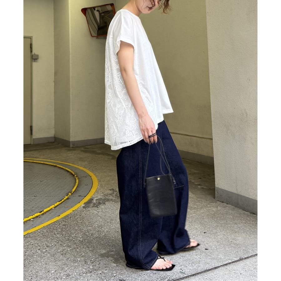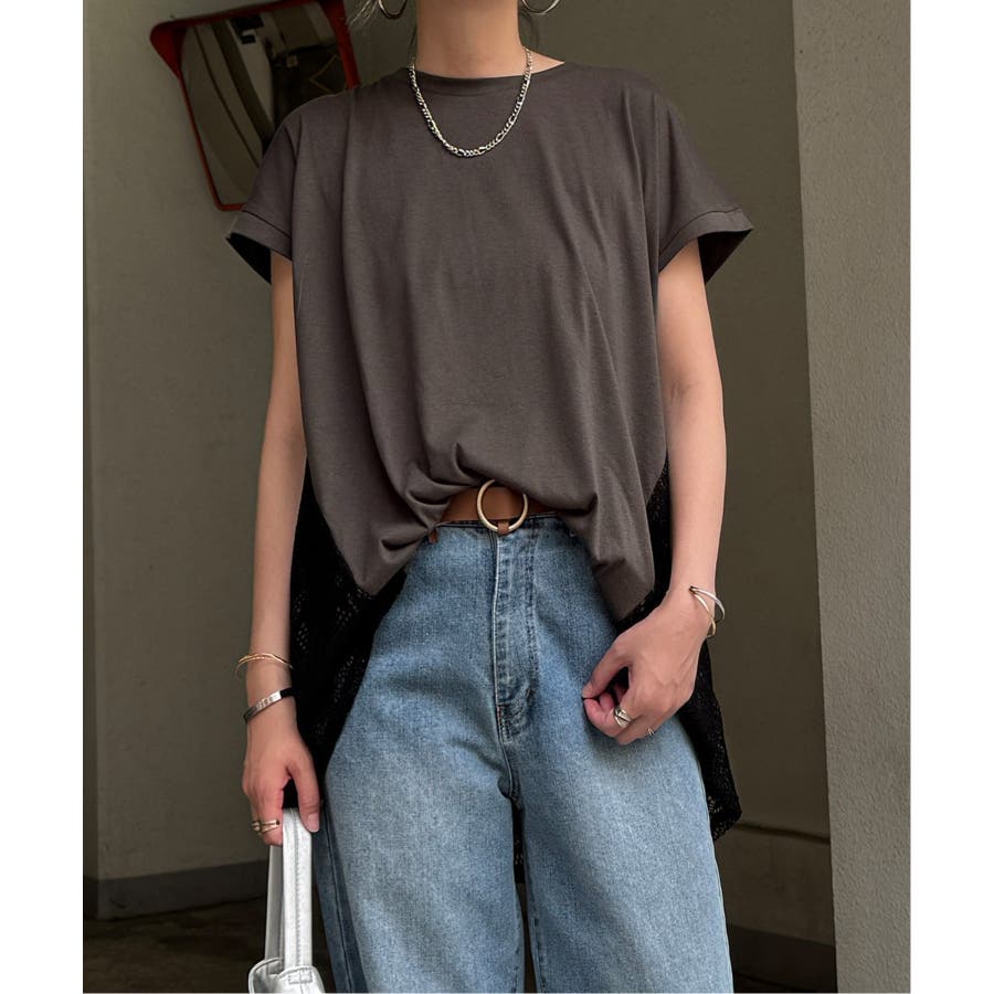 肩まわりをふんわりカバーするフレンチスリーブと、ほどよく体が泳ぐシルエットで、リラックスした着心地もポイント。