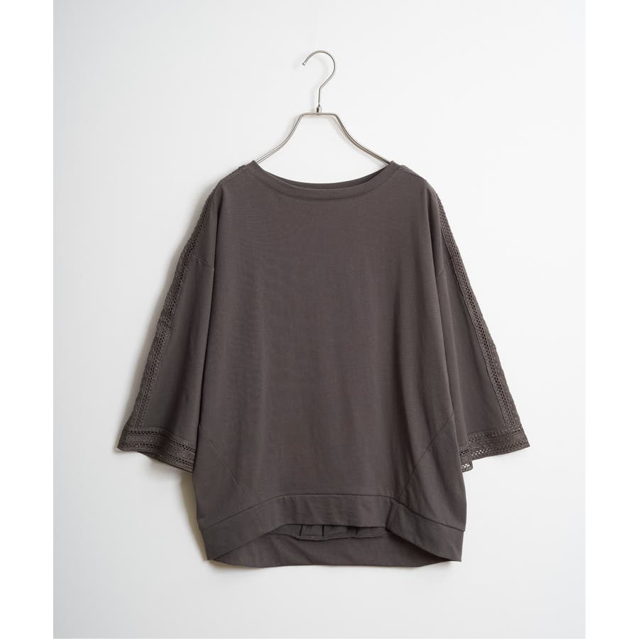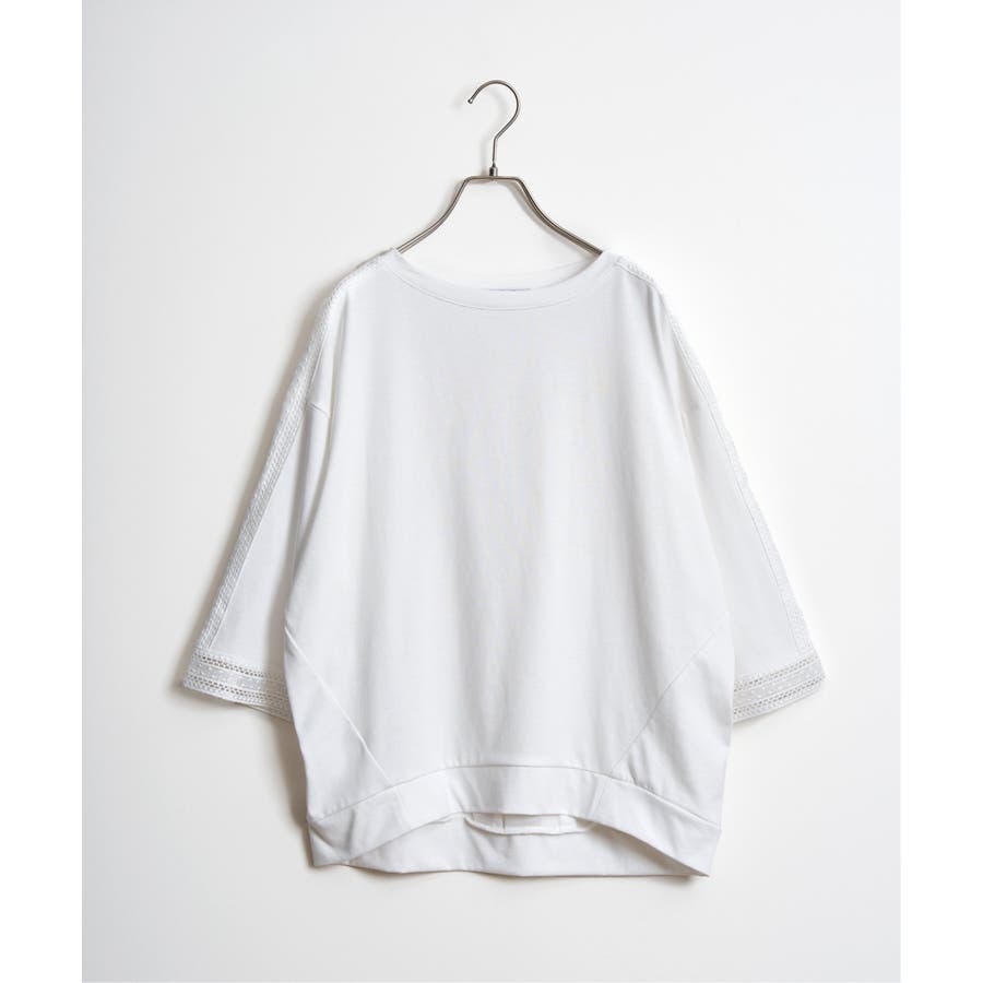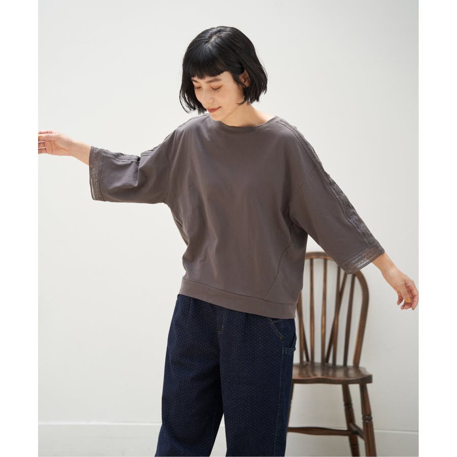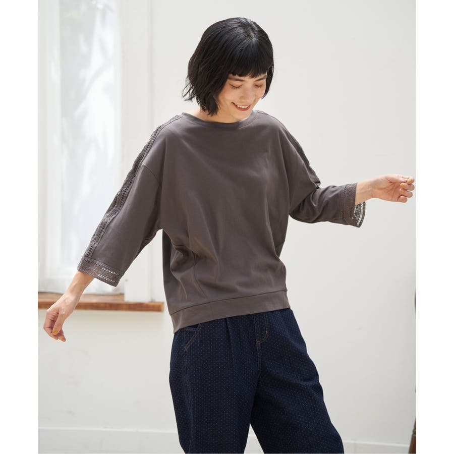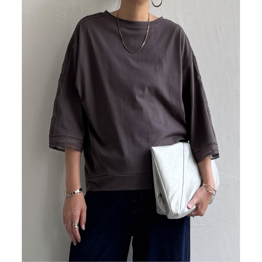 ほどよいゆとりとレースの華やかさを兼ね備えたスリーブレースカットプルオーバー。