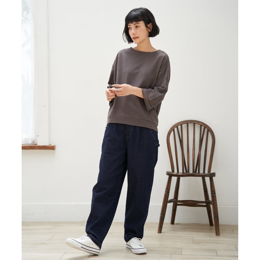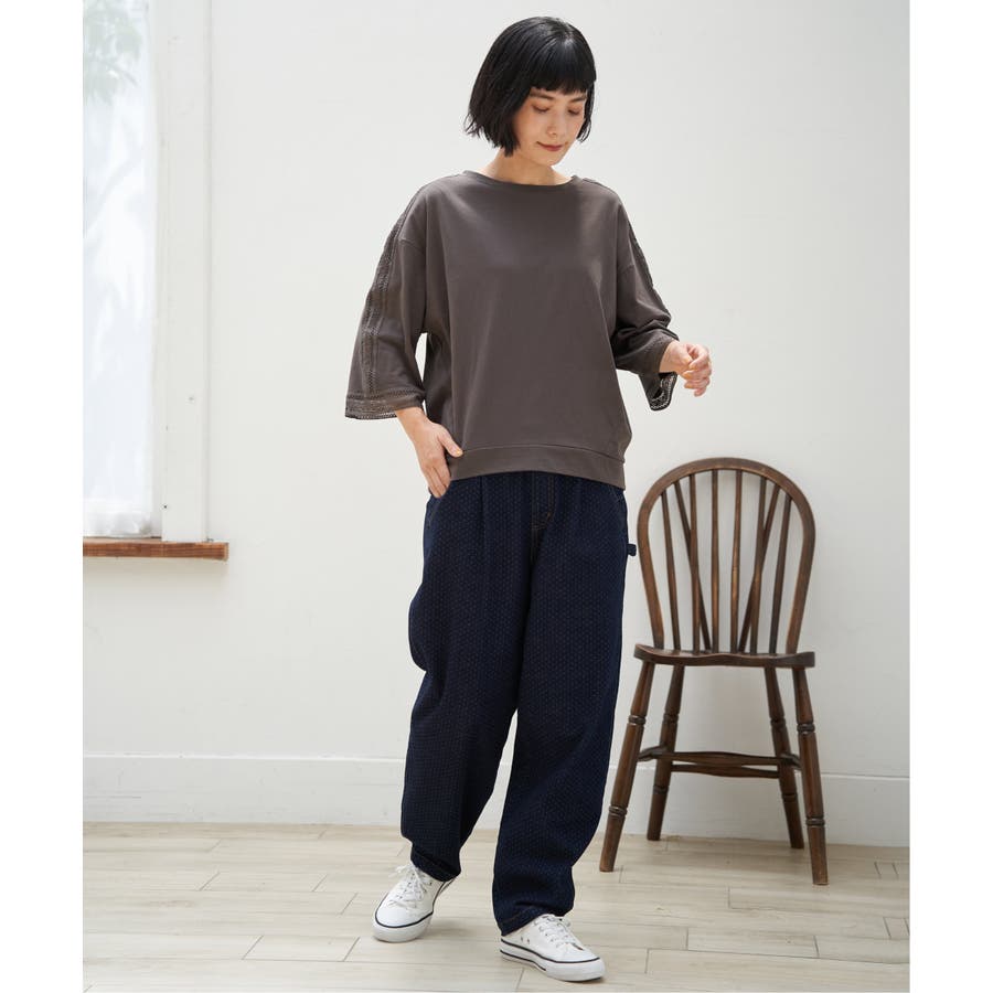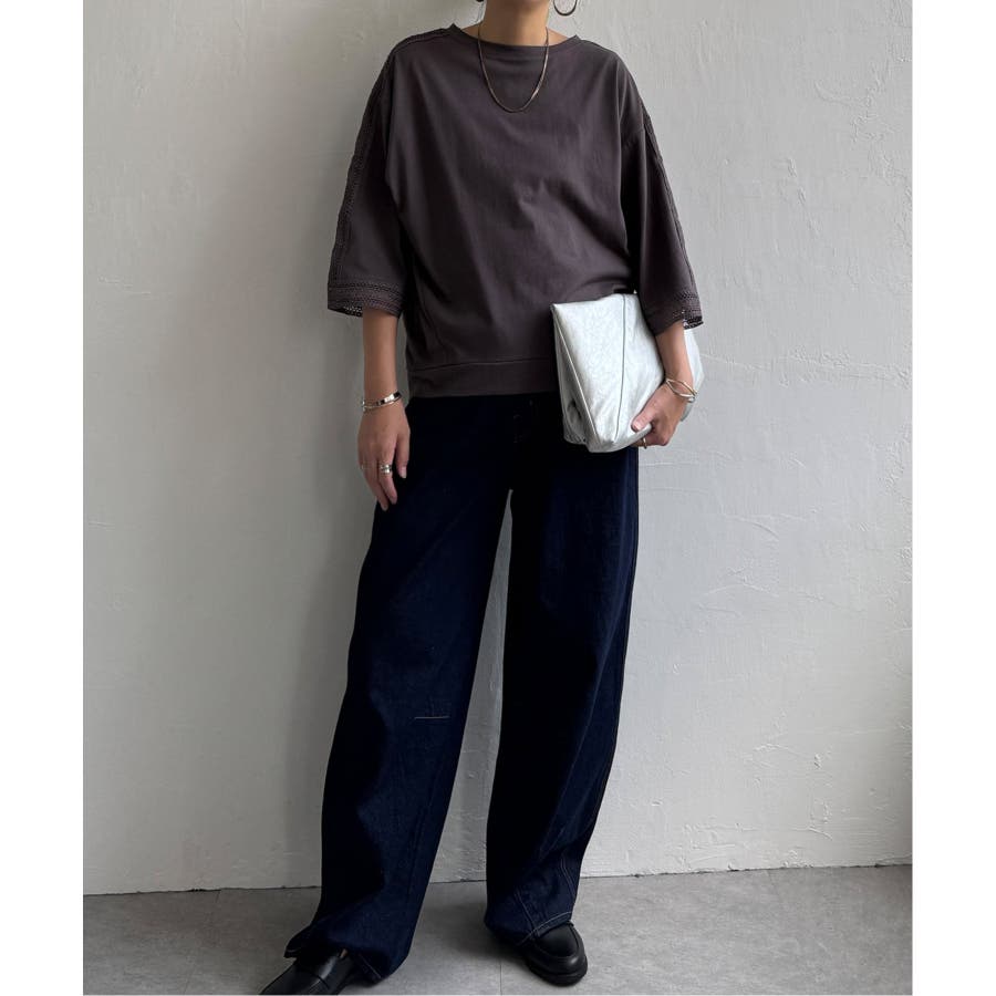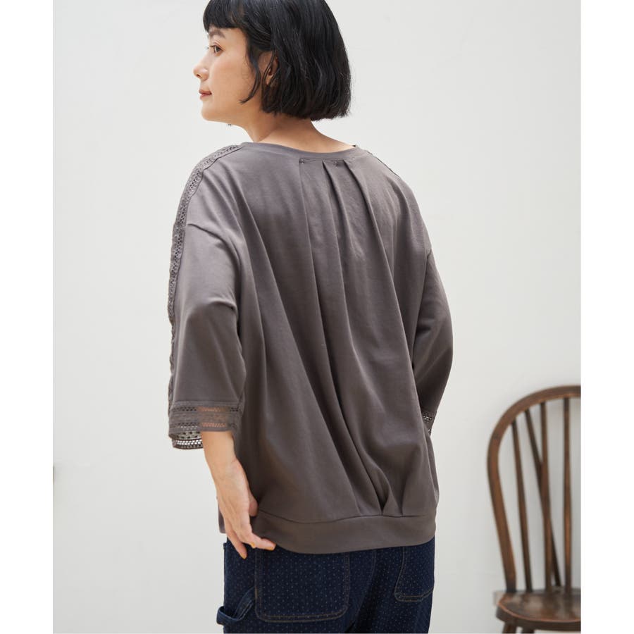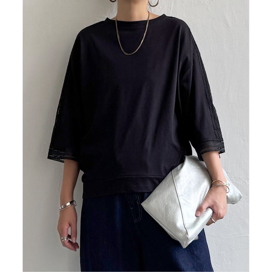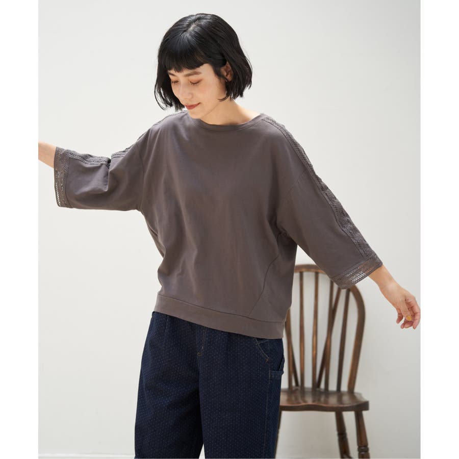 ほどよいゆとりとレースの華やかさを兼ね備えたスリーブレースカットプルオーバー。