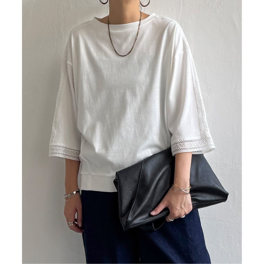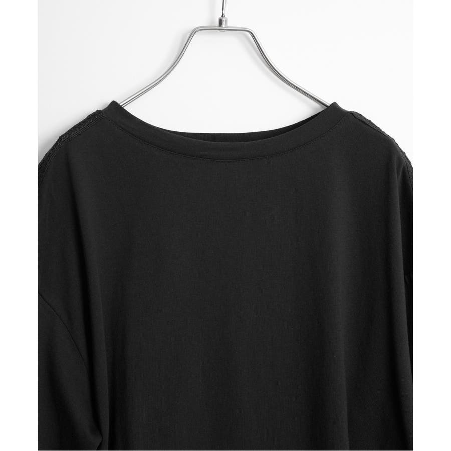 レース使いで一枚でも着映えるプルオーバーカットソー。