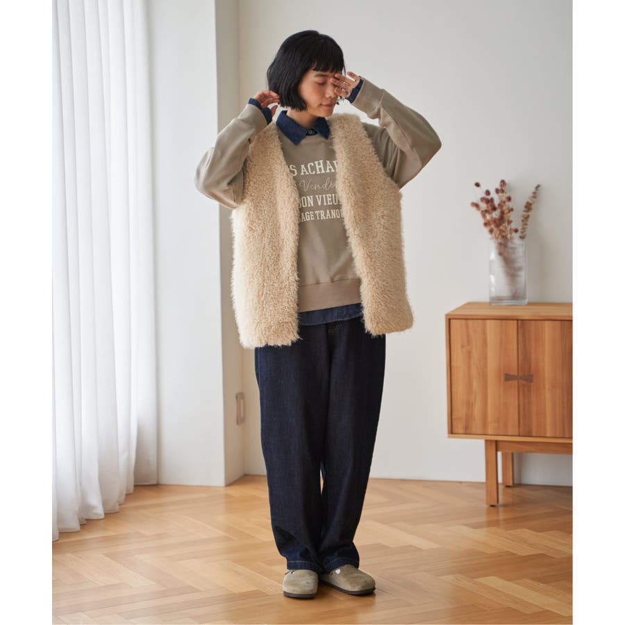 部分的にチェーンステッチ刺繍を施し、シンプルながらも細部にこだわりを感じるデザインです。