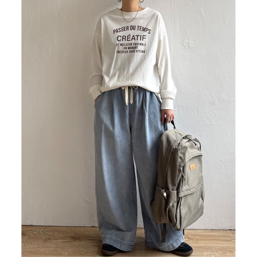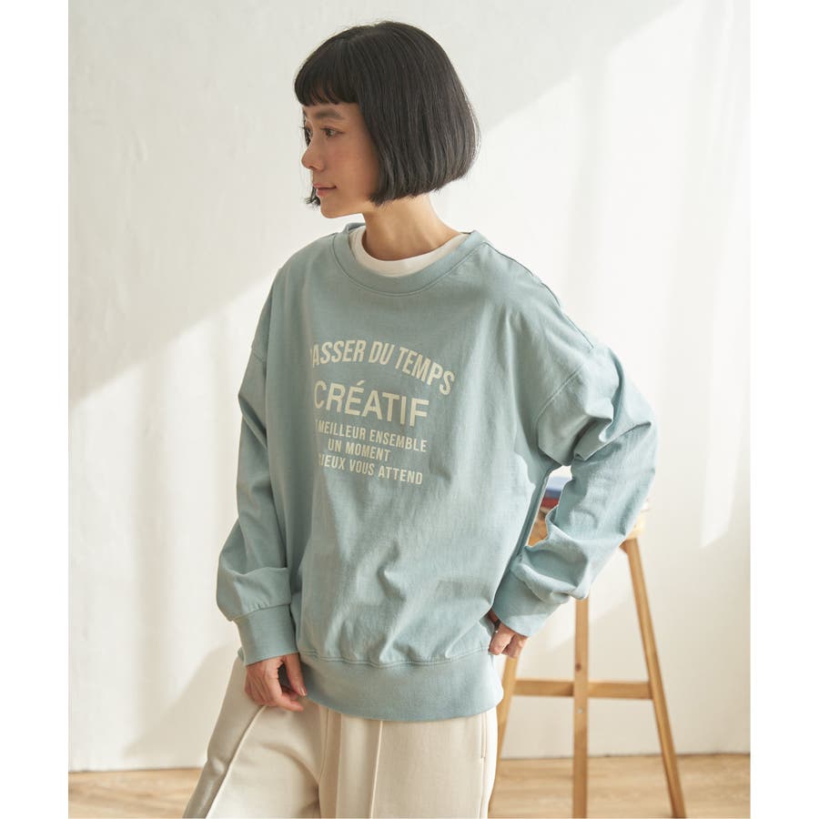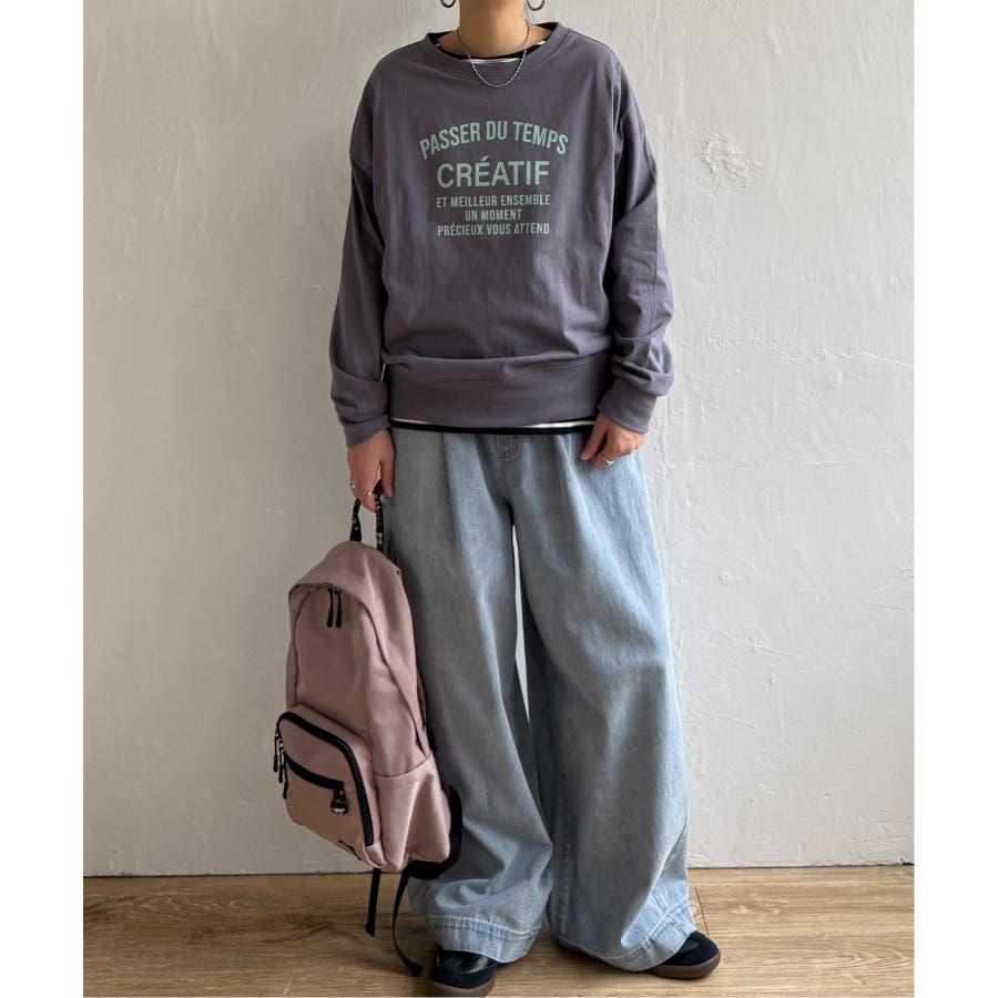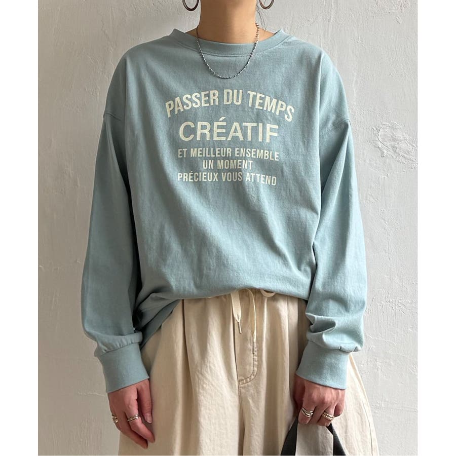 トレーナーとTシャツの間のような素材を使用した、スウェットライクなロングTシャツ。