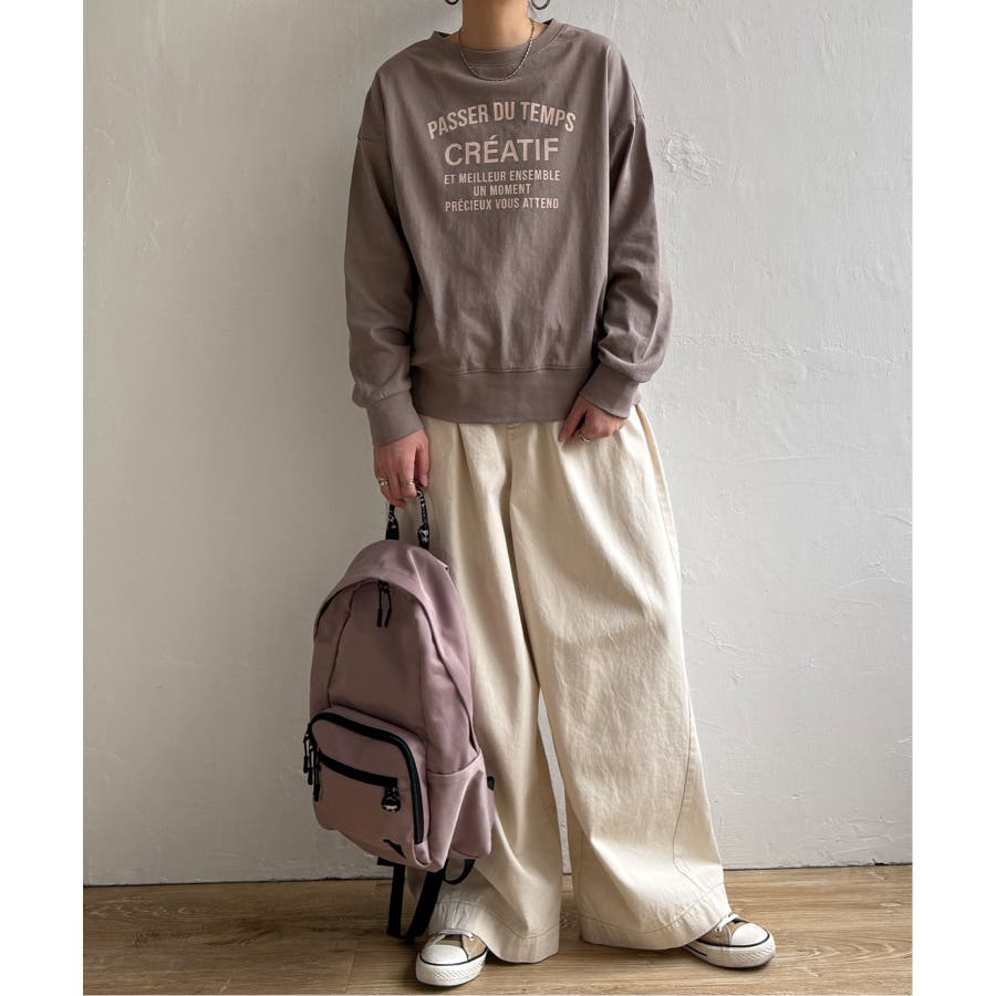 春らしいボディカラーにトレンドカラーのロゴで大人っぽく着ていただけます。