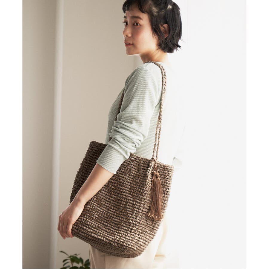 着こなしに季節感を添えるペーパー素材のトートバッグ。
