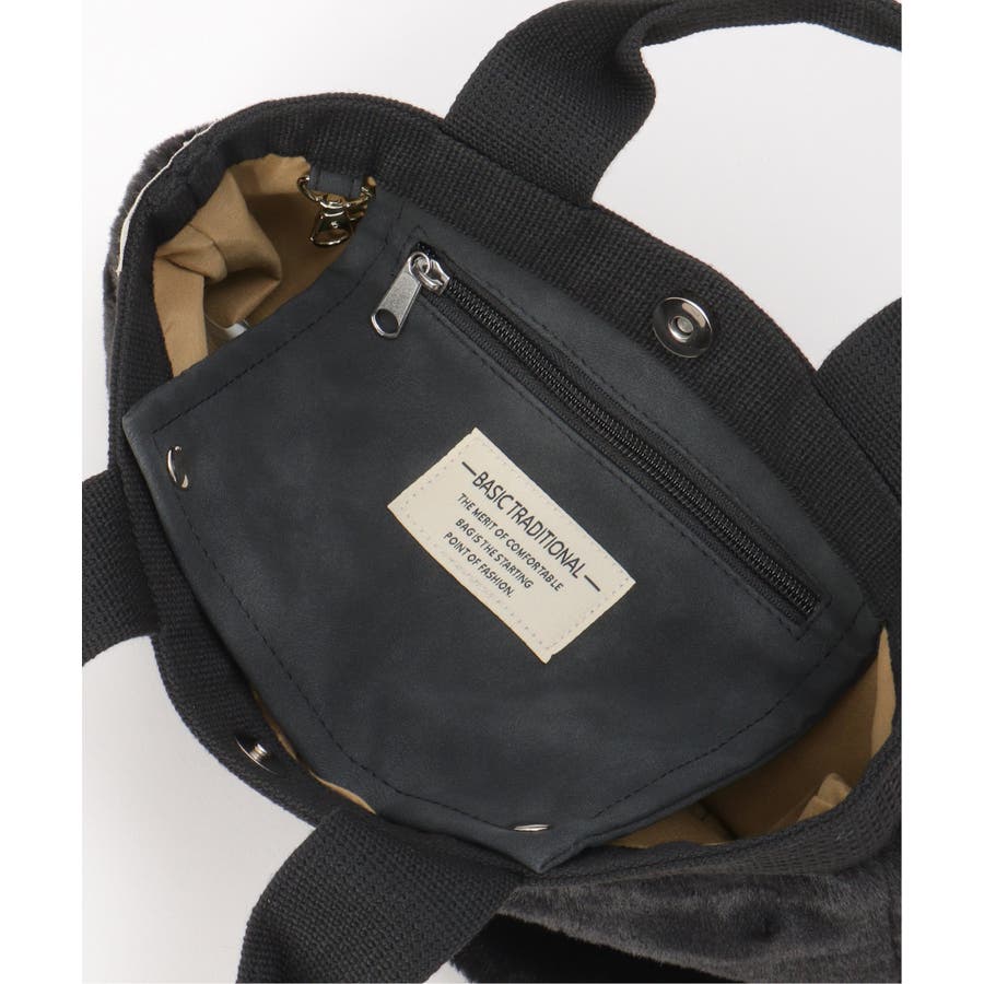 内側にはファスナー仕様のポケットがついており、小物の仕分けに便利。