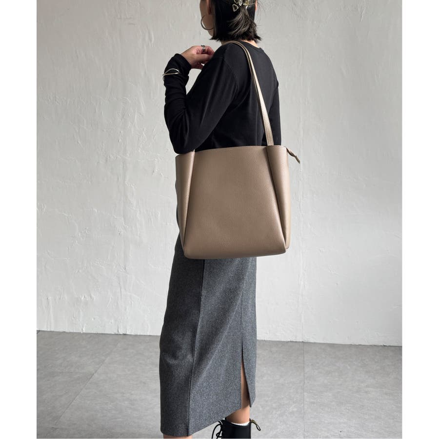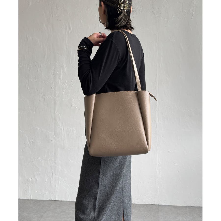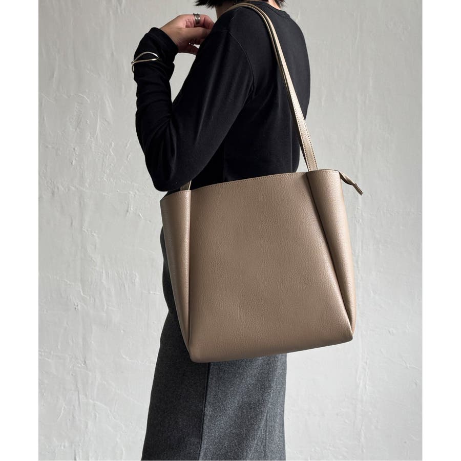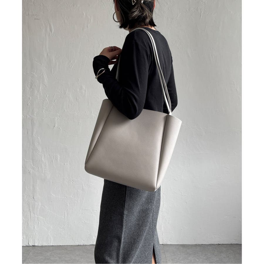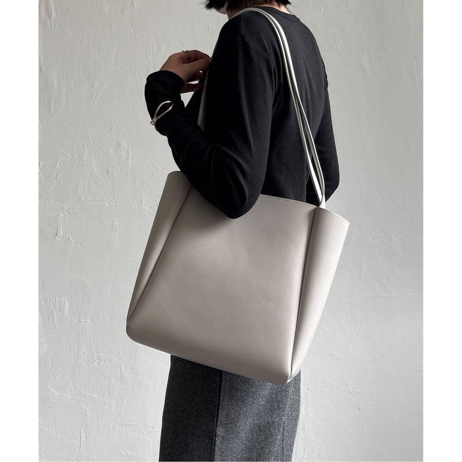シンプルでありながら上品な佇まいの合皮ミドルトートバッグ。