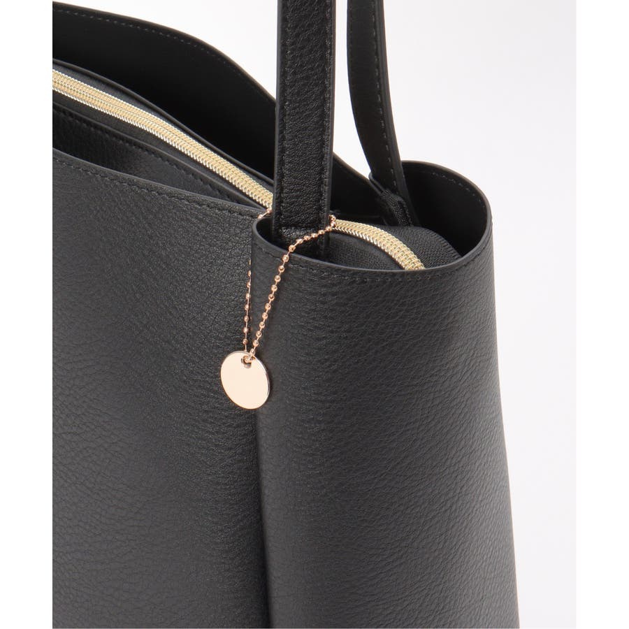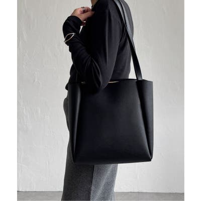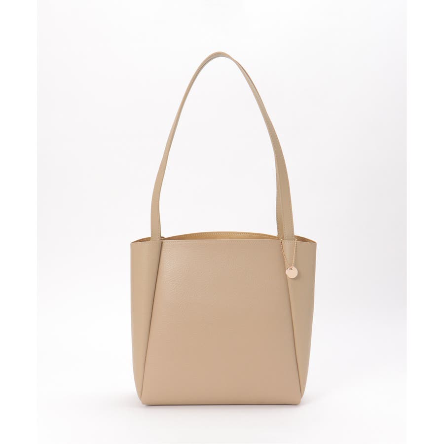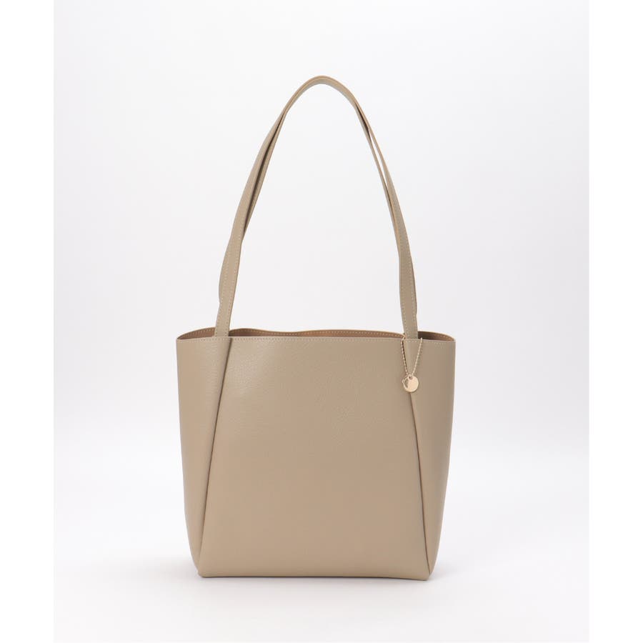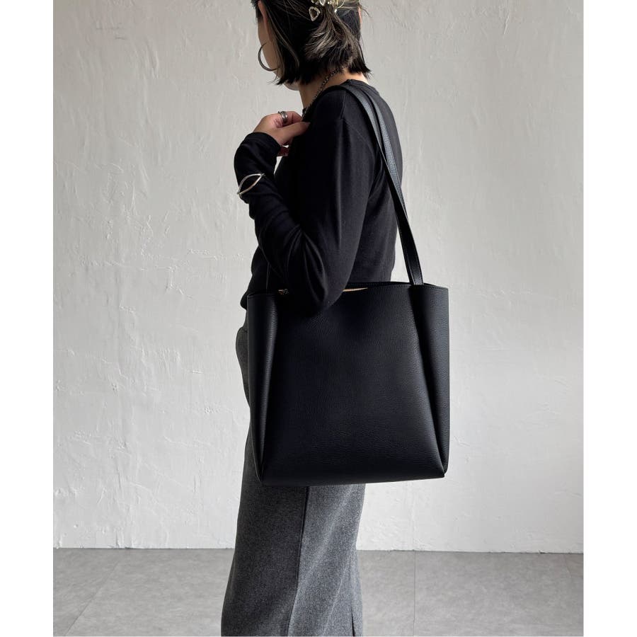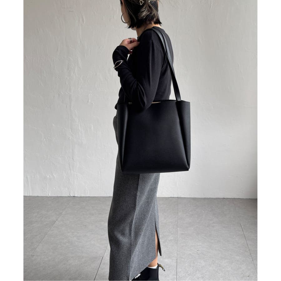 シンプルでありながら上品な佇まいの合皮ミドルトートバッグ。