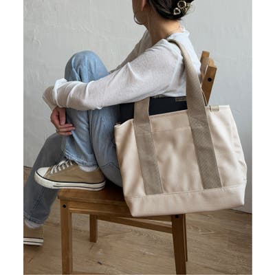 荷物を効率的に整理・収納可能な仕切り付きのトートバッグ。