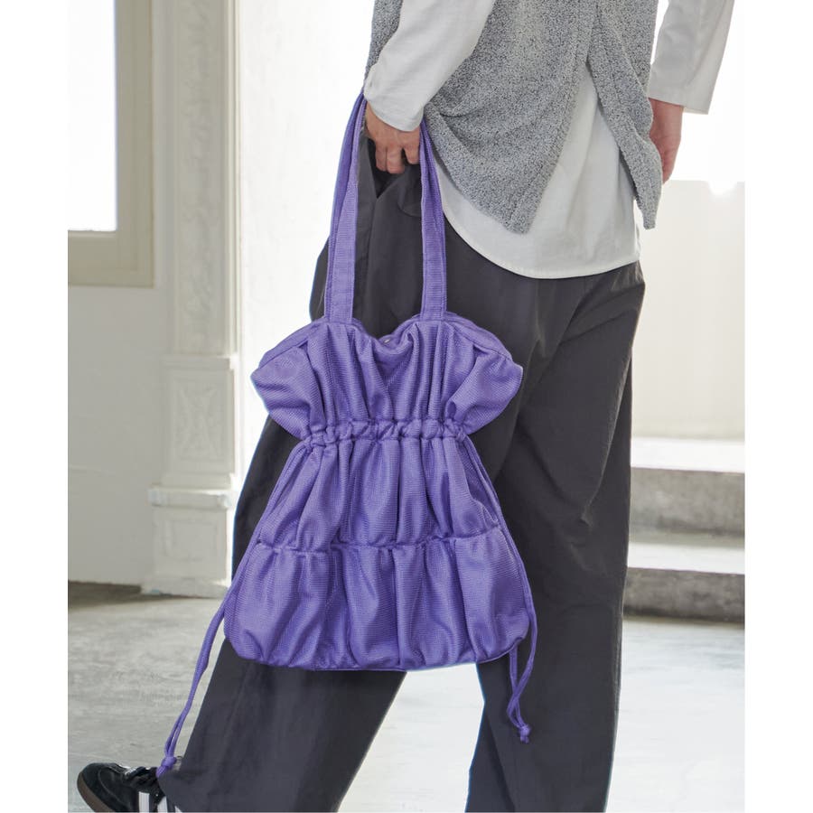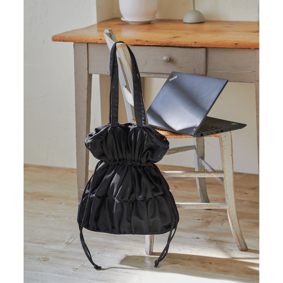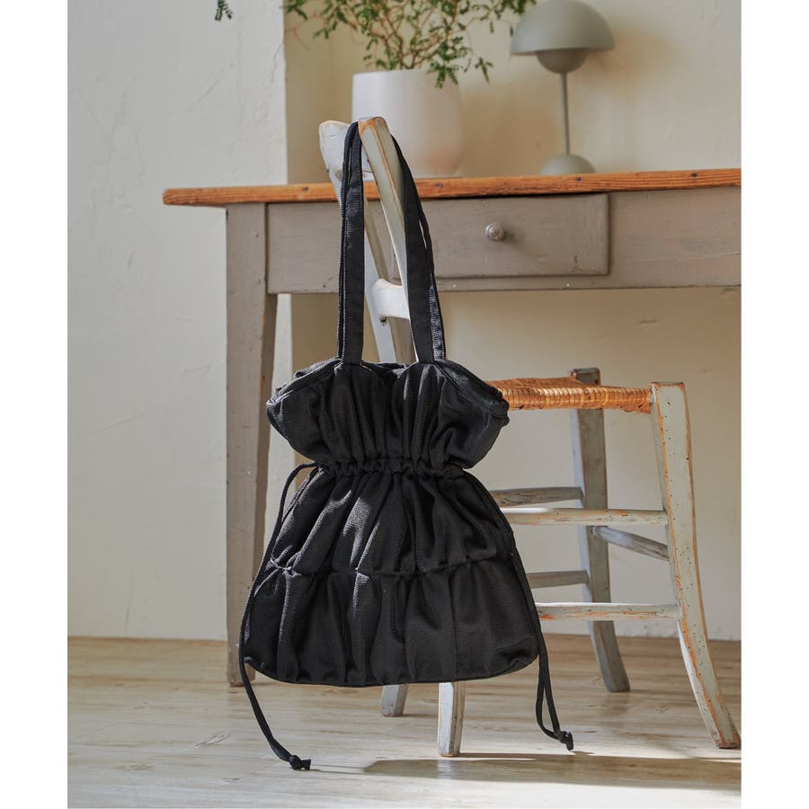 口元が巾着仕様になった、肩掛けのギャザートートバッグ。