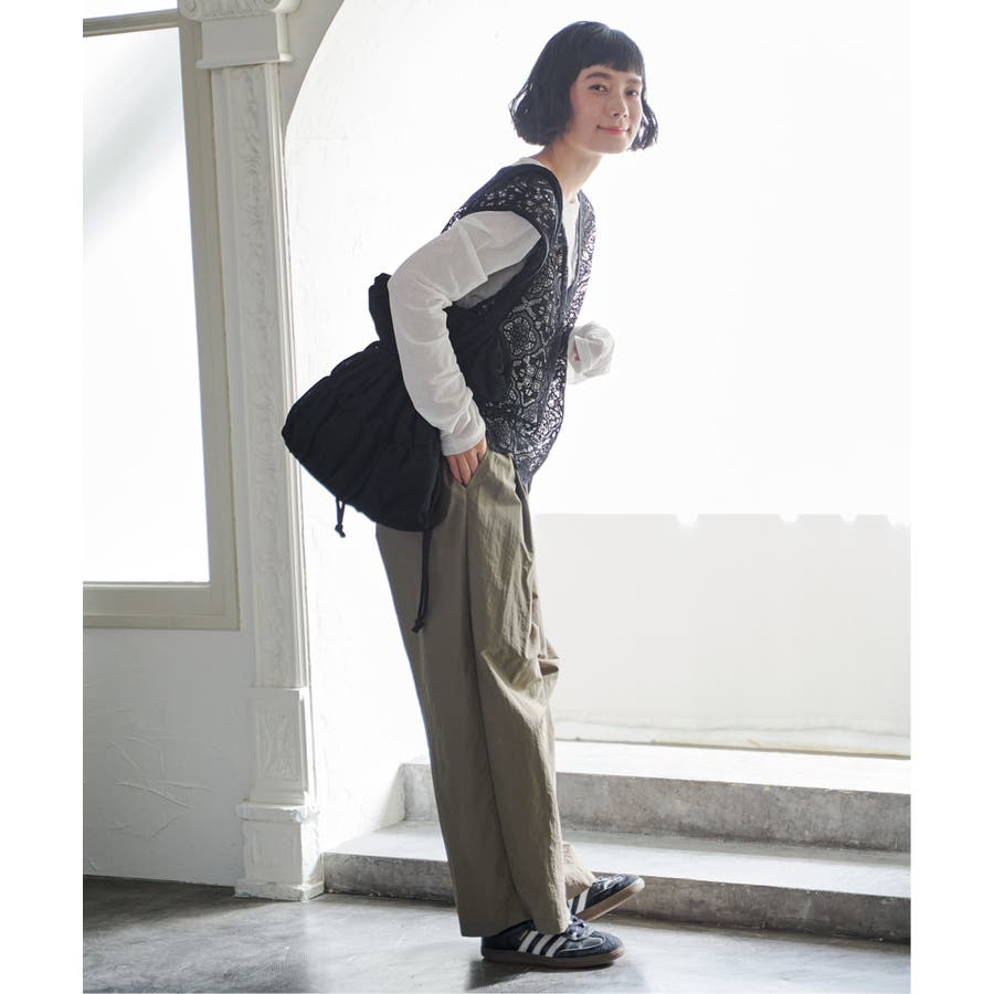 バッグ全体にギャザーを寄せた軽さのあるバッグです。
