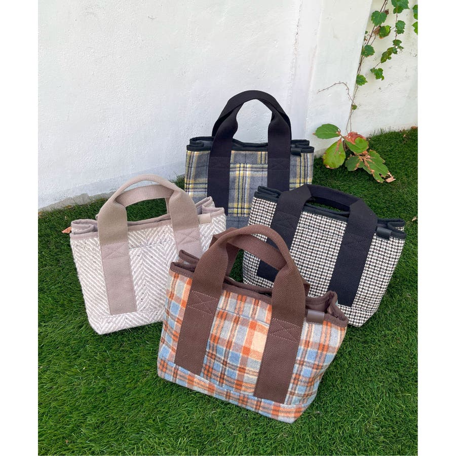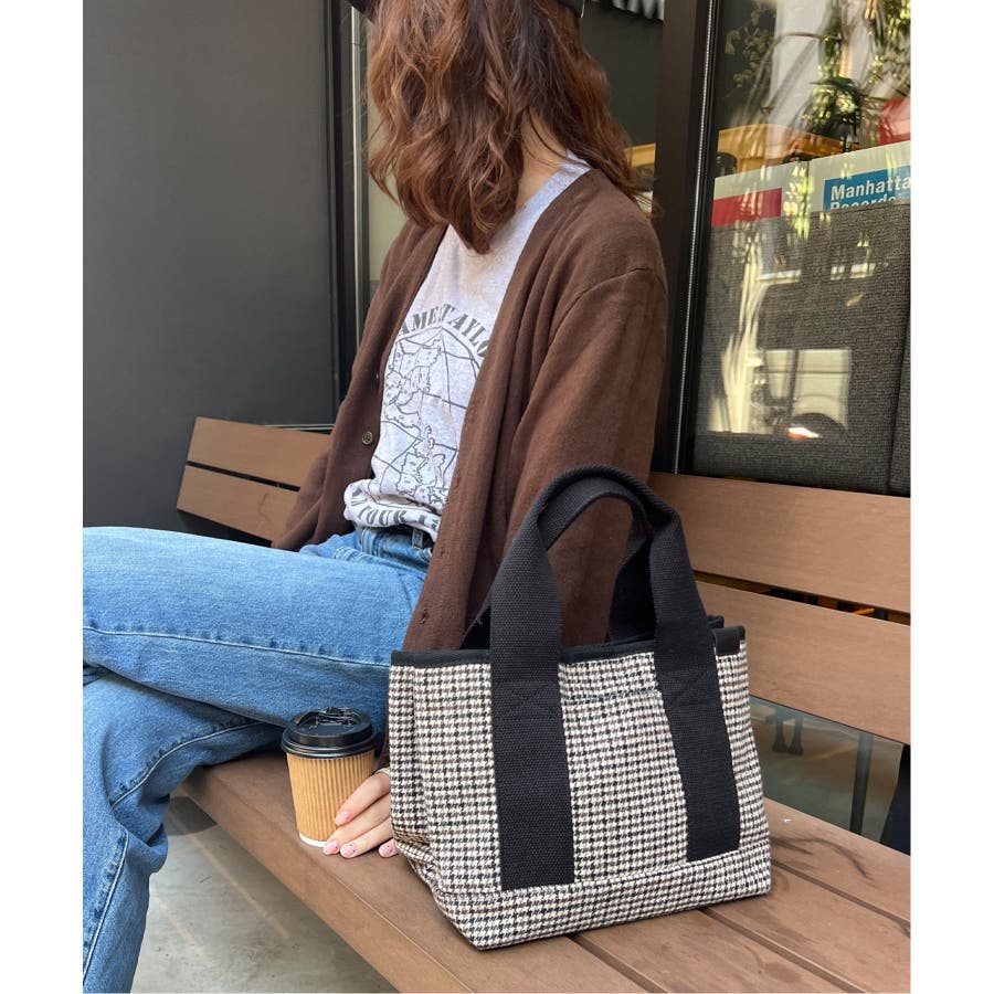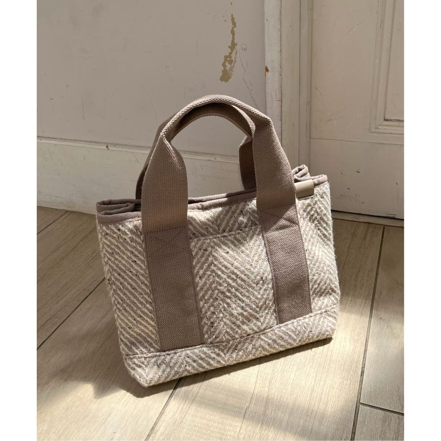 荷物を効率的に整理・収納可能な仕切り付きのミニトートバッグ。