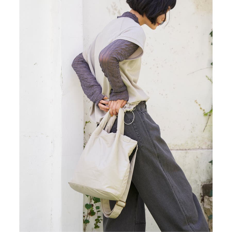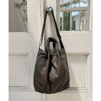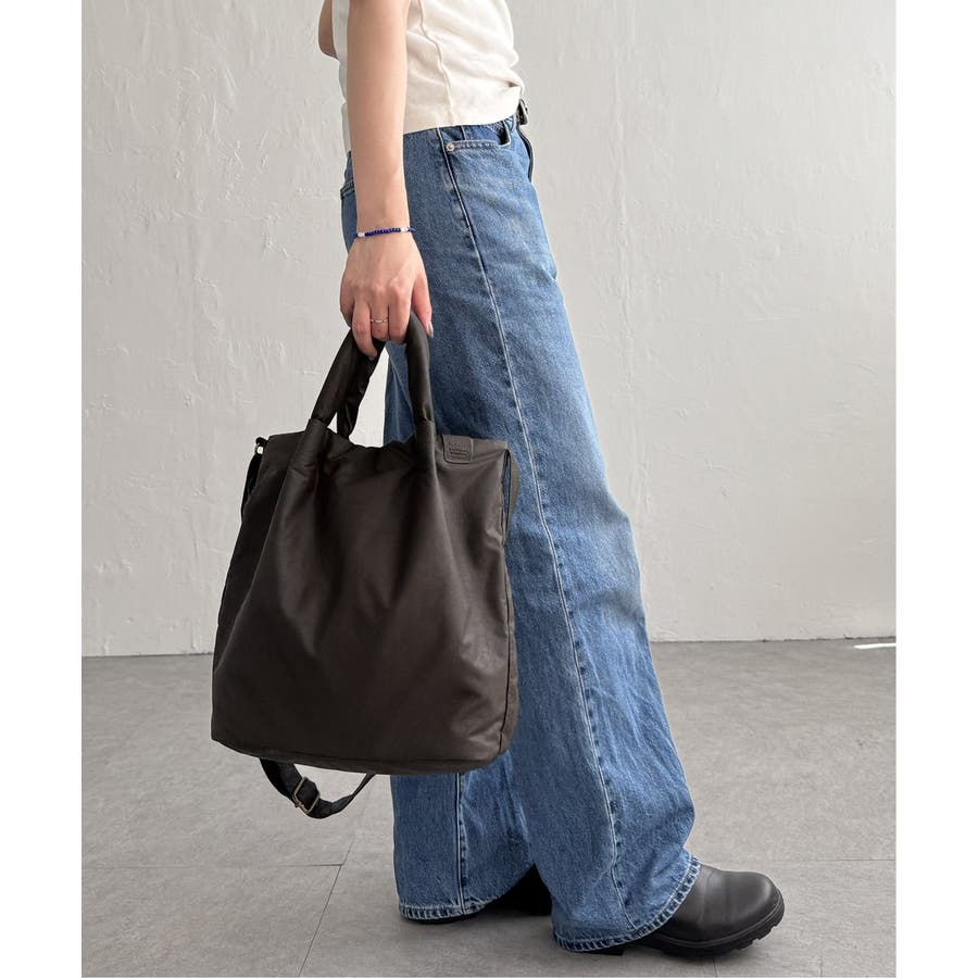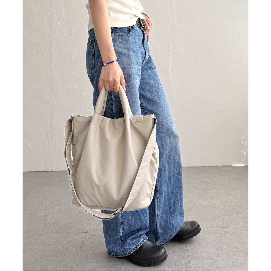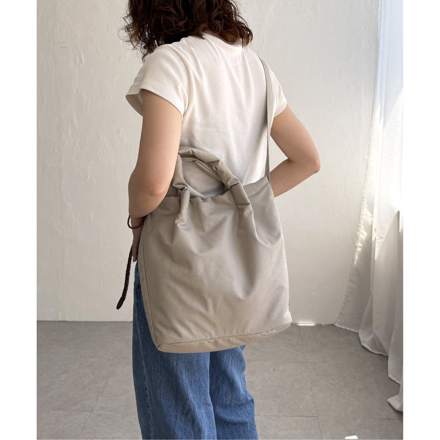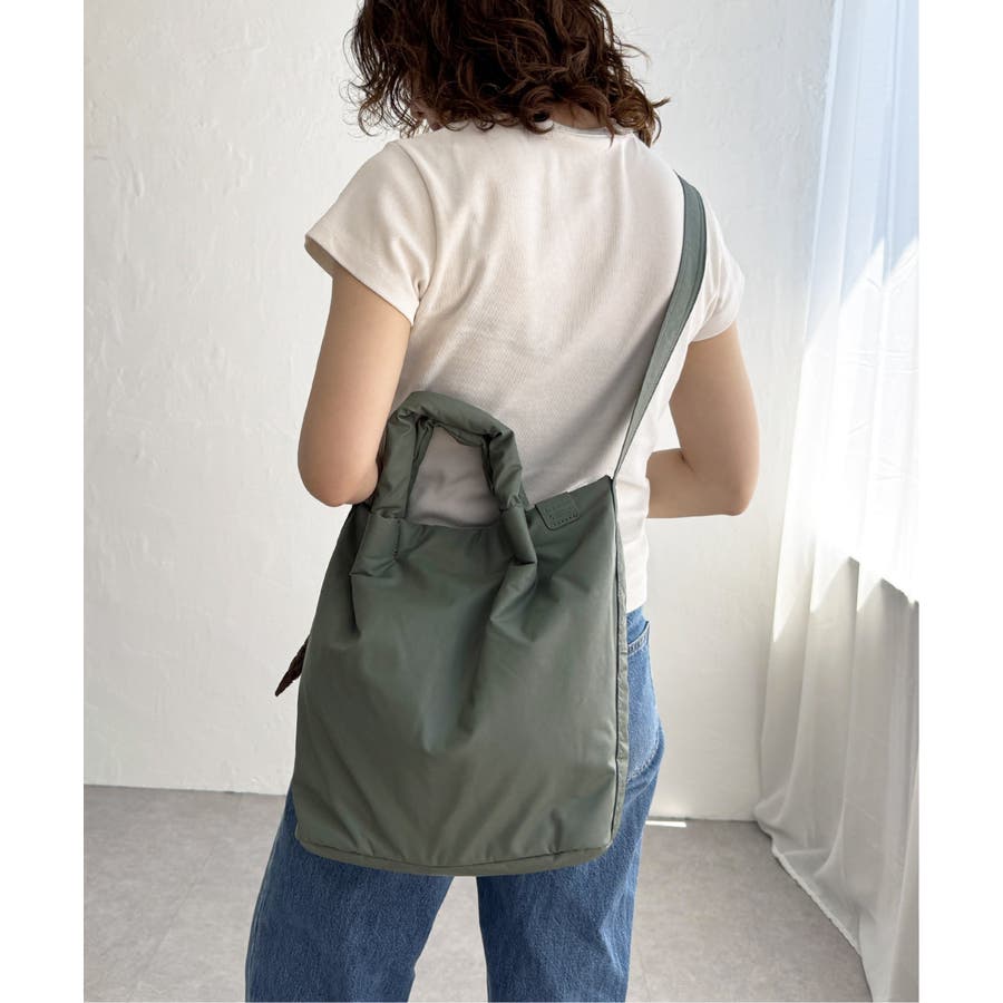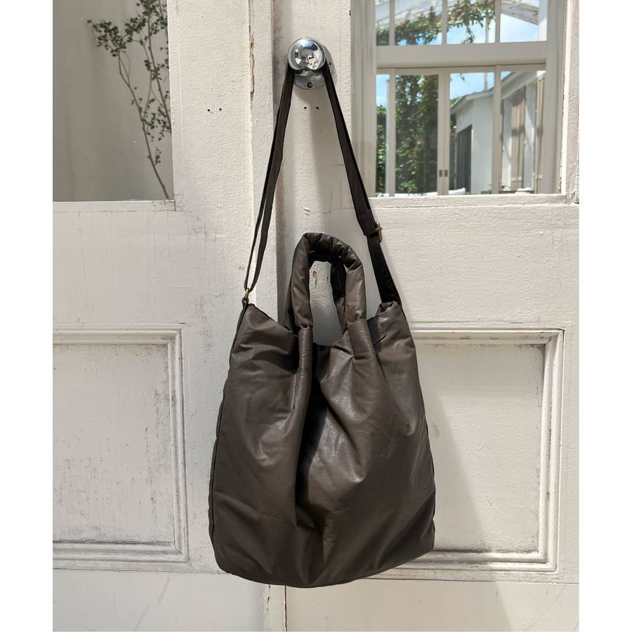 中綿入りでふっくら軽やかな合皮素材を使用した、トート&ショルダーの2WAYバッグ。
