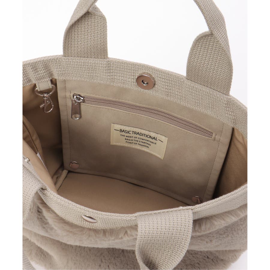秋冬コーデに取り入れたいもこもこフェイクファーのミニョントートバッグ。