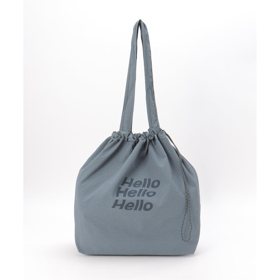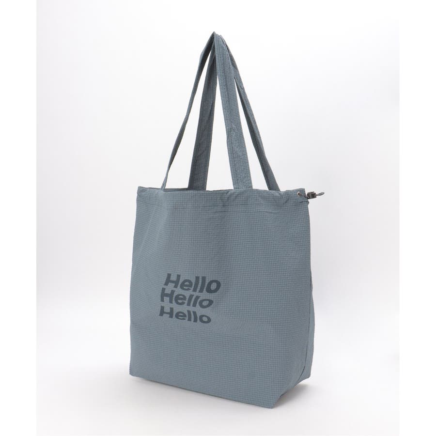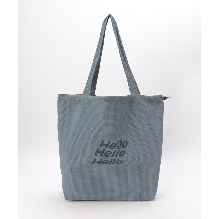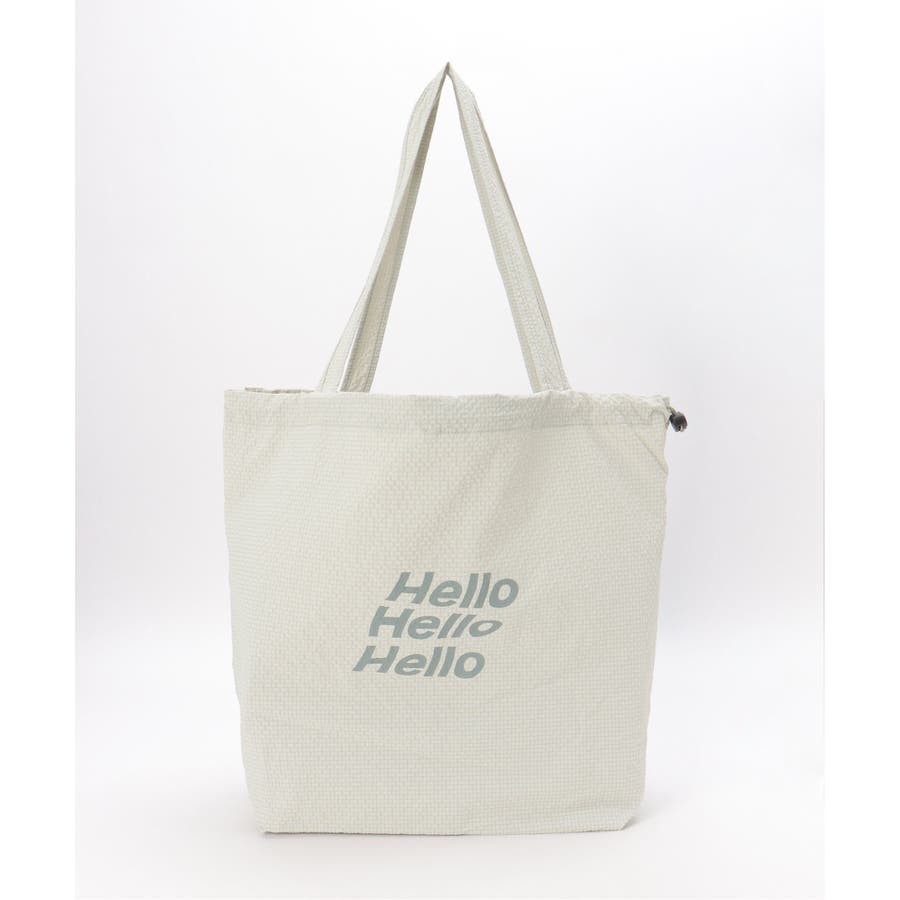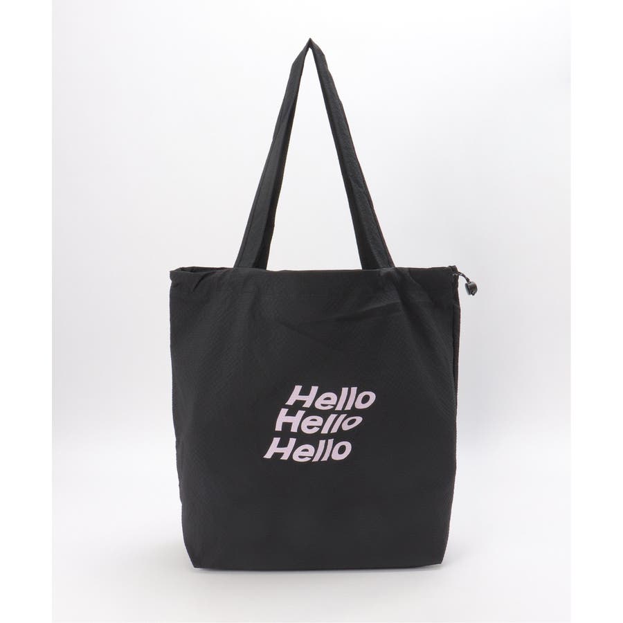 軽やかなポリエステル素材に“HELLO”のロゴをあしらった、愛らしいデザインのトートバッグ。