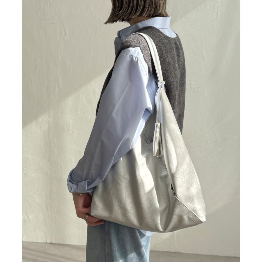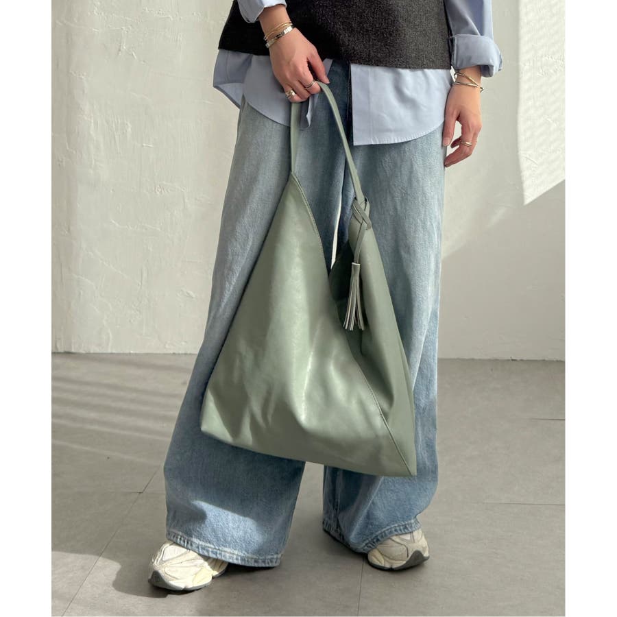 洗える合皮を使用した三角ワンショルダーバッグです。